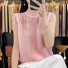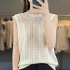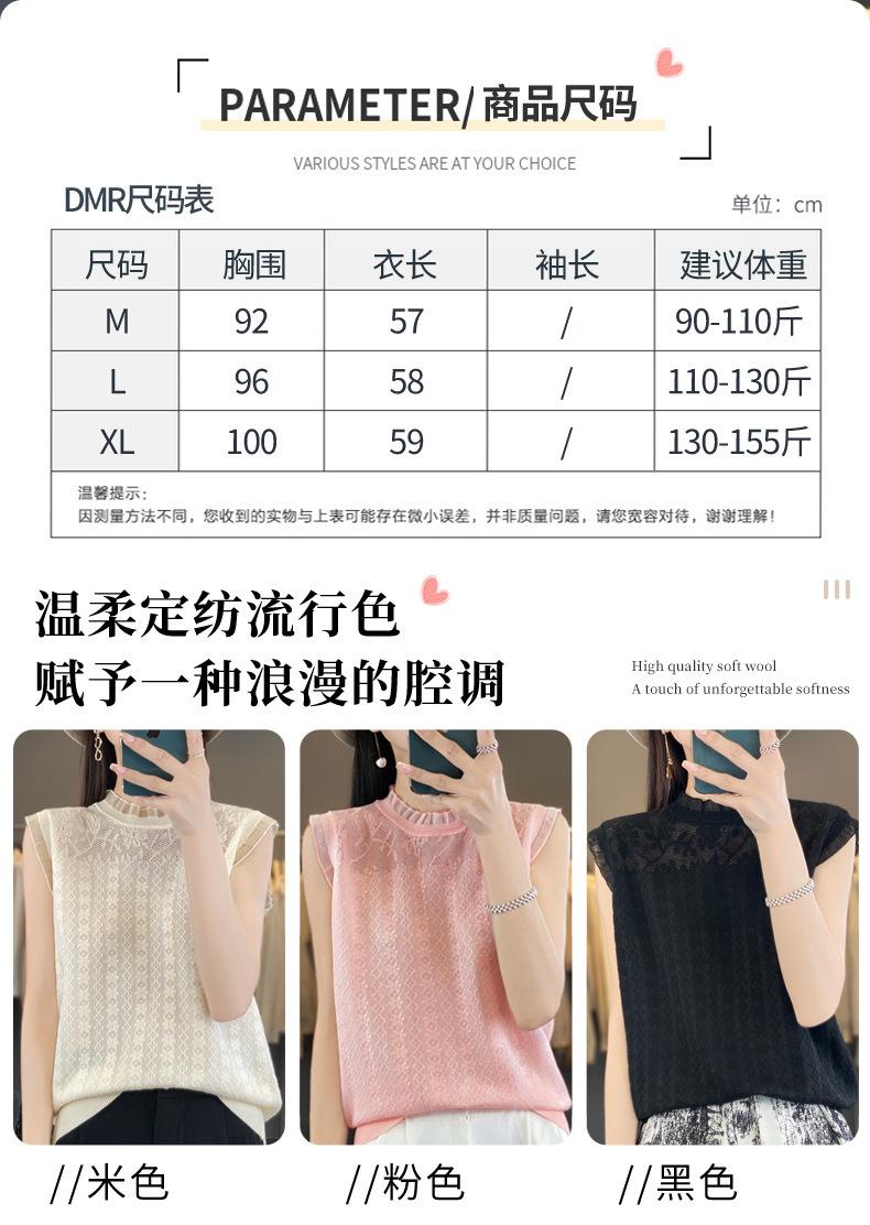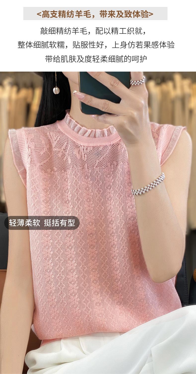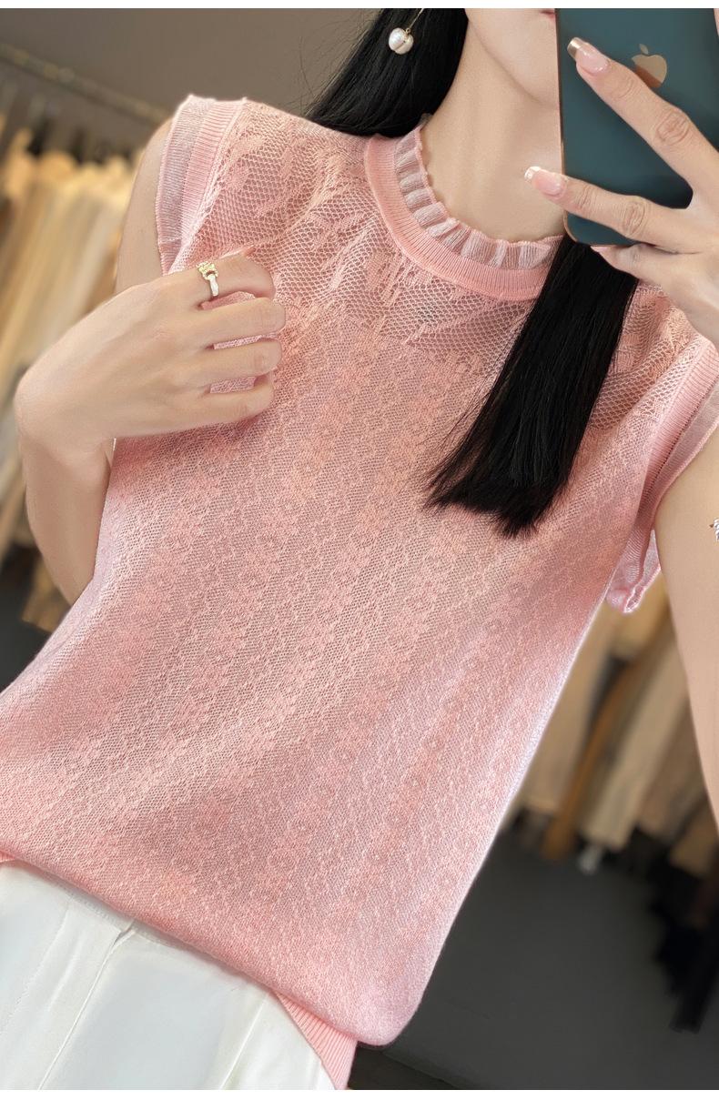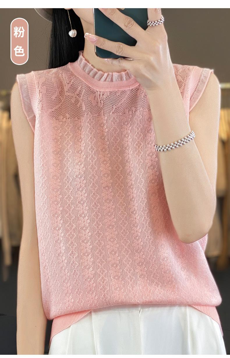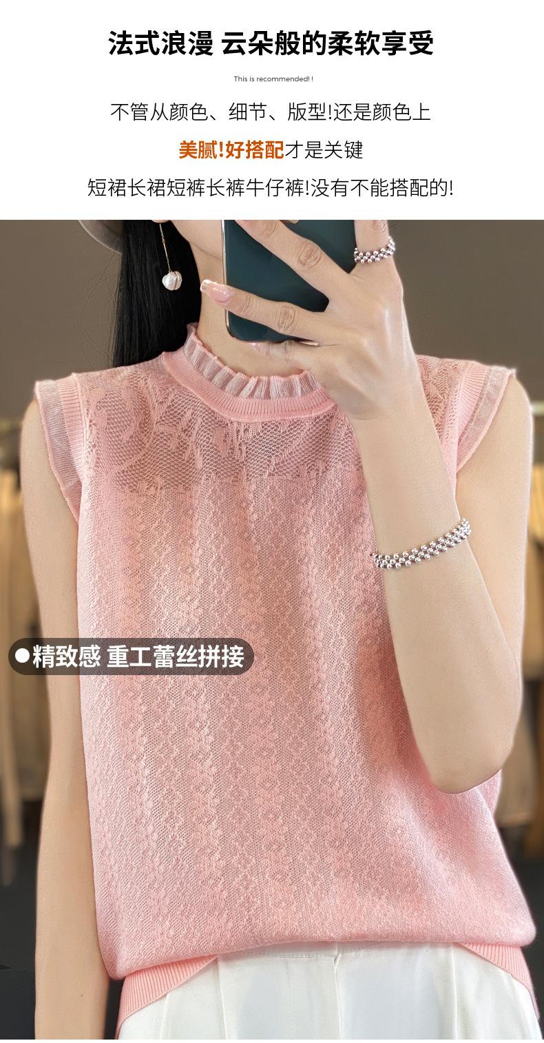 Chaleco de punto con base fina y hueca de encaje, primavera y verano 2024, con costuras de organza