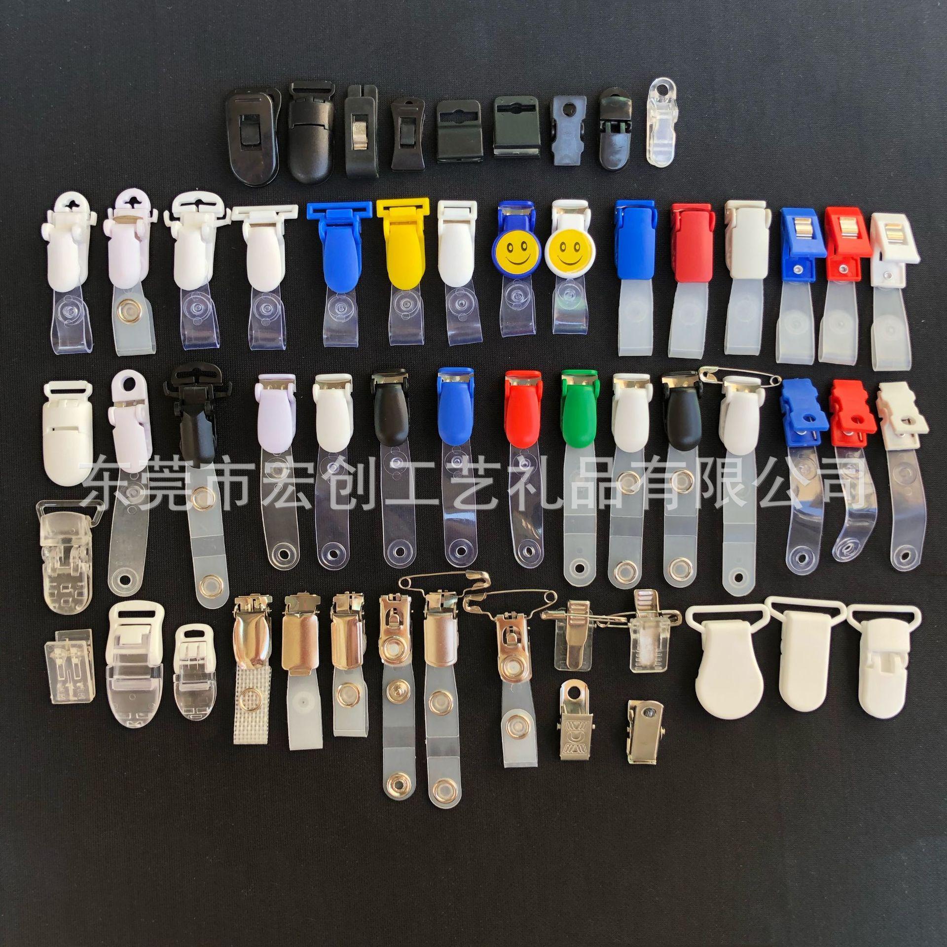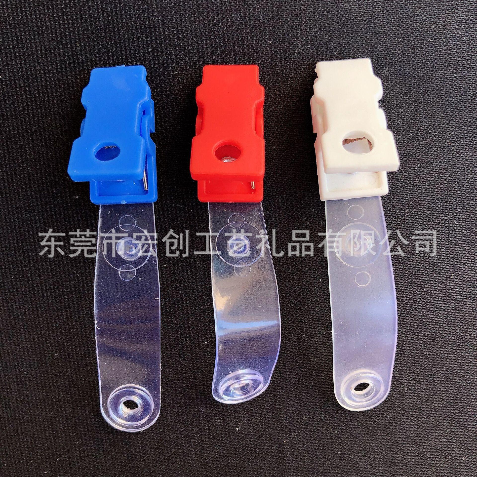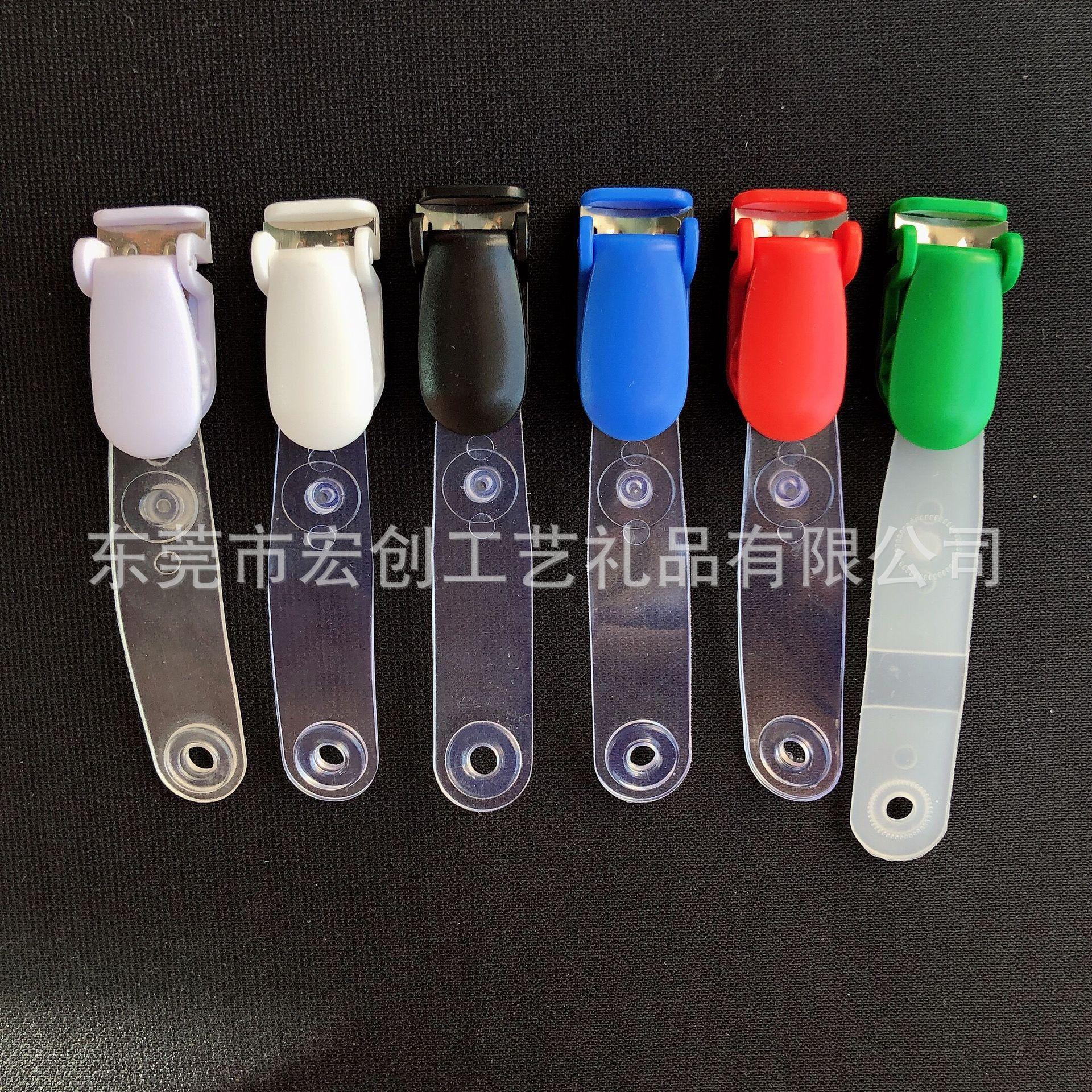 Clip abatible de plástico POM al por mayor, botón de metal, tira de goma, clip de cola larga, insignia, clip de papelería, se puede fijar el color