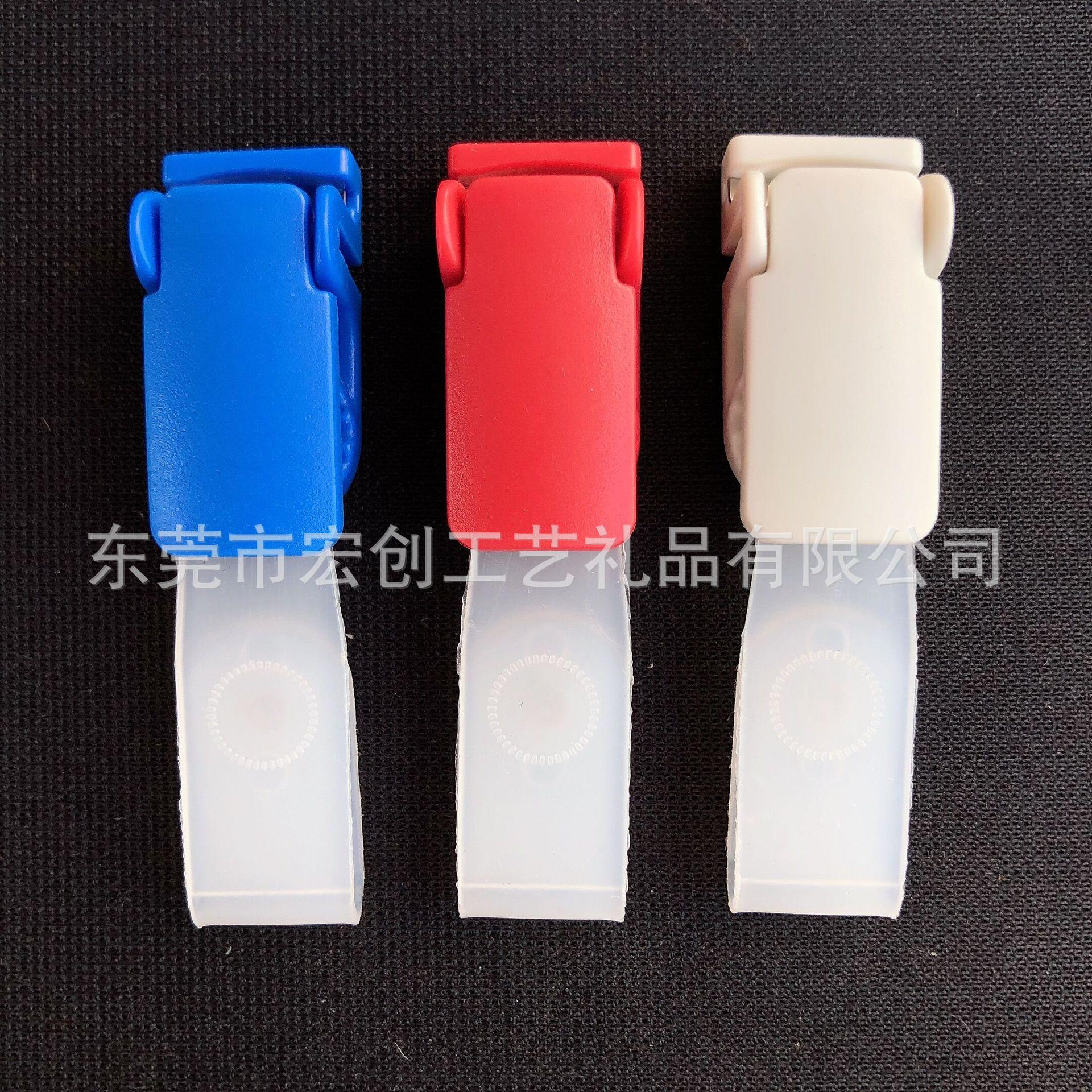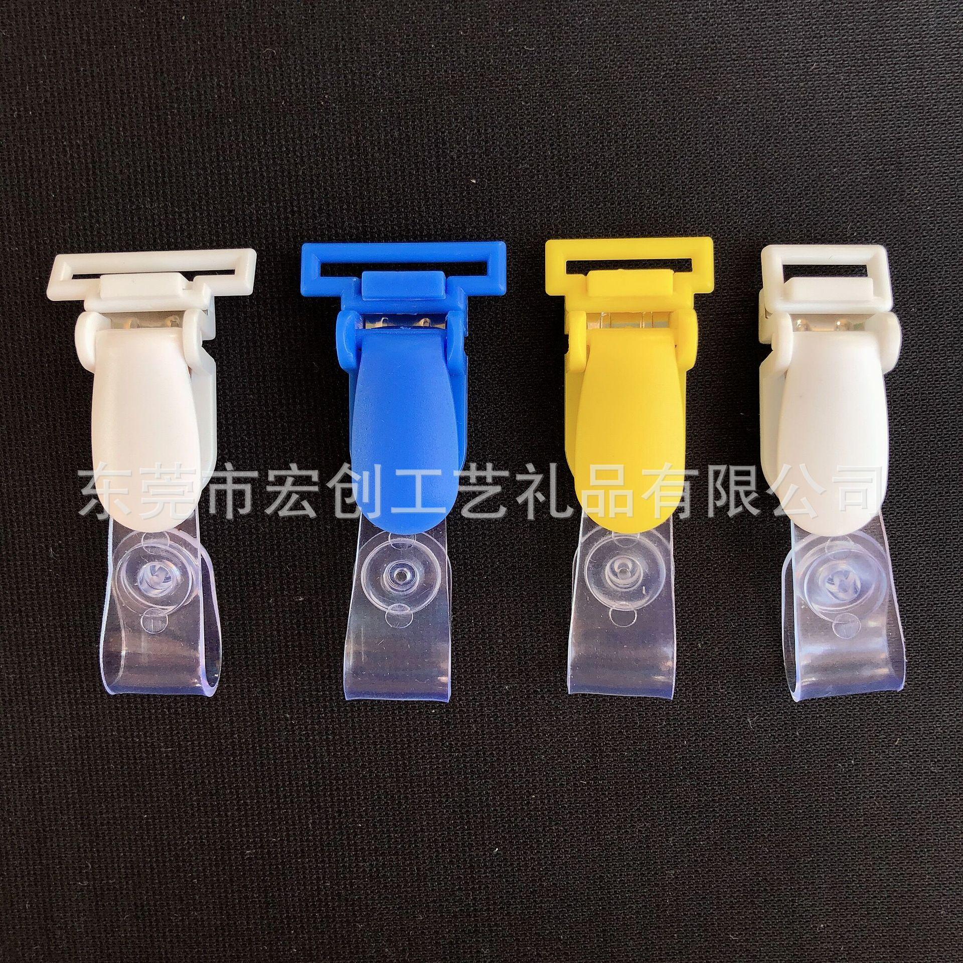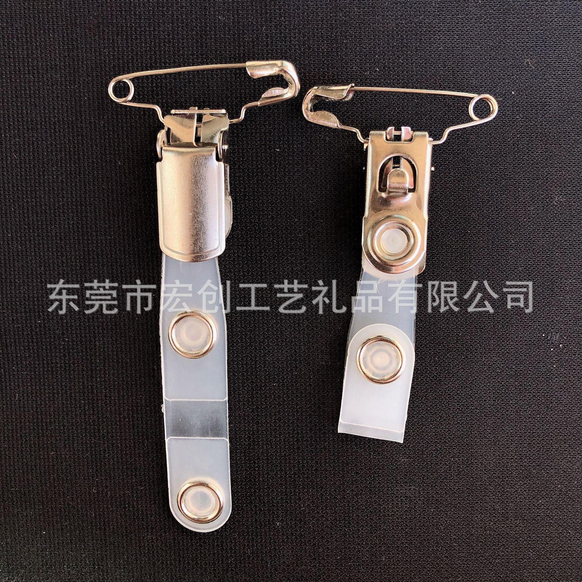 Clip abatible de plástico POM al por mayor, botón de metal, tira de goma, clip de cola larga, insignia, clip de papelería, se puede fijar el color
