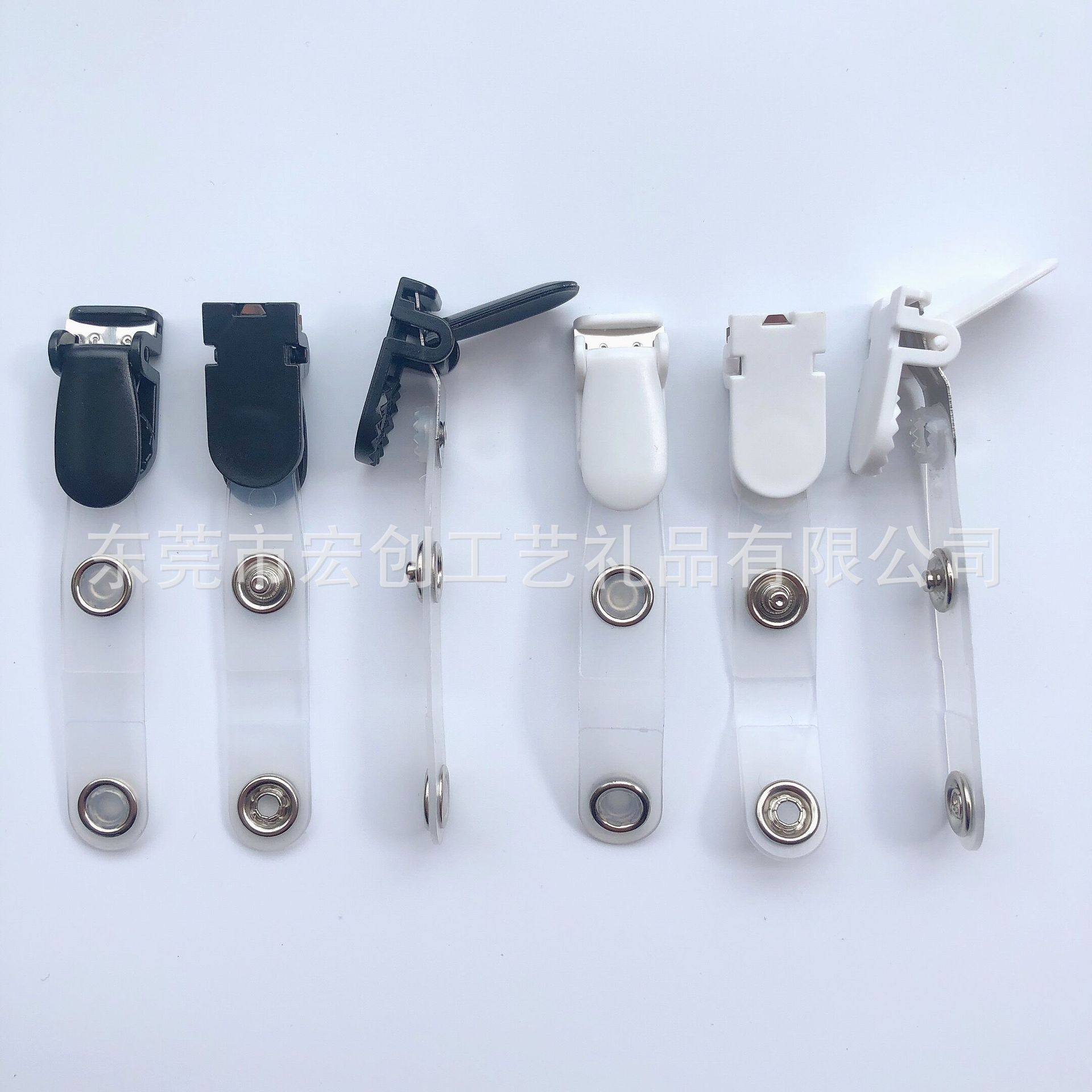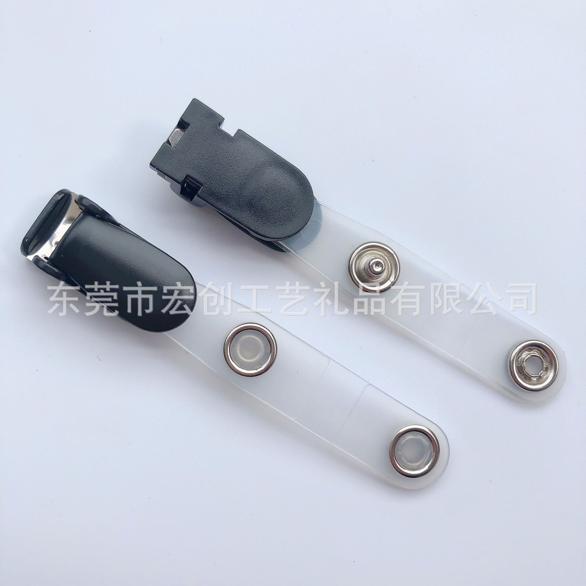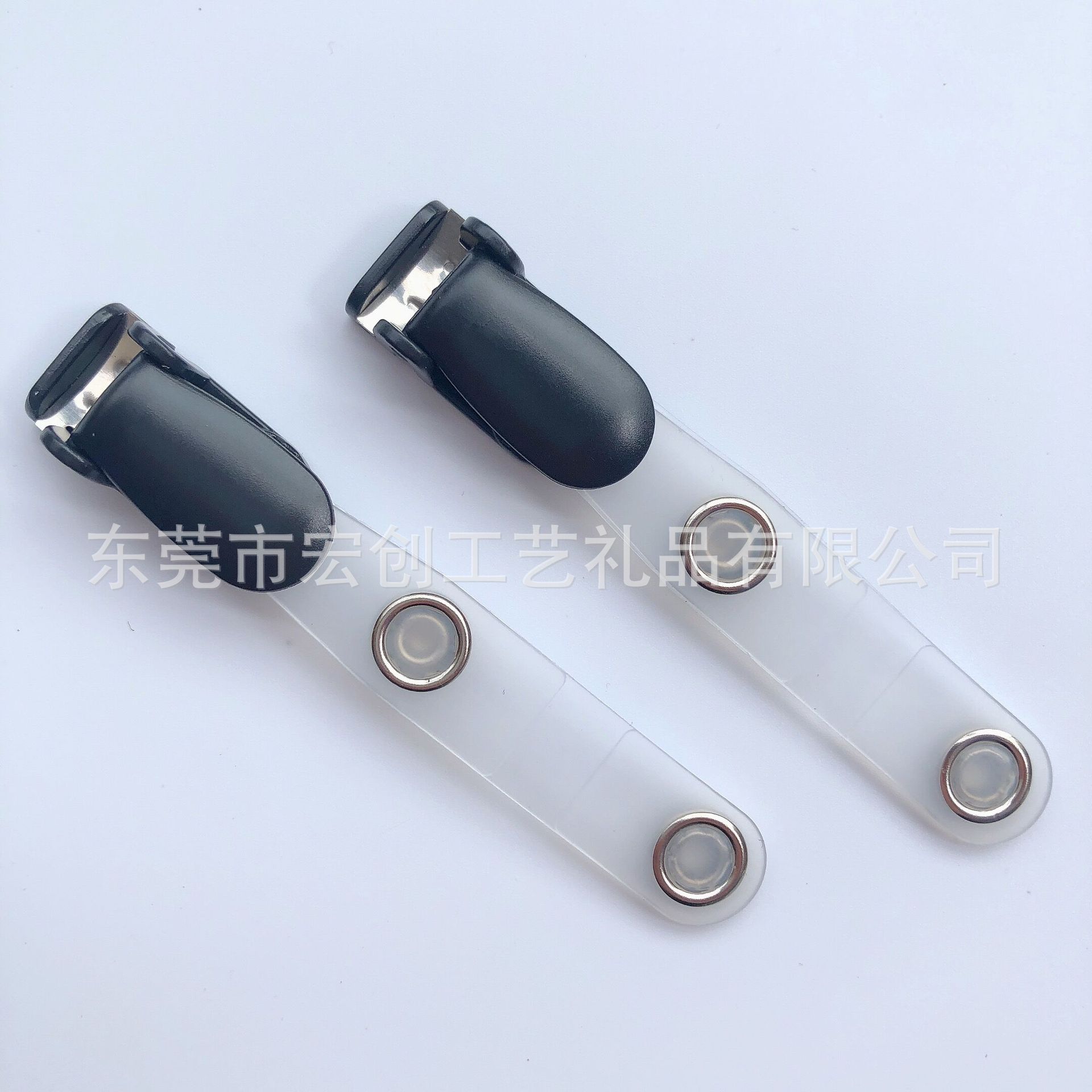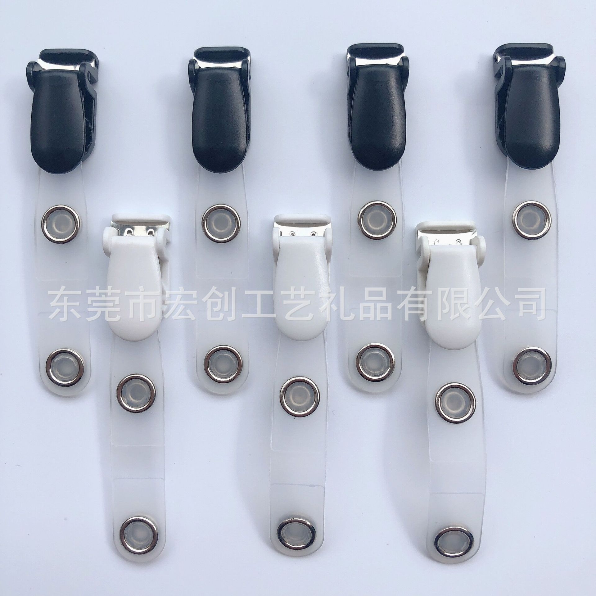 White clamshell clip, Black clamshell clip