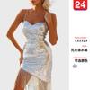 2025 Ropa Nueva Transfronteriza Europea y Americana Vestido Amazon Tirantes Falda Larga Abertura Lentejuelas Asimétrico Vestido de Noche