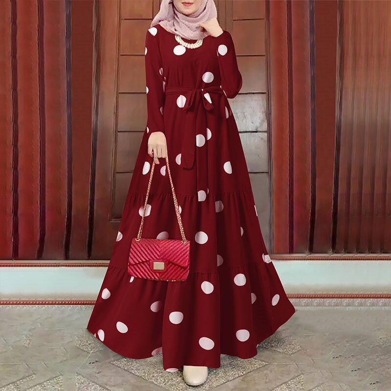 Vestido de mujer con estampado de lunares vintage, ropa islámica musulmana