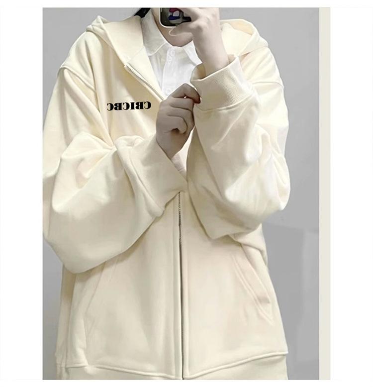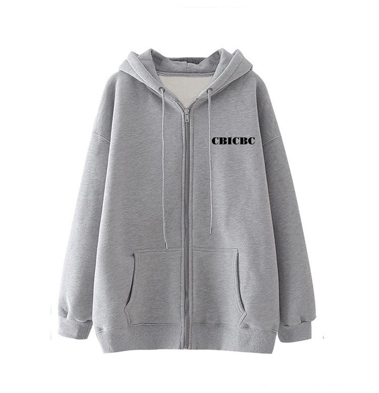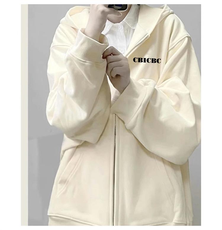 300 abrigo de algodón Kehua para mujer principios de otoño Nuevo suéter cárdigan holgado con capucha, cremallera, estampado de letras casual para combinar con todo