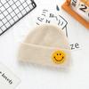 Gorro de punto para mujer, otoño e invierno, nuevo estilo coreano, etiqueta sonriente, imitación de piel de conejo, gorro frío, cálido y grueso, gorro de lana.