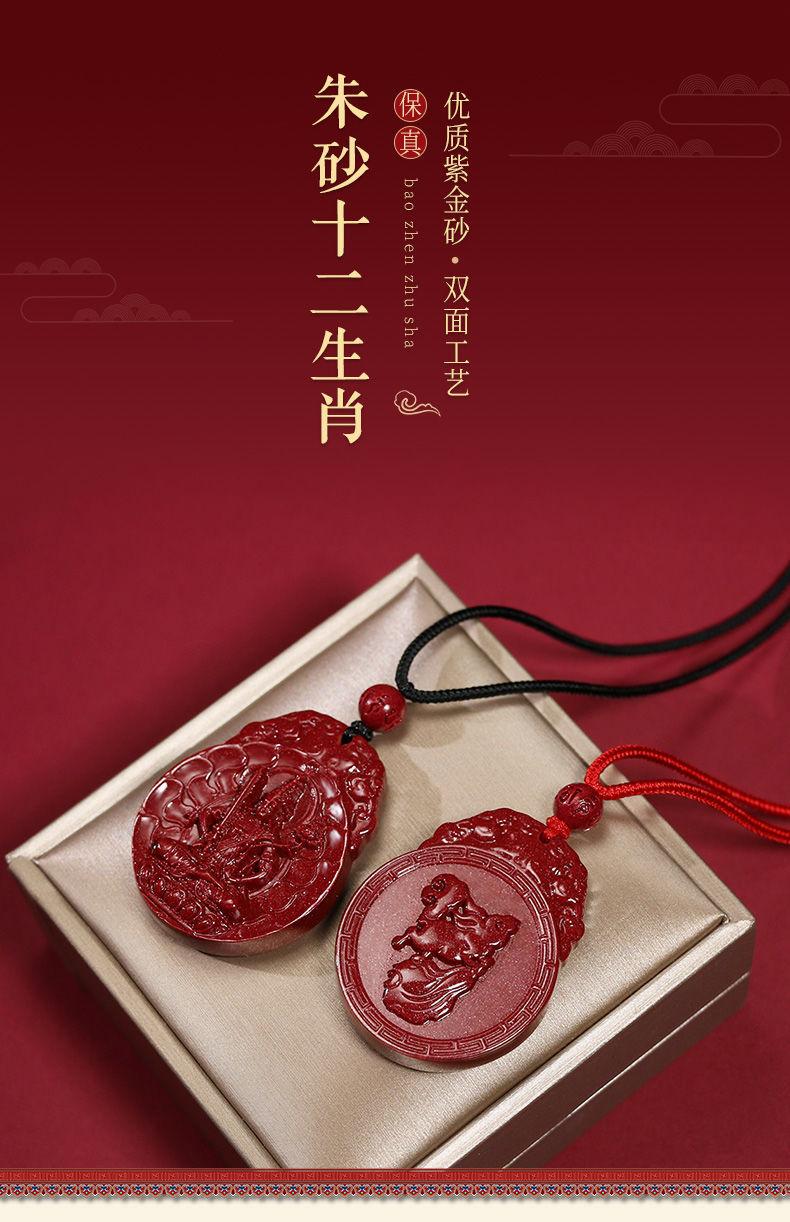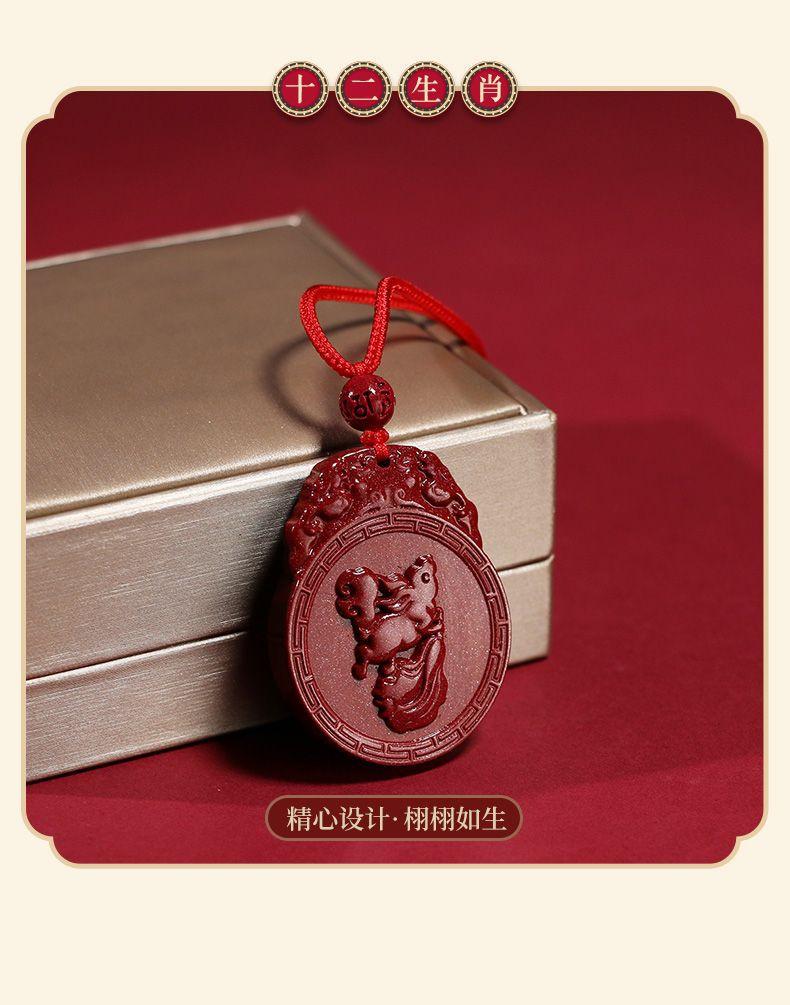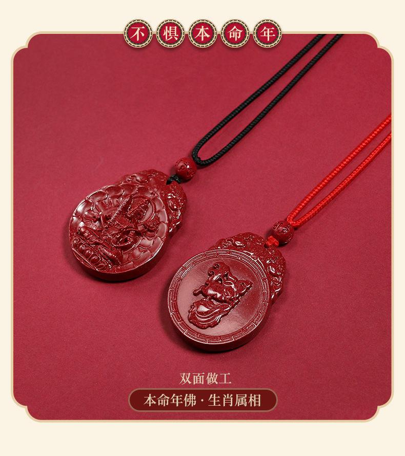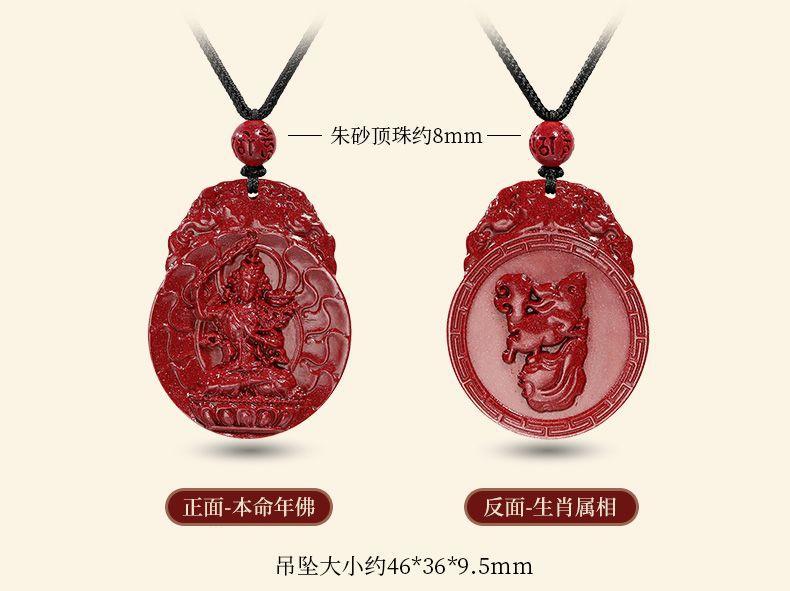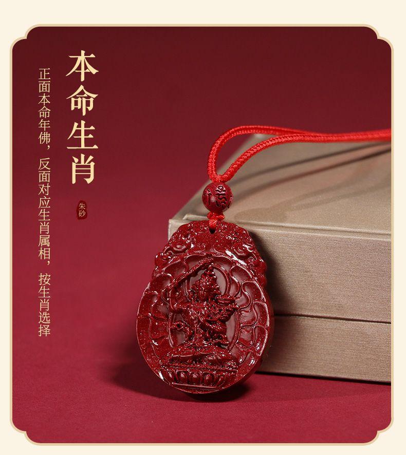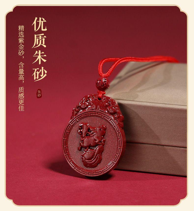Colgante de cinabrio genuino, colgante de Buda, año del conejo, arena de oro púrpura, colgante de Bodhisattva Manshu, collar para hombres y mujeres.