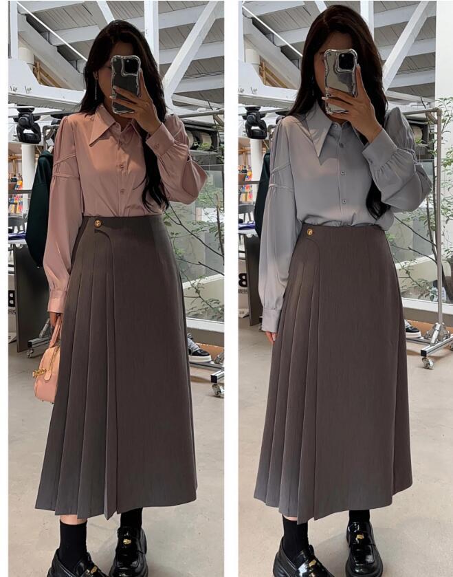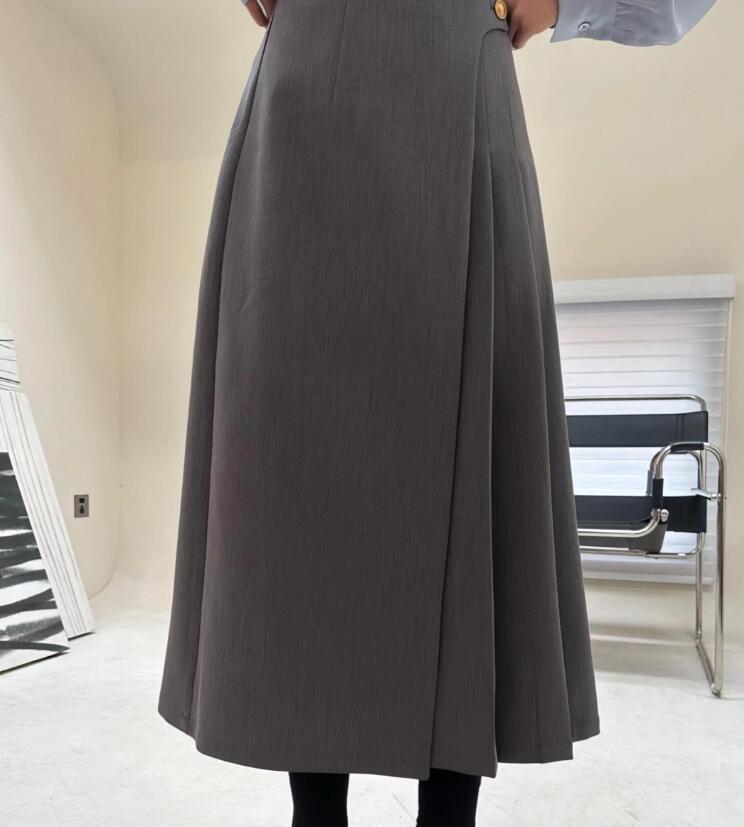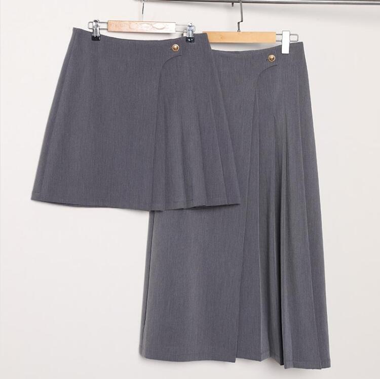Li Xiaosha 2024 Talla grande Otoño Mujer Francés Alta gama Diseño Irregular Edición Larga y Corta Pieza Flip Falda Plisada