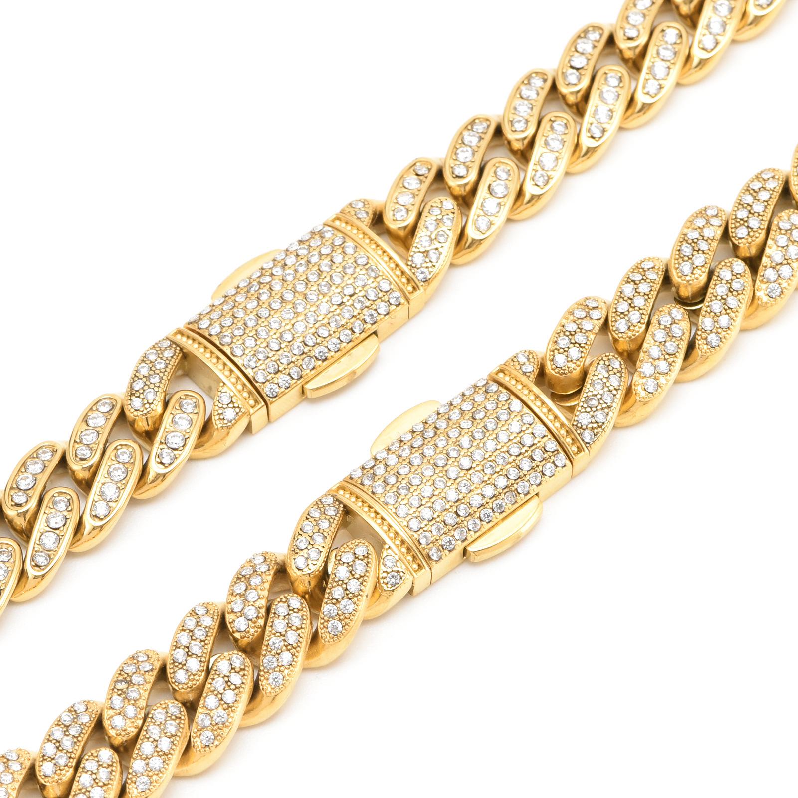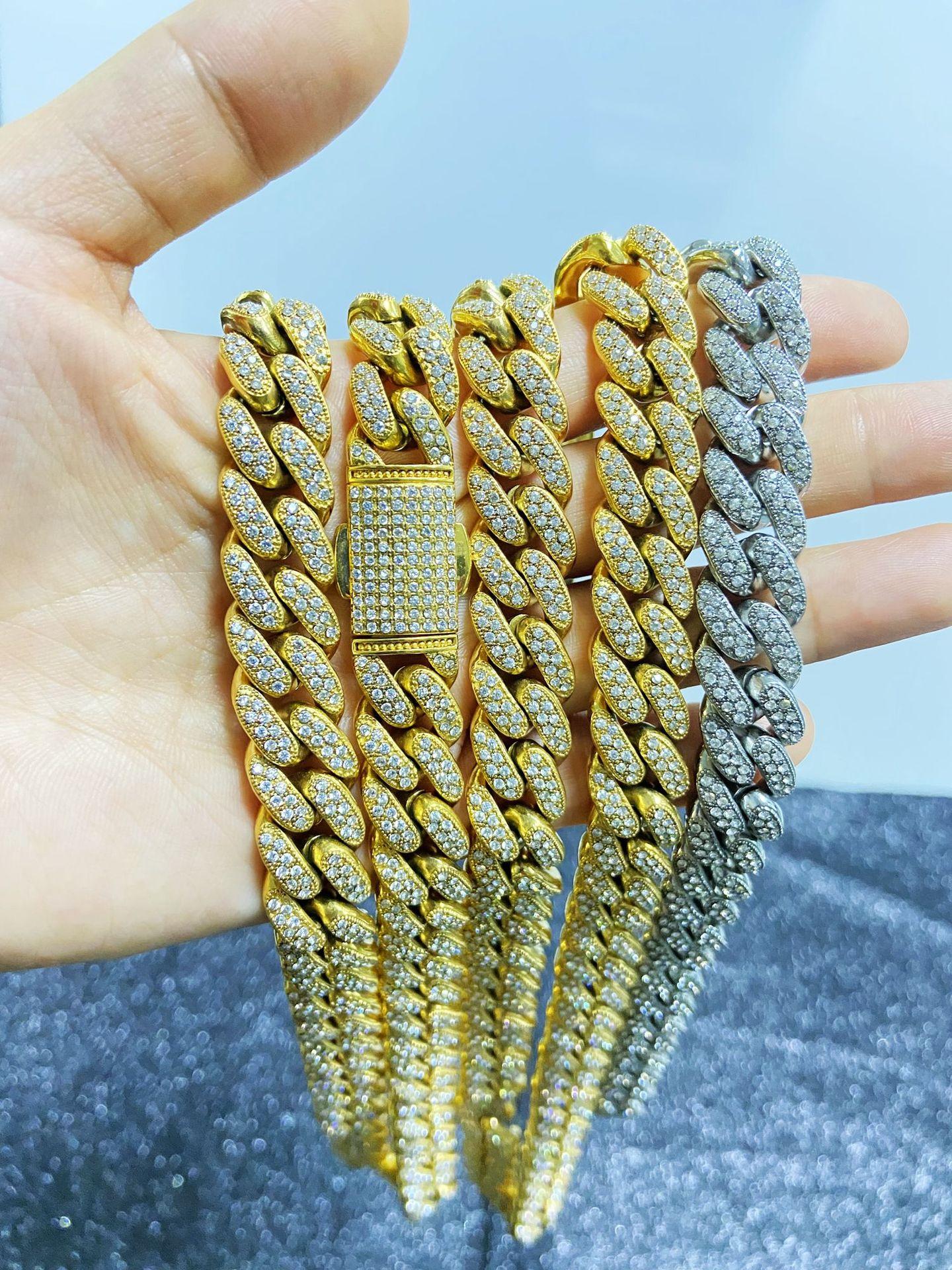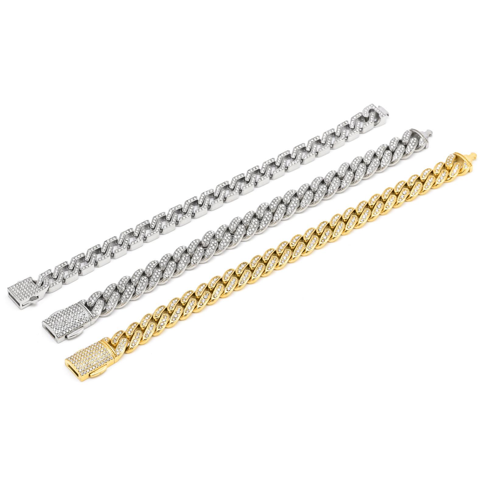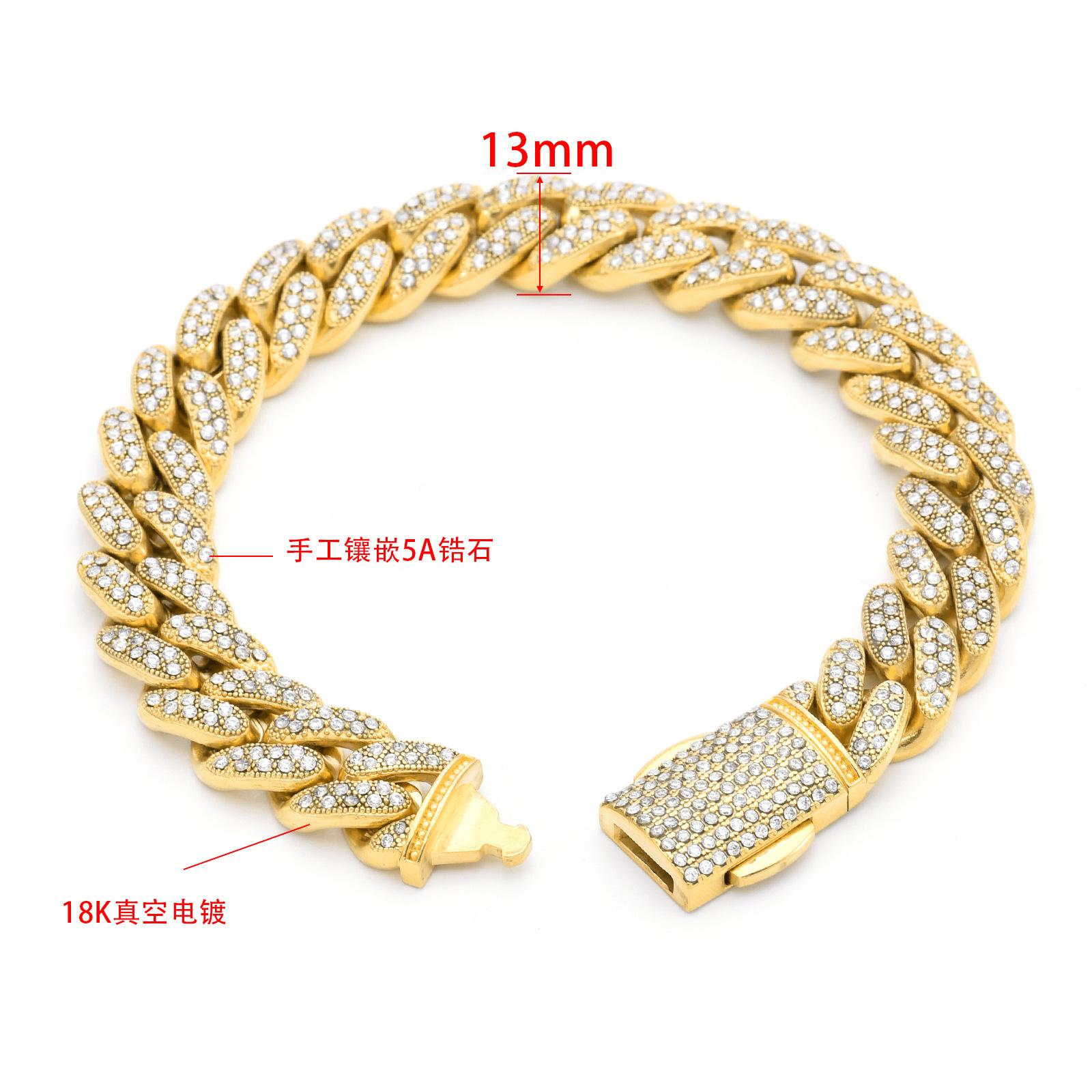 Joyería hip hop europea y americana pulsera de hombre de acero inoxidable con diamantes completos transfronteriza versátil cadena cubana de acero de titanio accesorios al por mayor