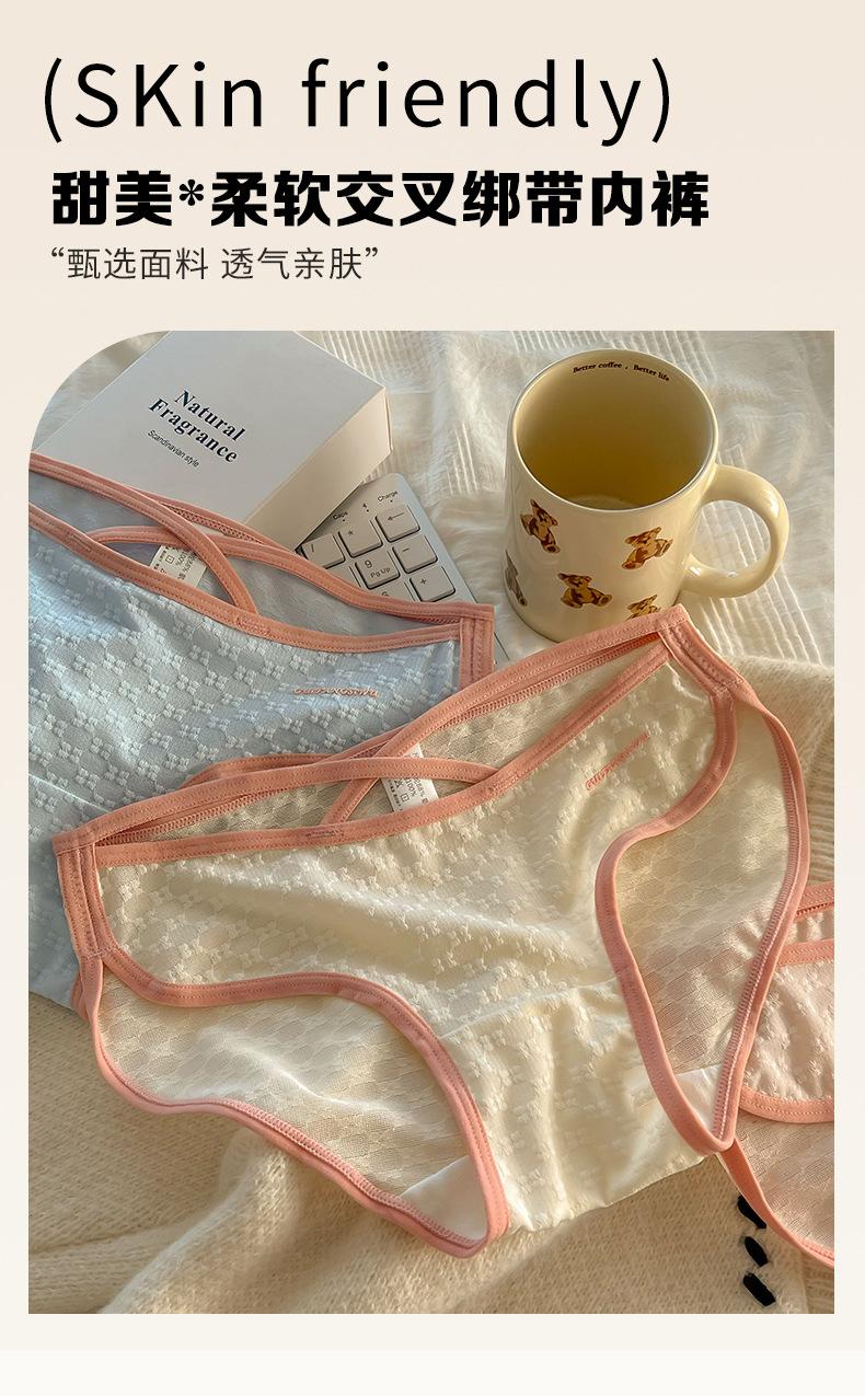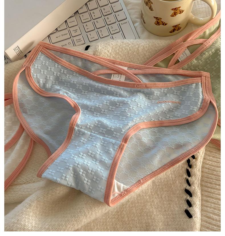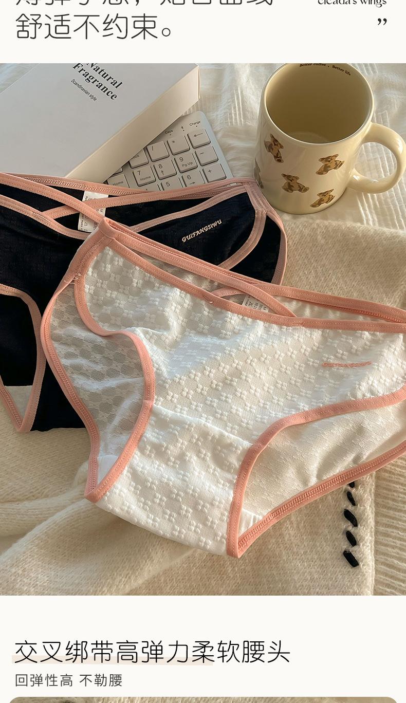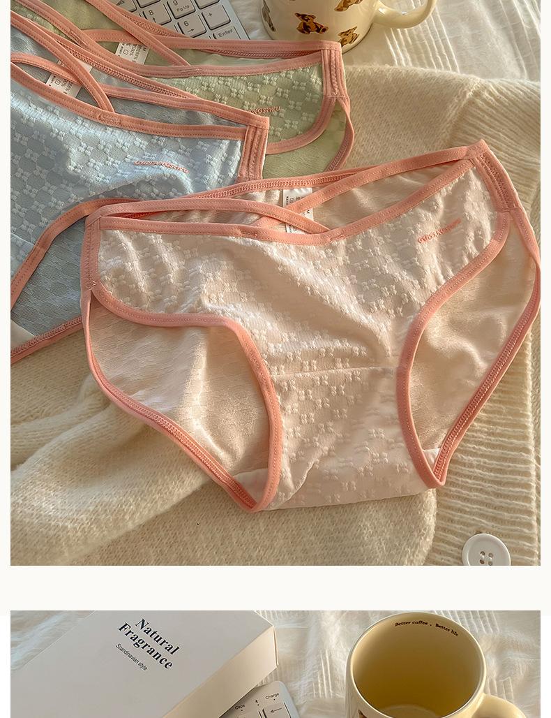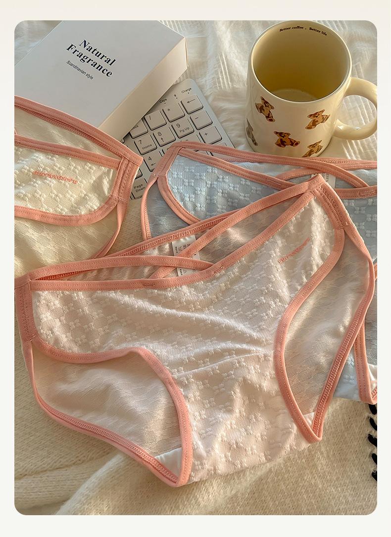 Ropa interior sexy de tirantes finos para niña Calzones para mujer estilo europeo y americano de malla jacquard con entrepierna de algodón transpirable y cómoda de cintura media