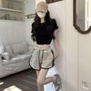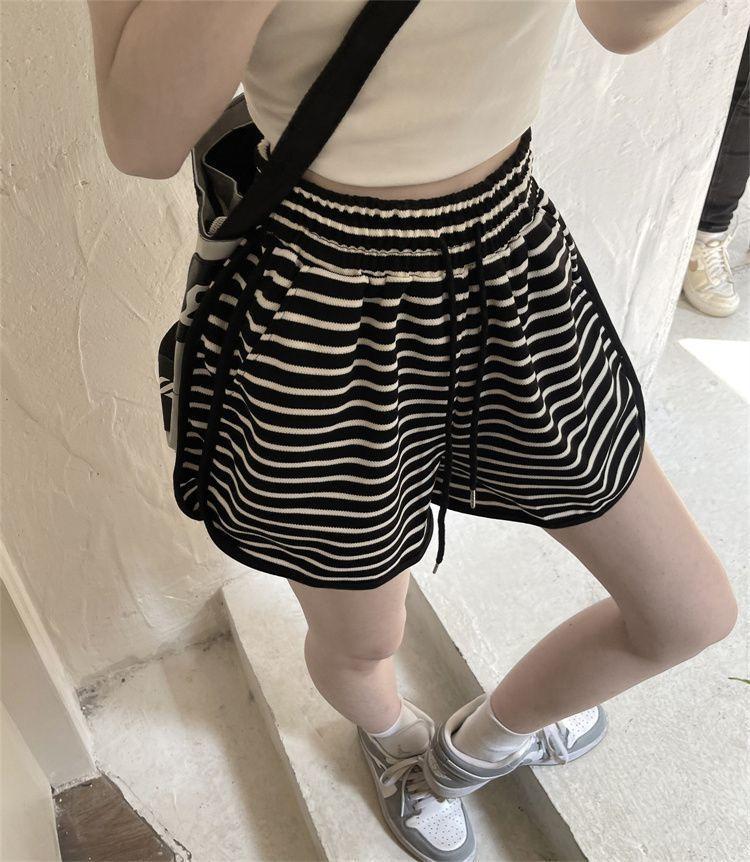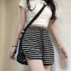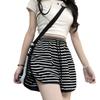 Pantalones cortos deportivos a rayas para mujer, verano 2024, nuevos pantalones casuales de cintura alta, sueltos, de talla grande, de pierna ancha, adelgazantes, de corte A