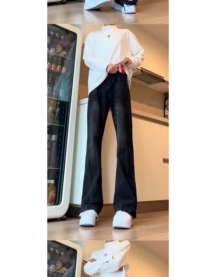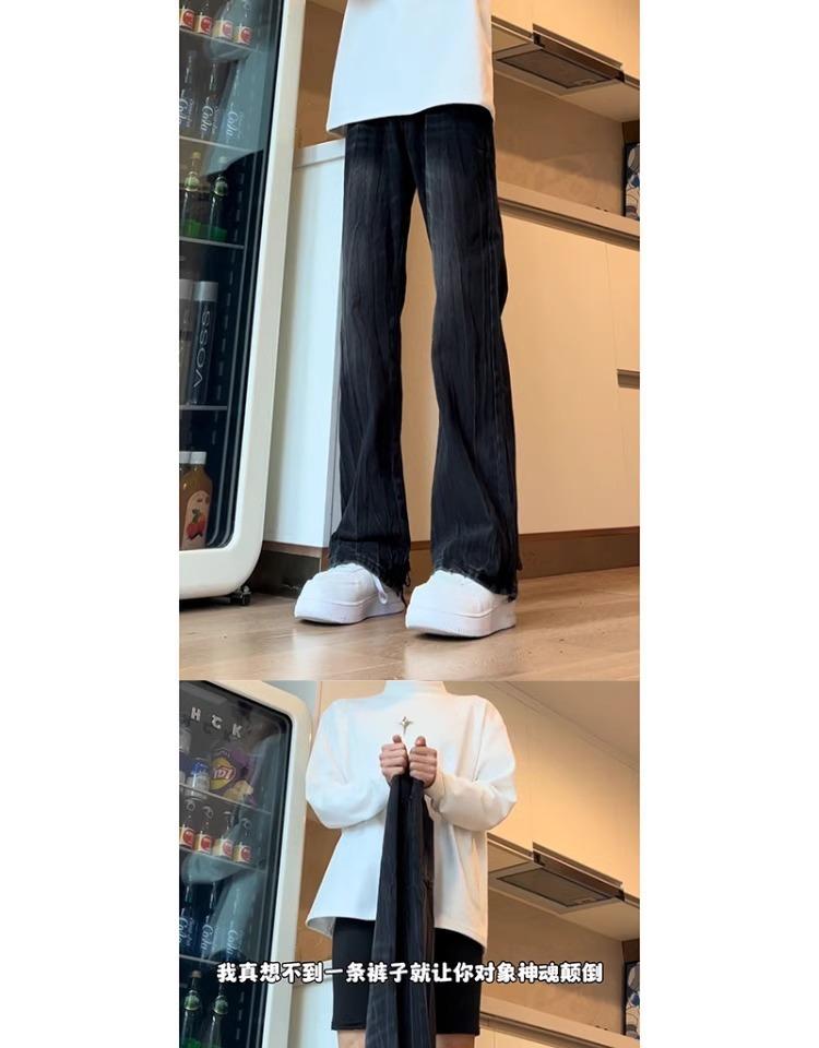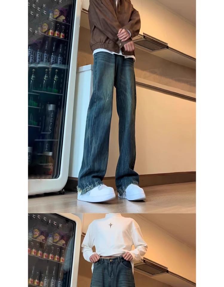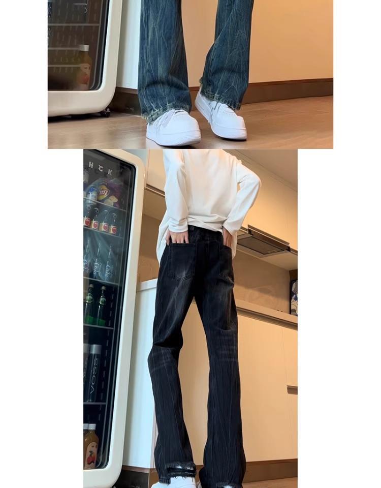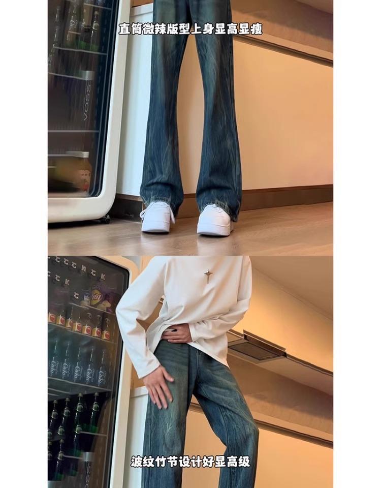 Pantalones Estilo Americano Vibe High Street Lavados Patrón Bambú Jeans de Verano para Hombre Nuevos Pantalones Rectos Micro Altos
