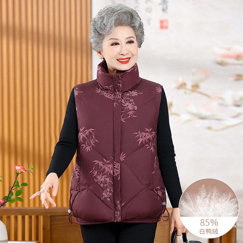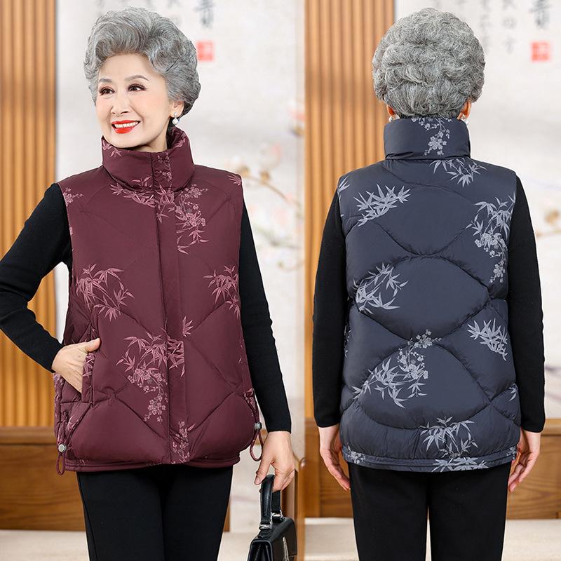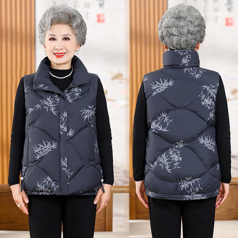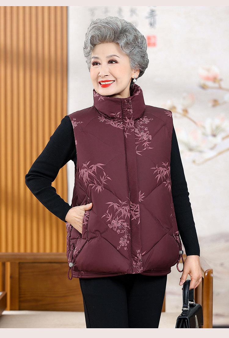 Chaqueta corta de plumón de invierno para mamá de mediana edad, chaleco de moda estilo occidental, para mujeres de mediana edad y mayores, chaleco con relieve, abrigo de otoño e invierno
