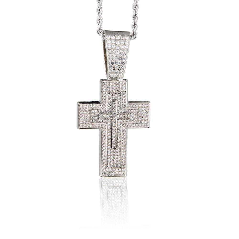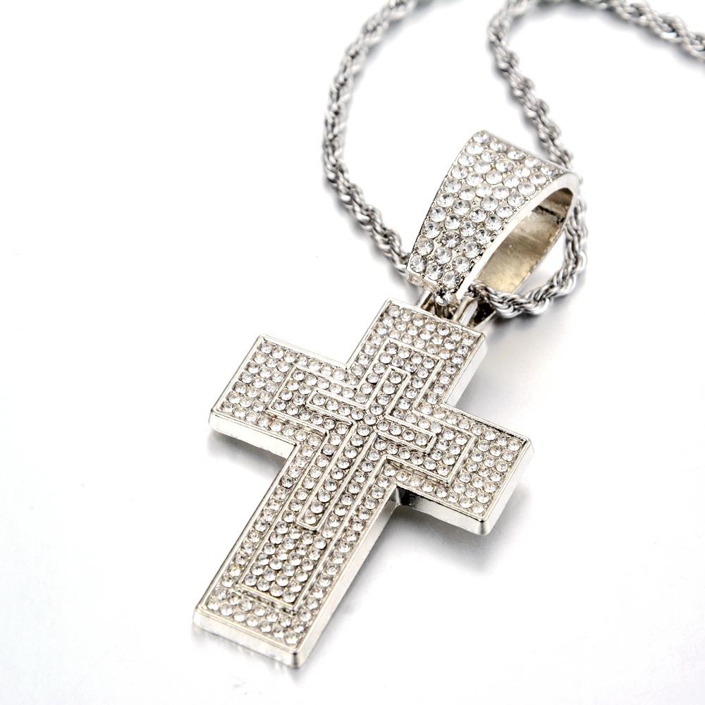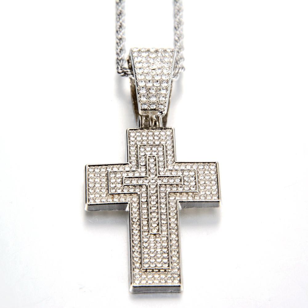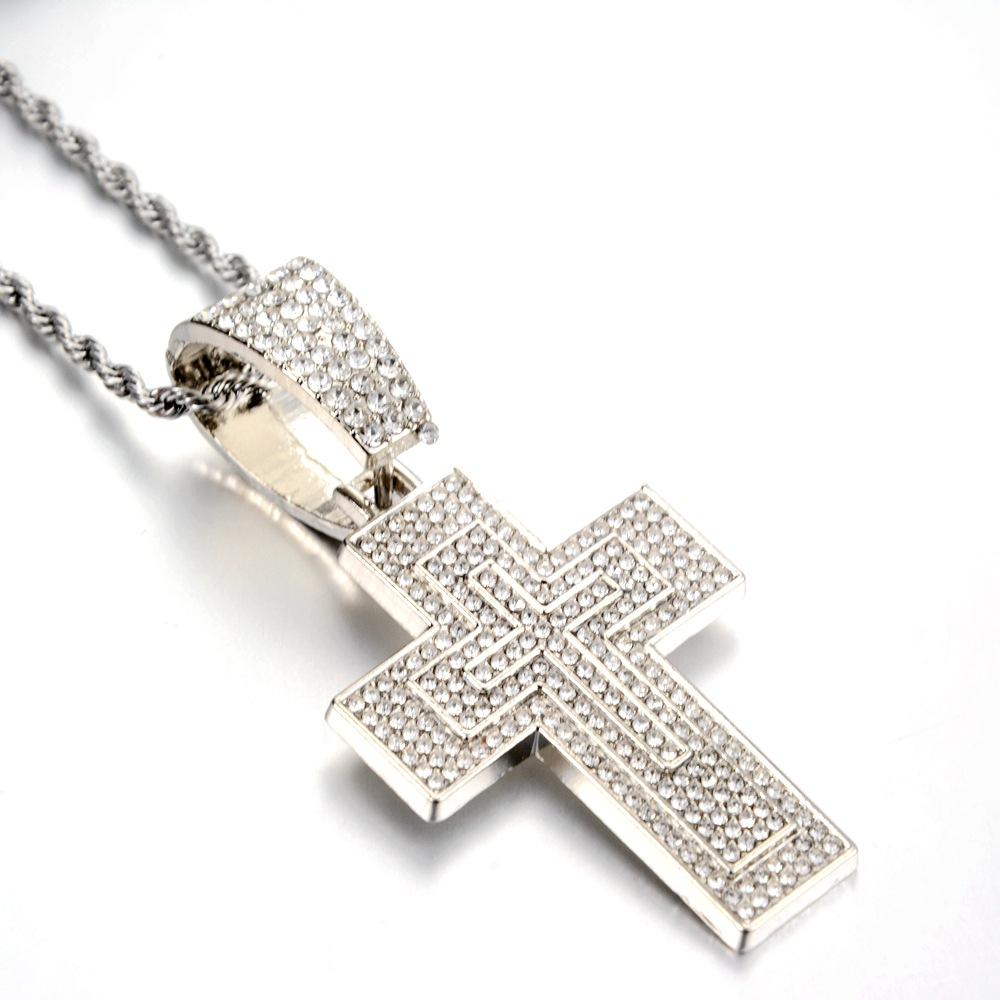 Collar de ocio personalizado para hombres y mujeres con colgante de cruz de diamantes de aleación de hip-hop para todo tipo de combinaciones de Europa y América.