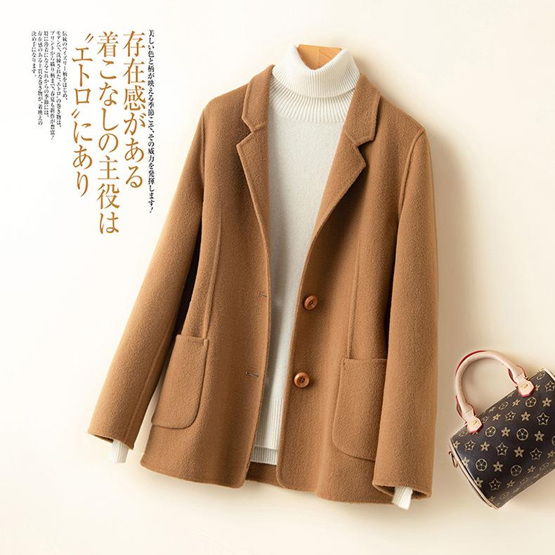 Traje popular de este año 2023 Invierno pequeño de lana doble cara camello commuter chaqueta de traje de lana top de mujer