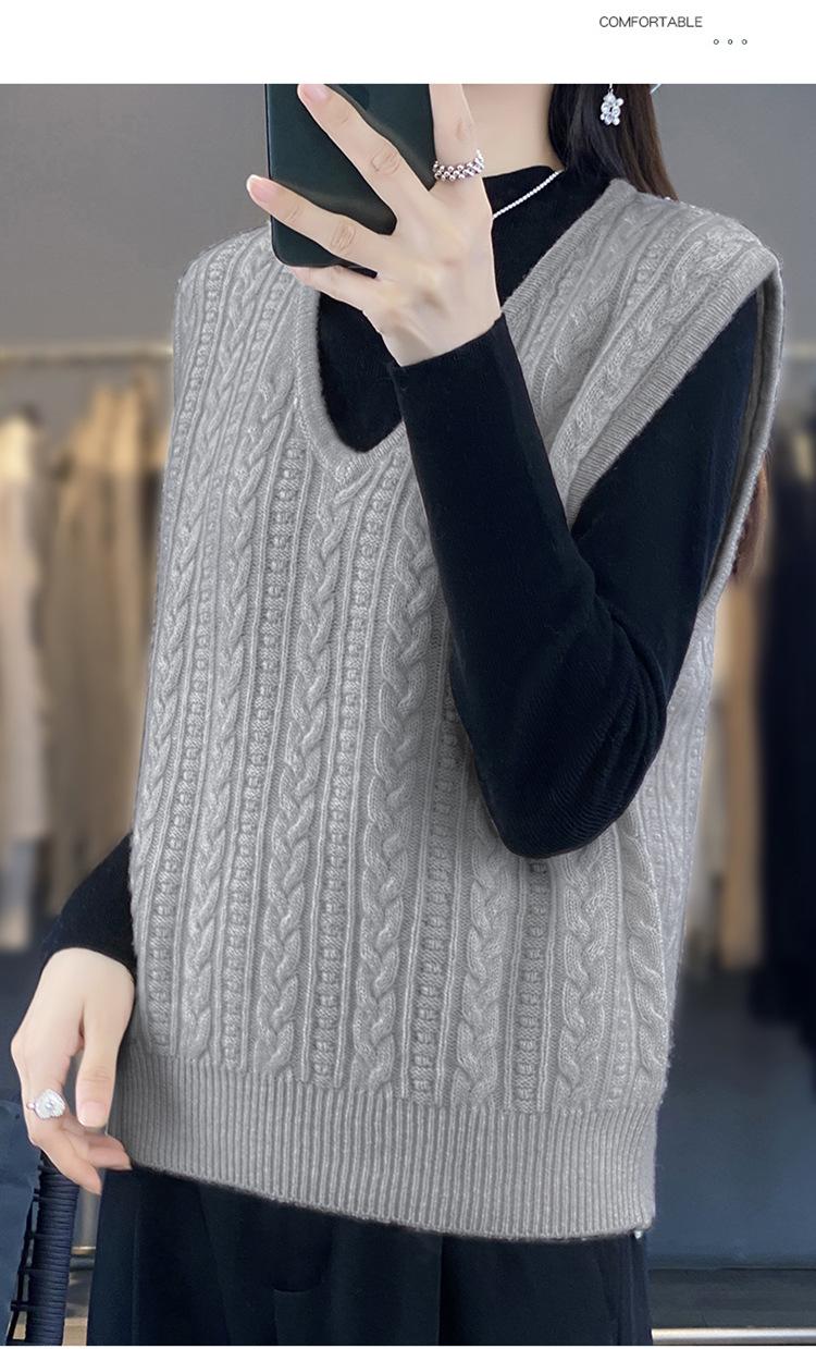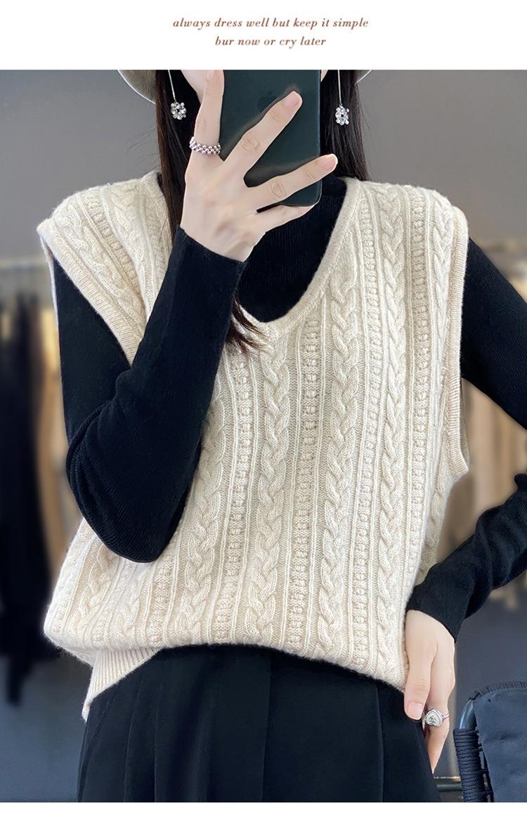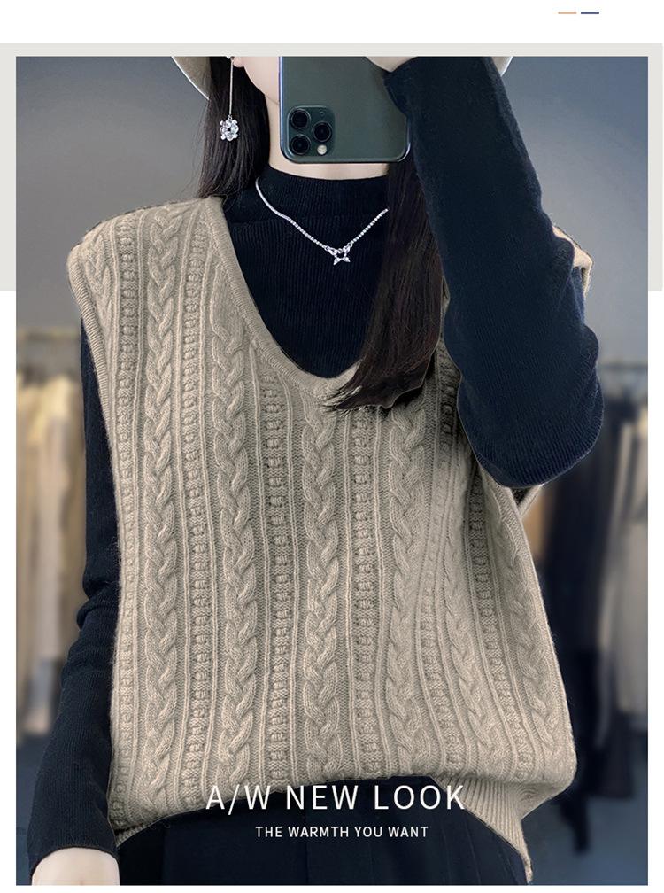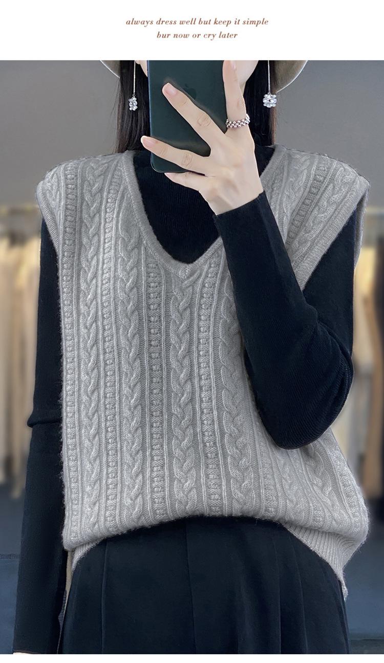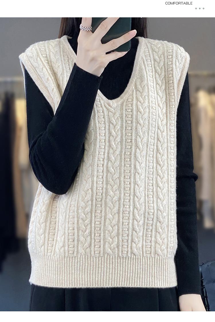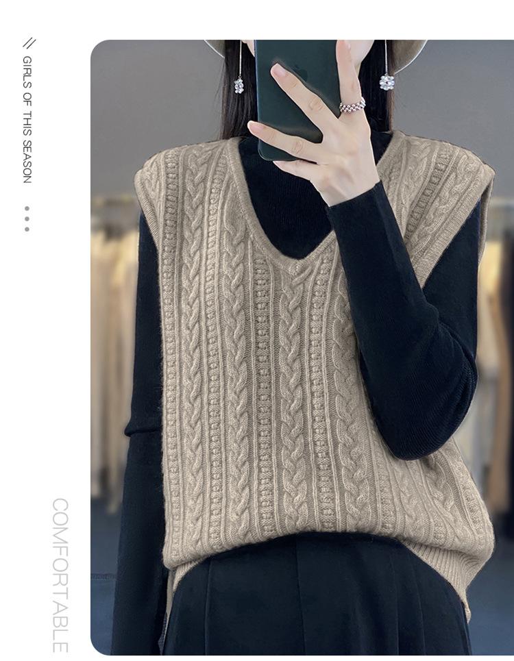 Compra Otoño e invierno Nuevo chaleco de punto de lana 100% pura para mujer con cuello en V engrosado apilado sin mangas suéter de cachemira chaleco al por mayor en Joom.pro