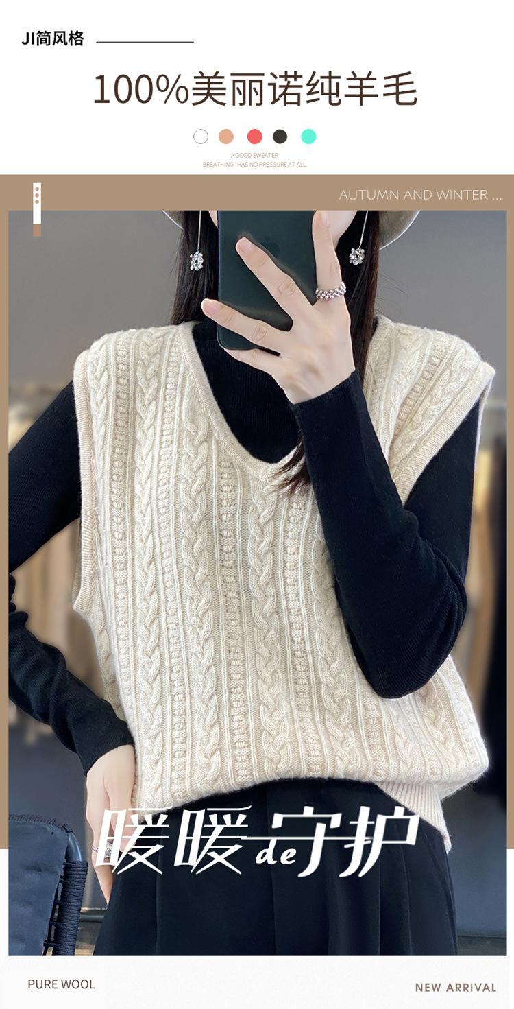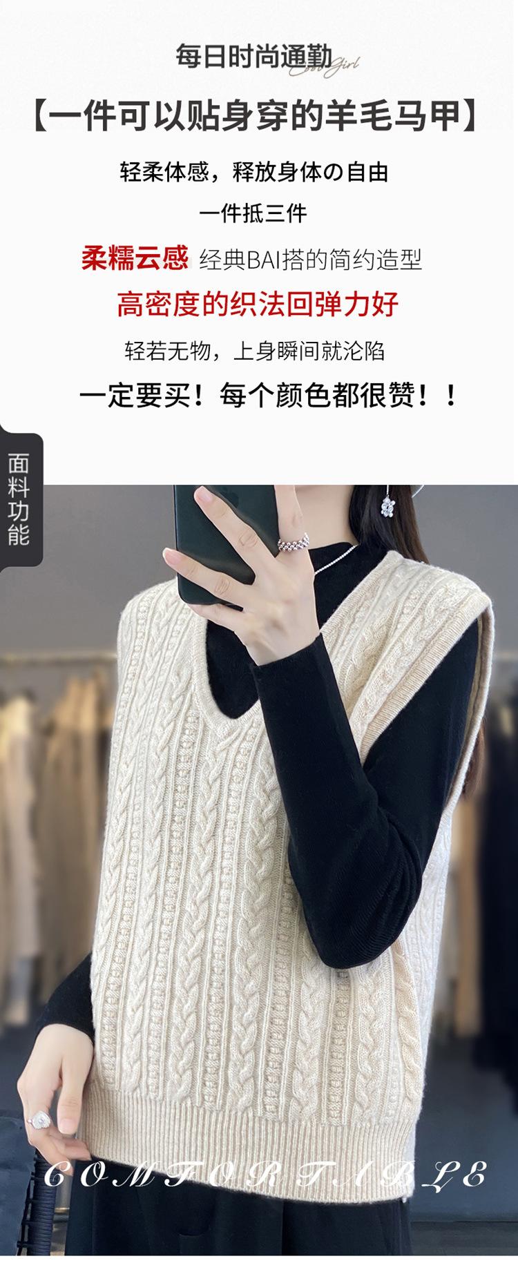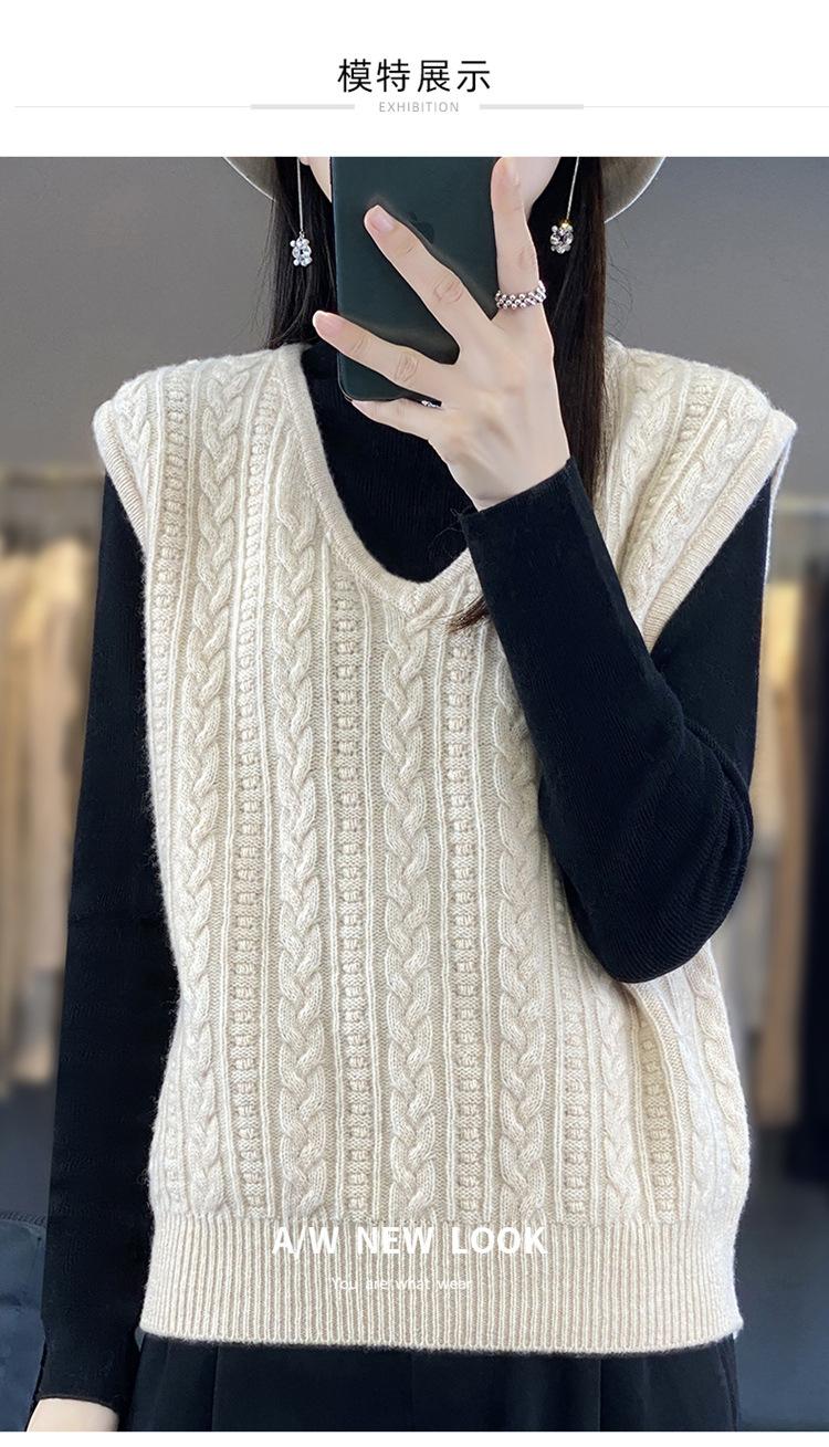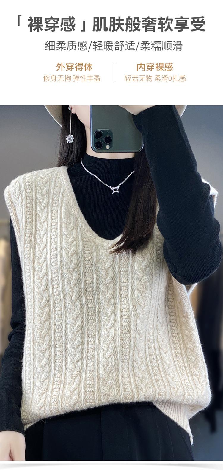Compra Otoño e invierno Nuevo chaleco de punto de lana 100% pura para mujer con cuello en V engrosado apilado sin mangas suéter de cachemira chaleco al por mayor en Joom.pro