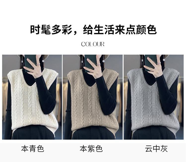 Otoño e invierno Nuevo chaleco de punto de lana 100% pura para mujer con cuello en V engrosado apilado sin mangas suéter de cachemira chaleco