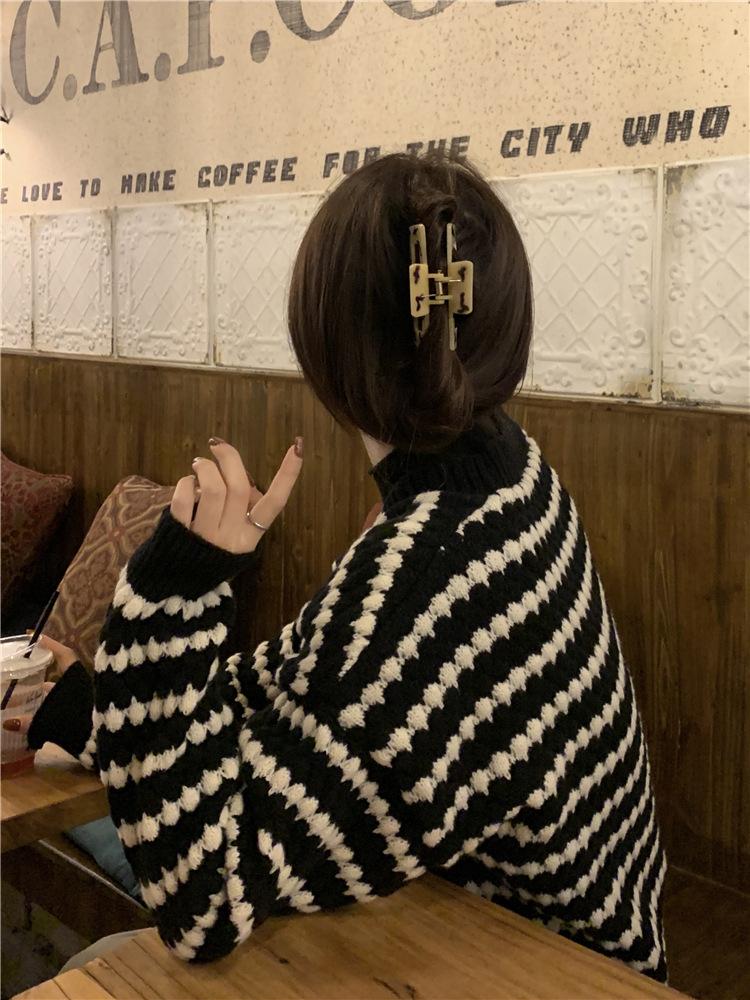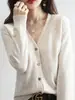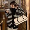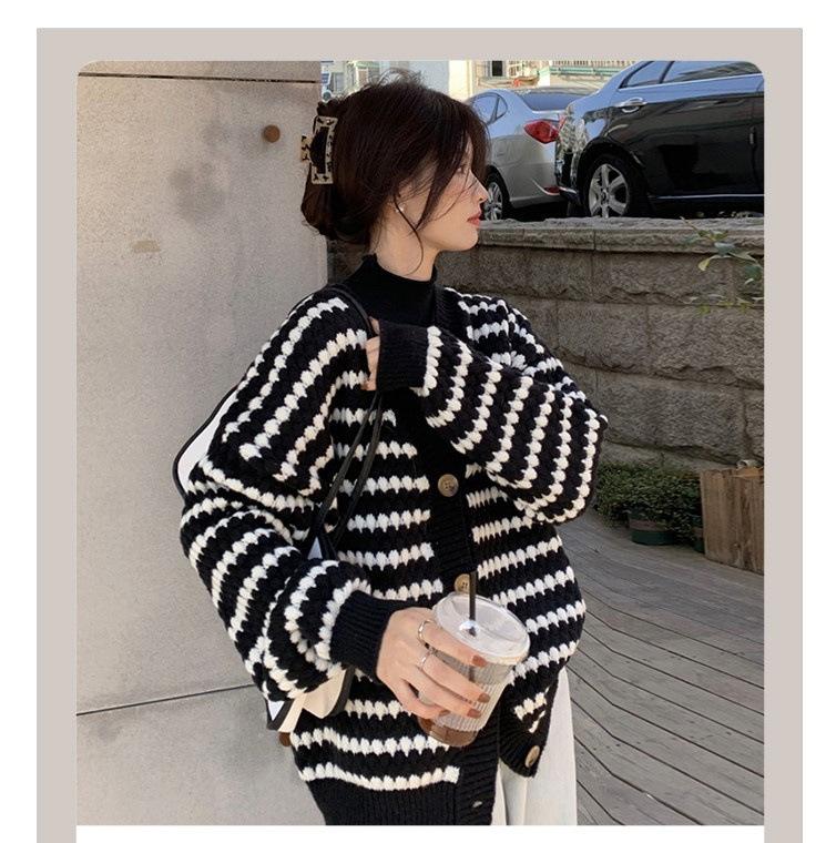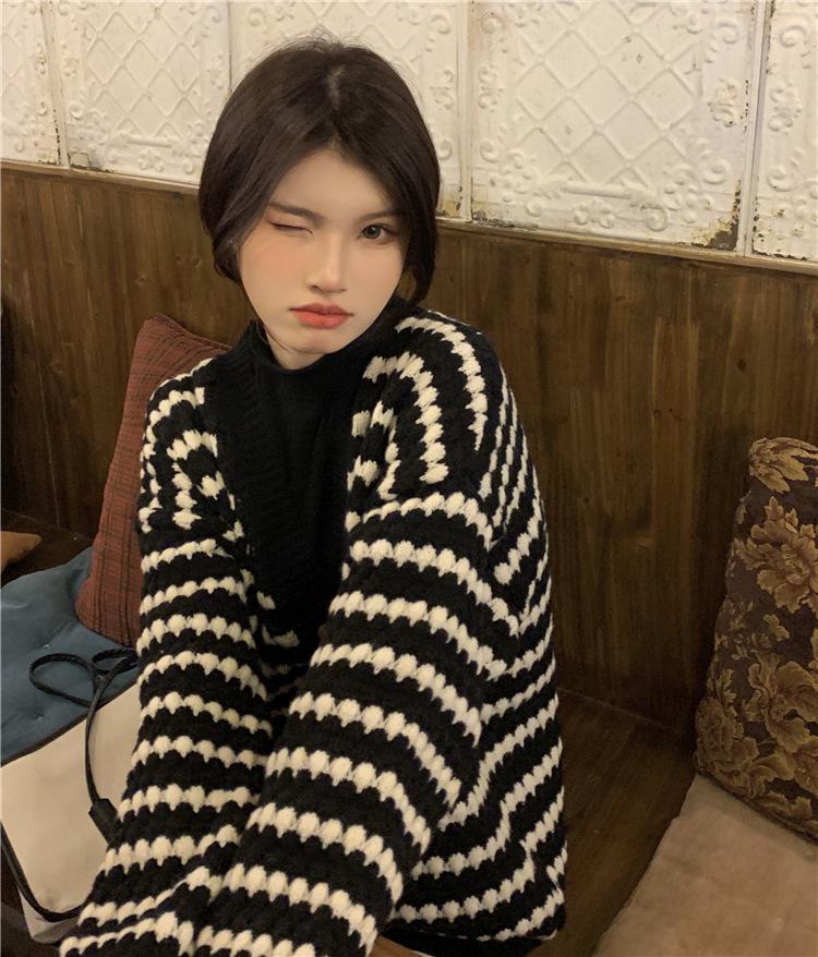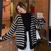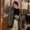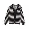 Cárdigan de punto de rayas con cuello en V estilo fragante de primavera y otoño para mujer, ropa exterior, suéter de moda estilo holgazán, abrigo casual suelto para mujer