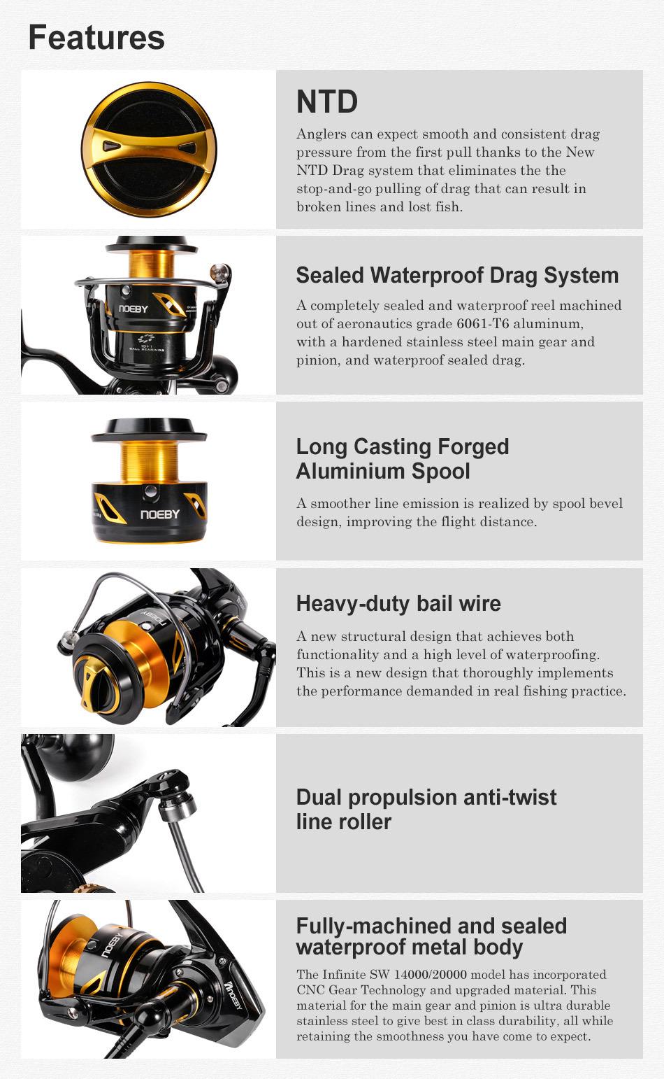 Carrete de Spinning NOEBY Nobi Luya 30 kg Metal Golden Gun Carrete de Spinning GT Pesca Mar Pesca en Barco