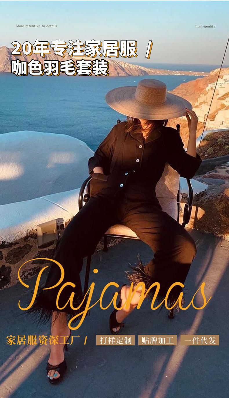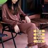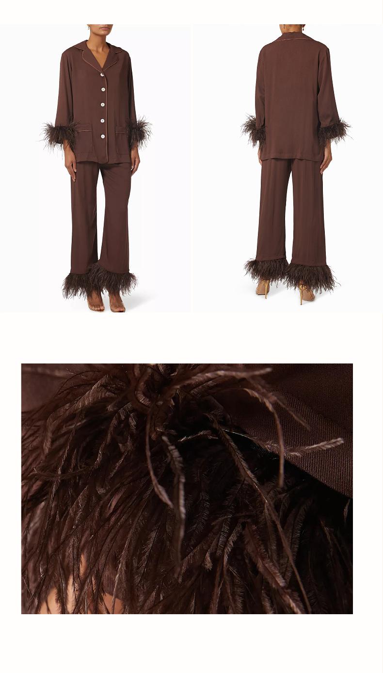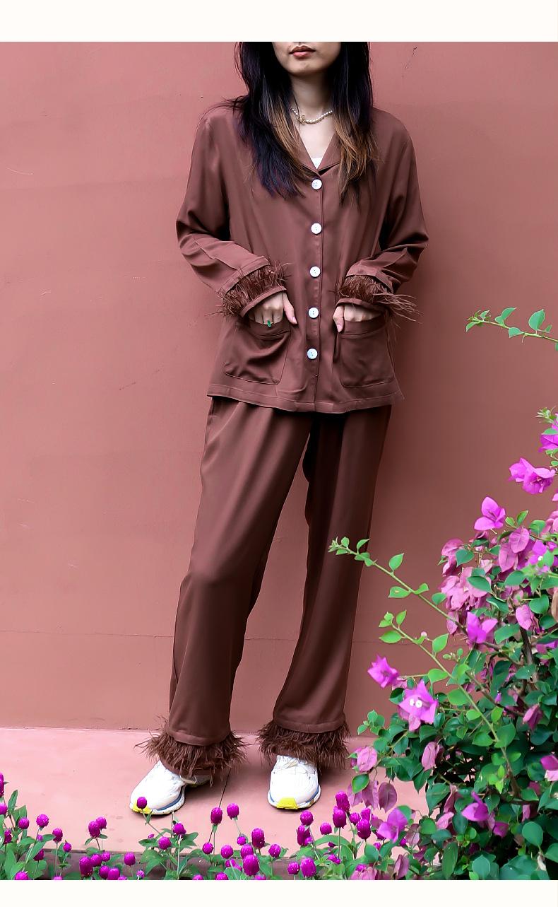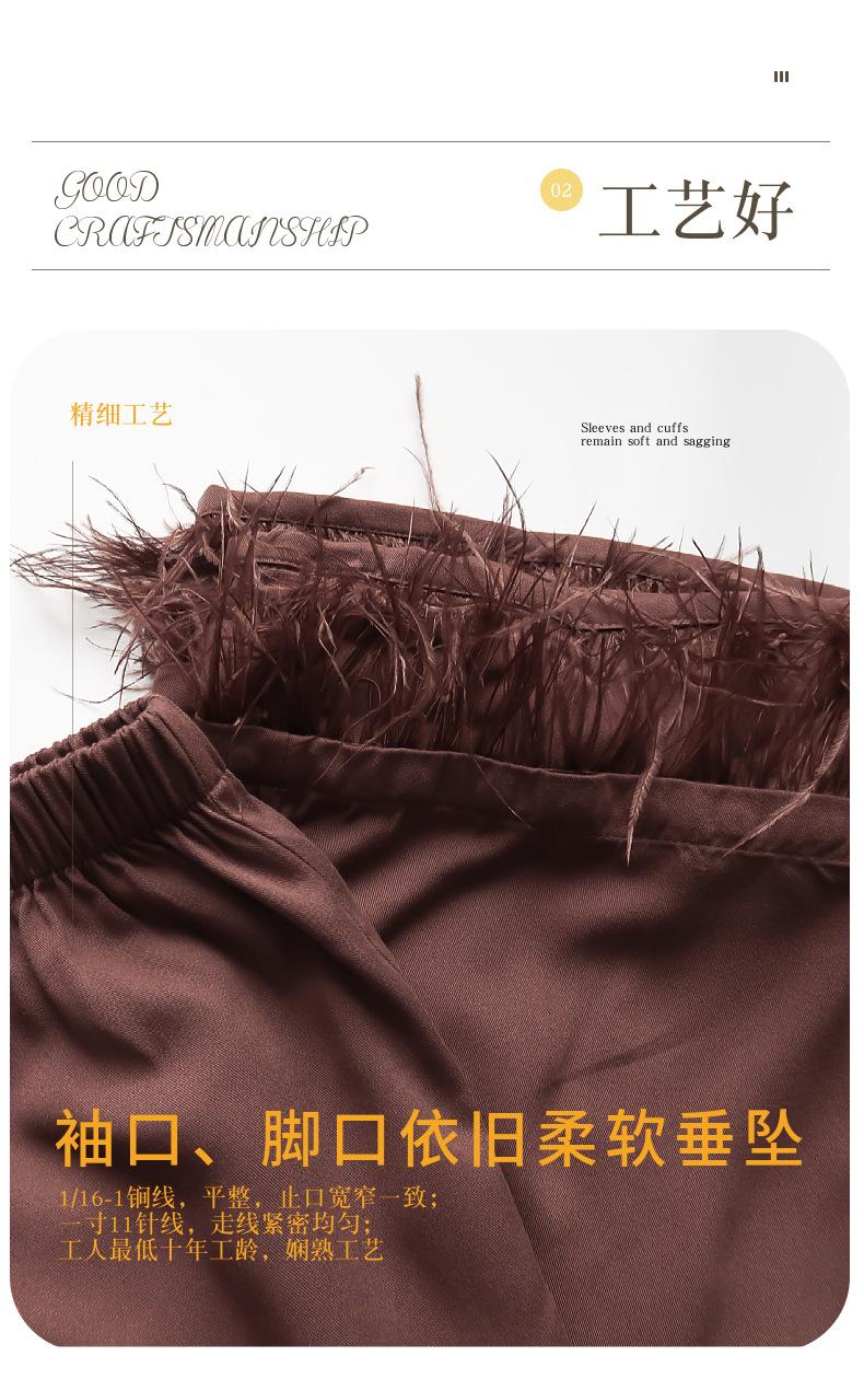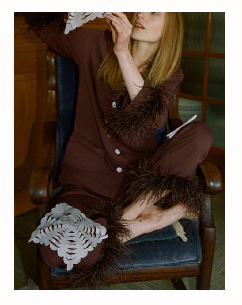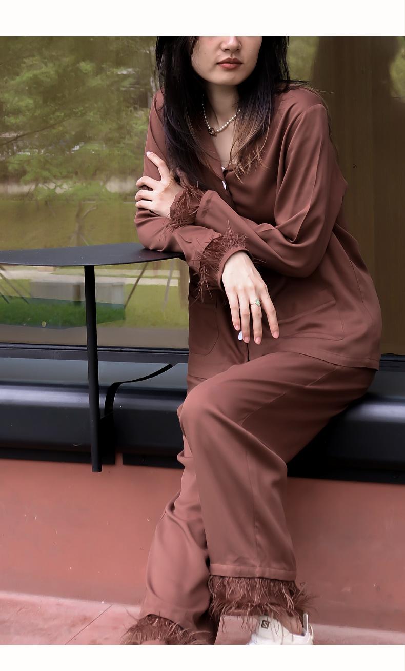 Pijama de algodón nuevo para mujer, de manga larga, con plumas de avestruz, marca de moda nicho, ropa para el hogar, plumas marrones, disponible al por mayor, disponible