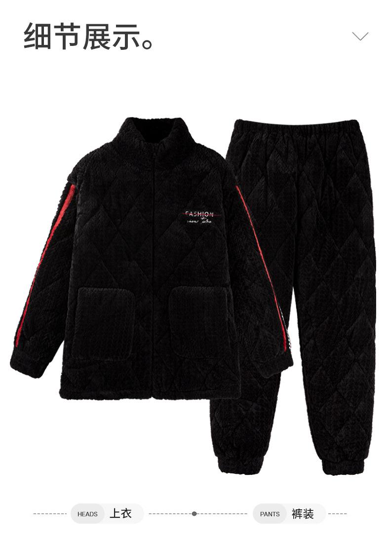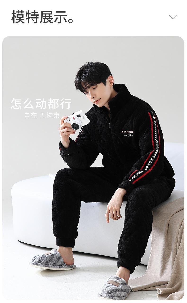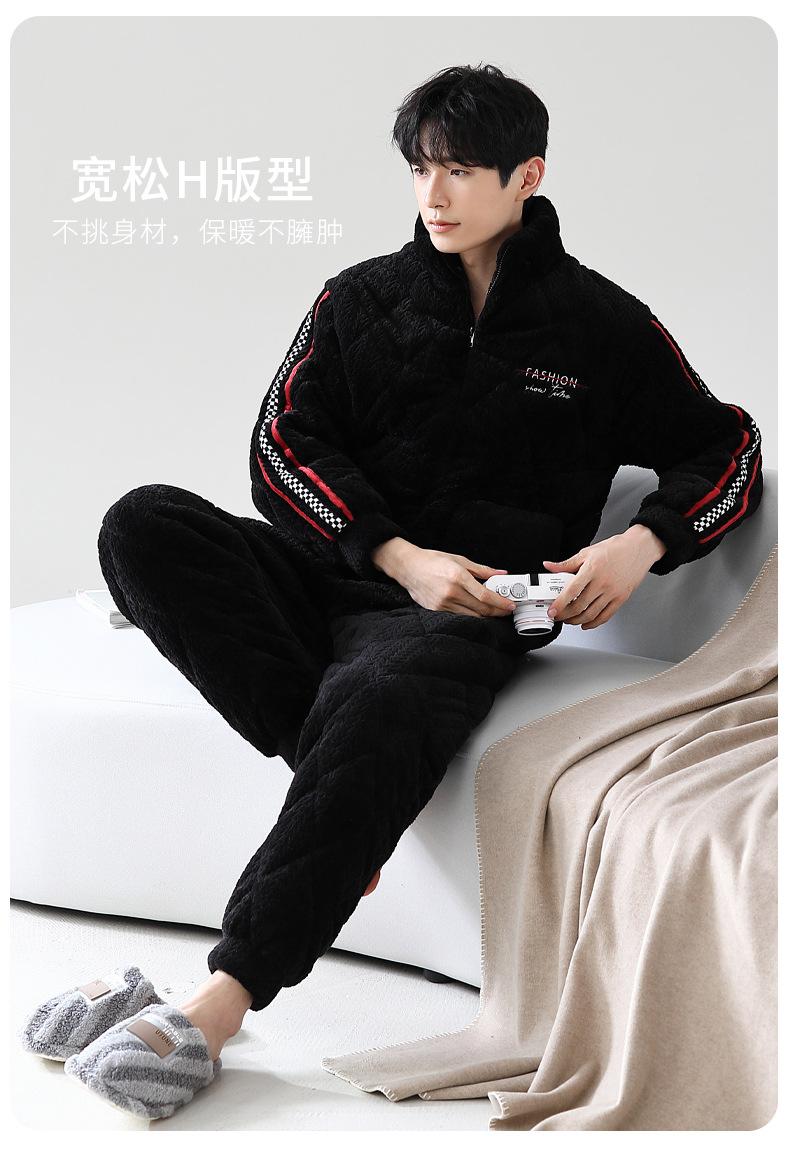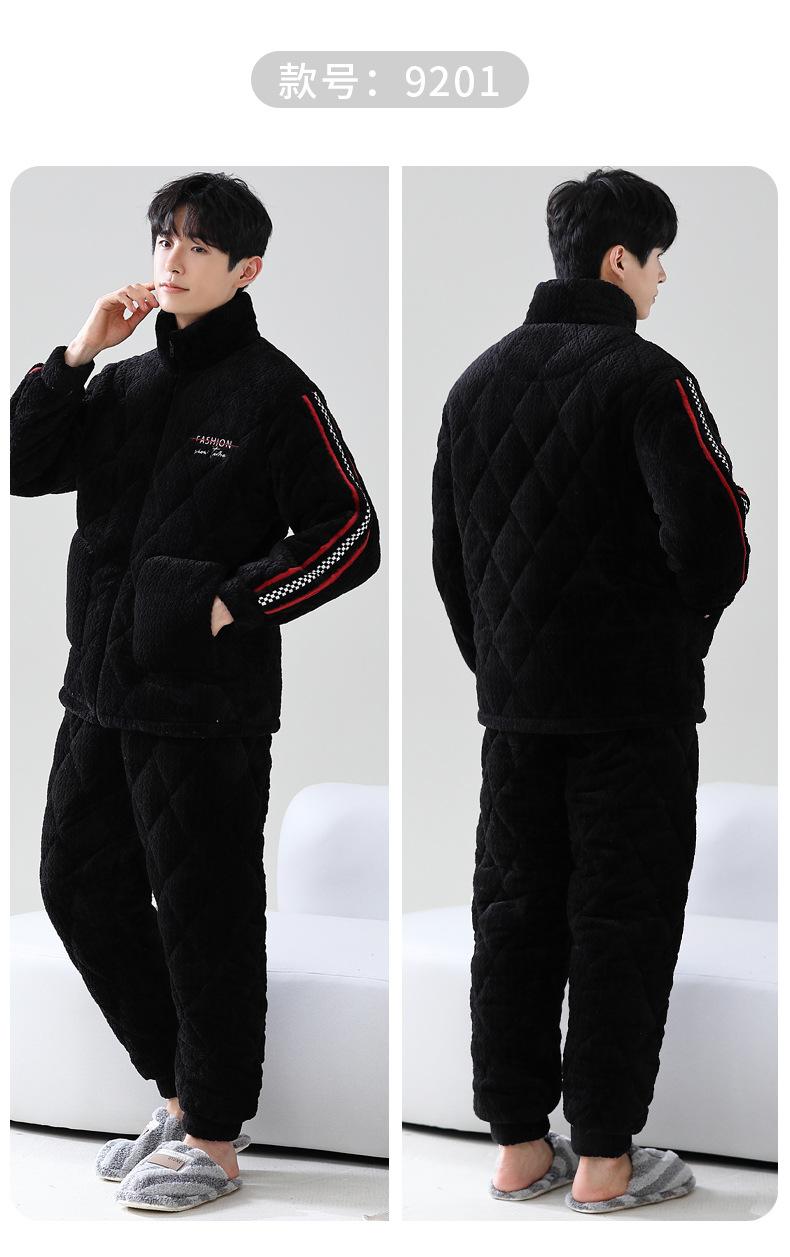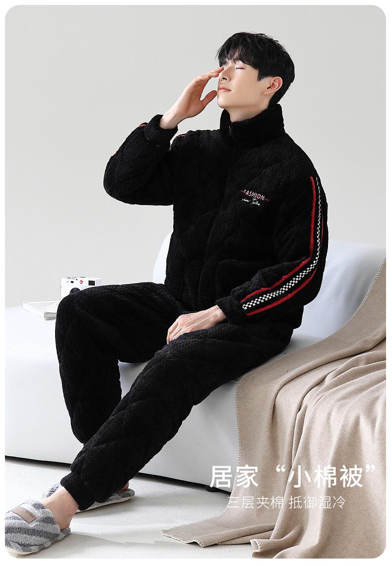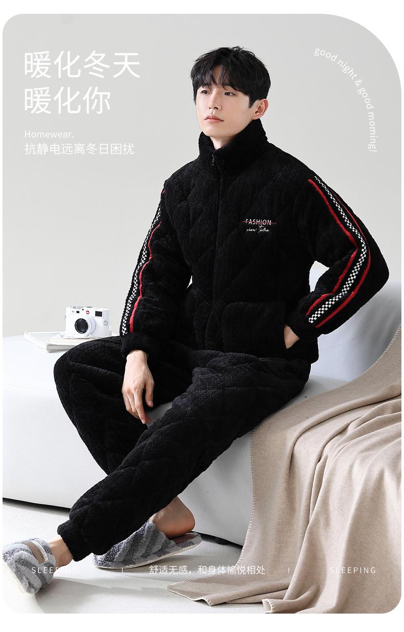 Pijama de invierno para hombre, forro polar coral de tres capas, acolchado grueso y cálido, chaqueta acolchada de algodón, traje de invierno para el hogar