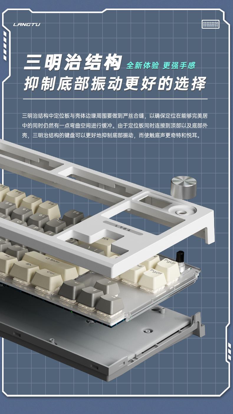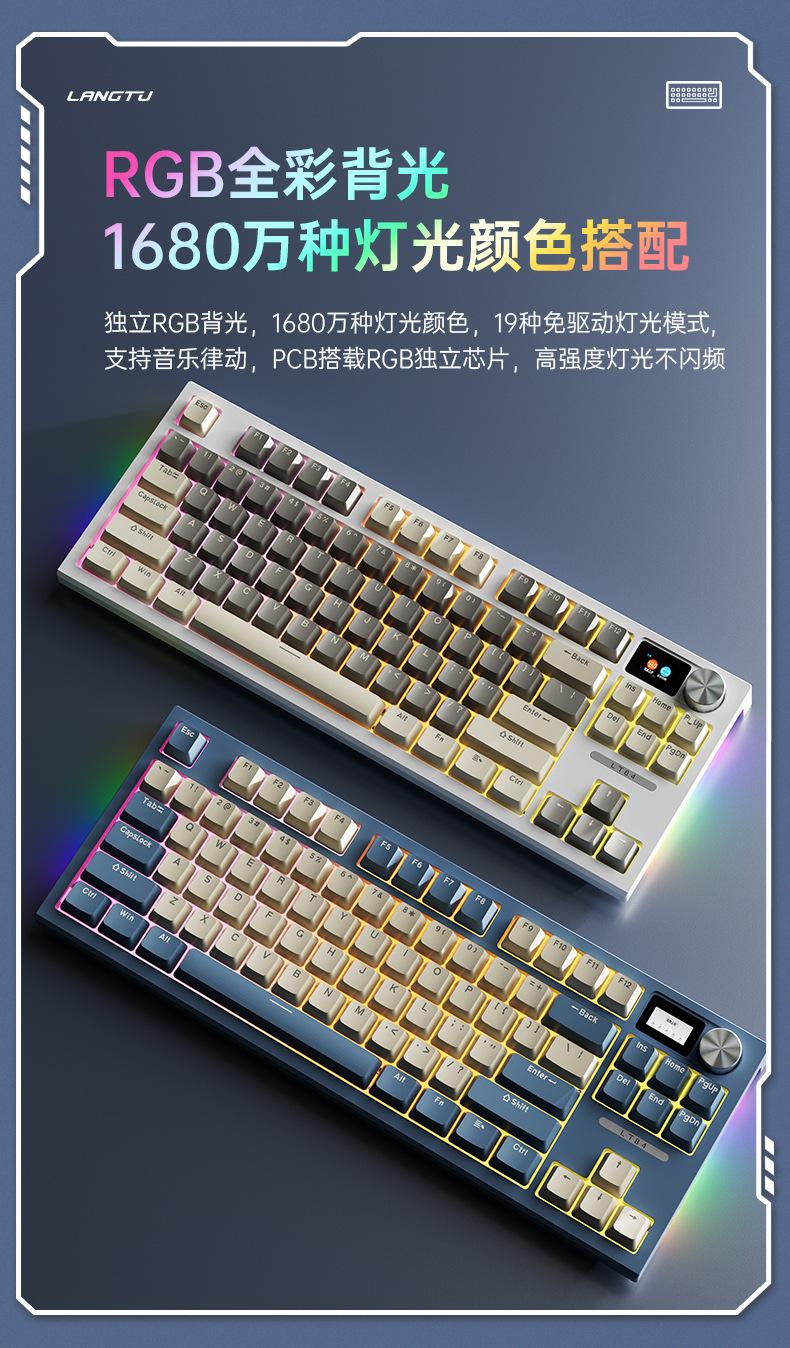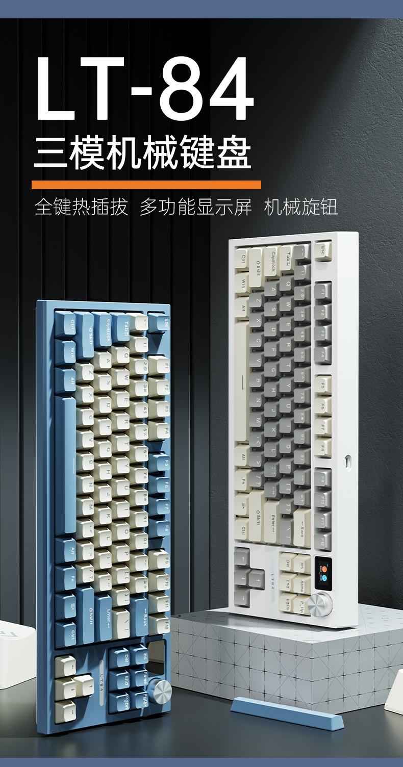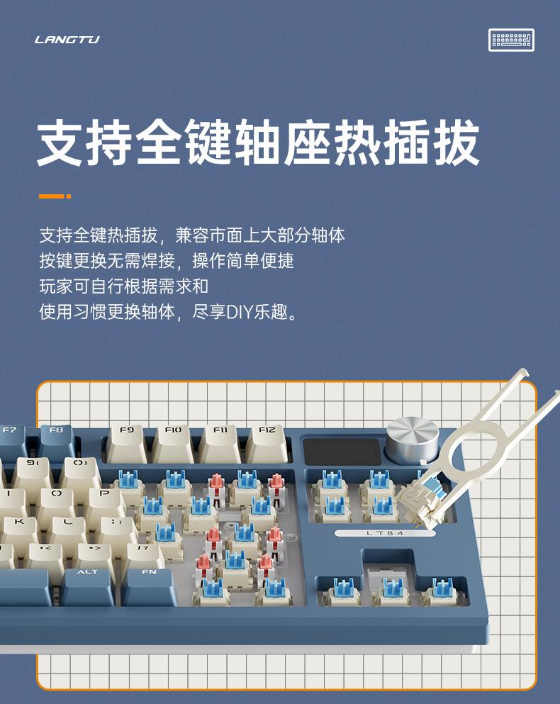 Teclado mecánico inalámbrico Bluetooth de tres modos Langtu LT84, teclado para juegos de eje azul de tres modos personalizado