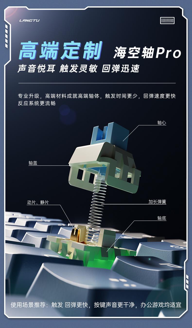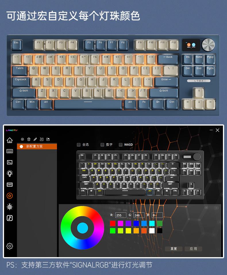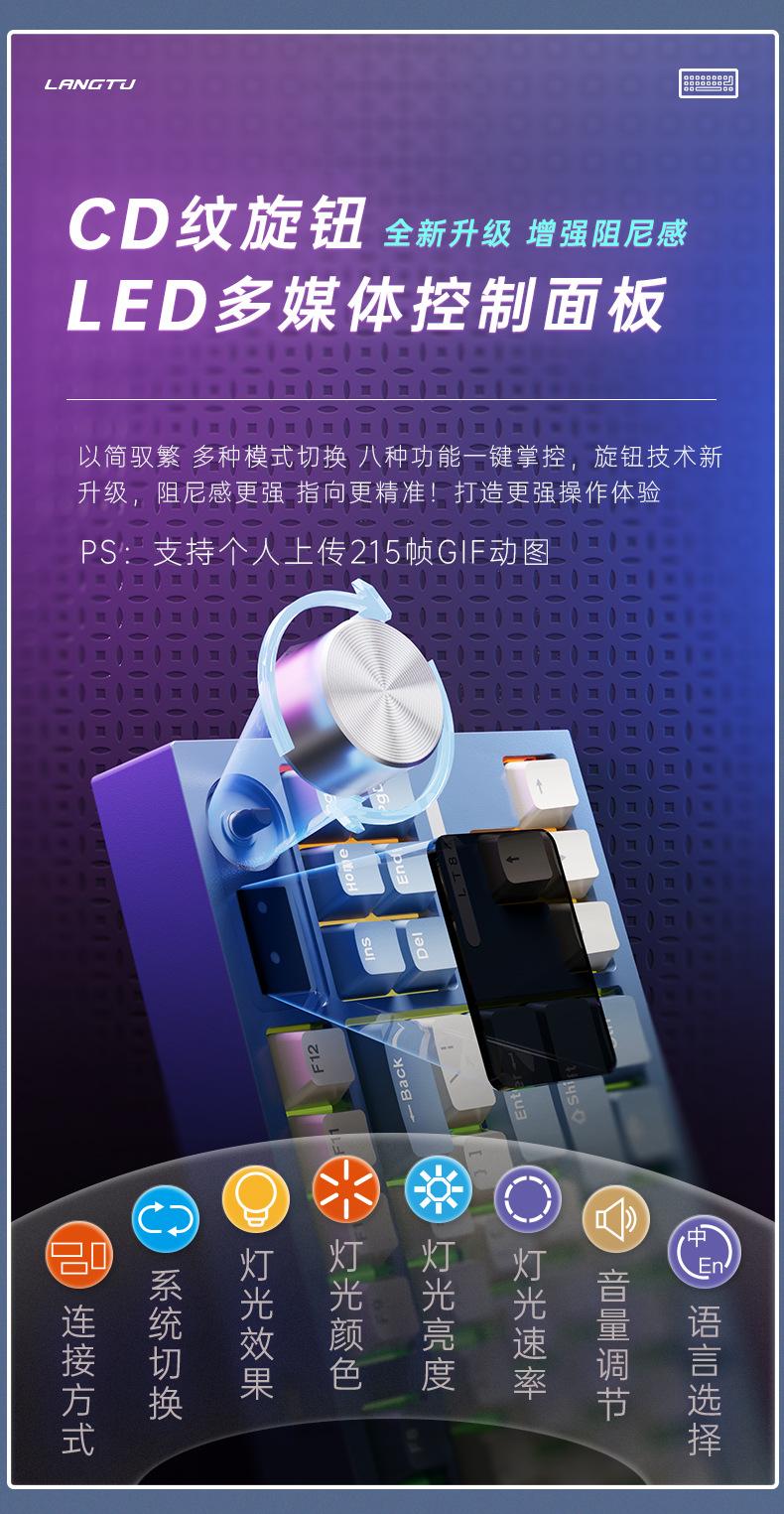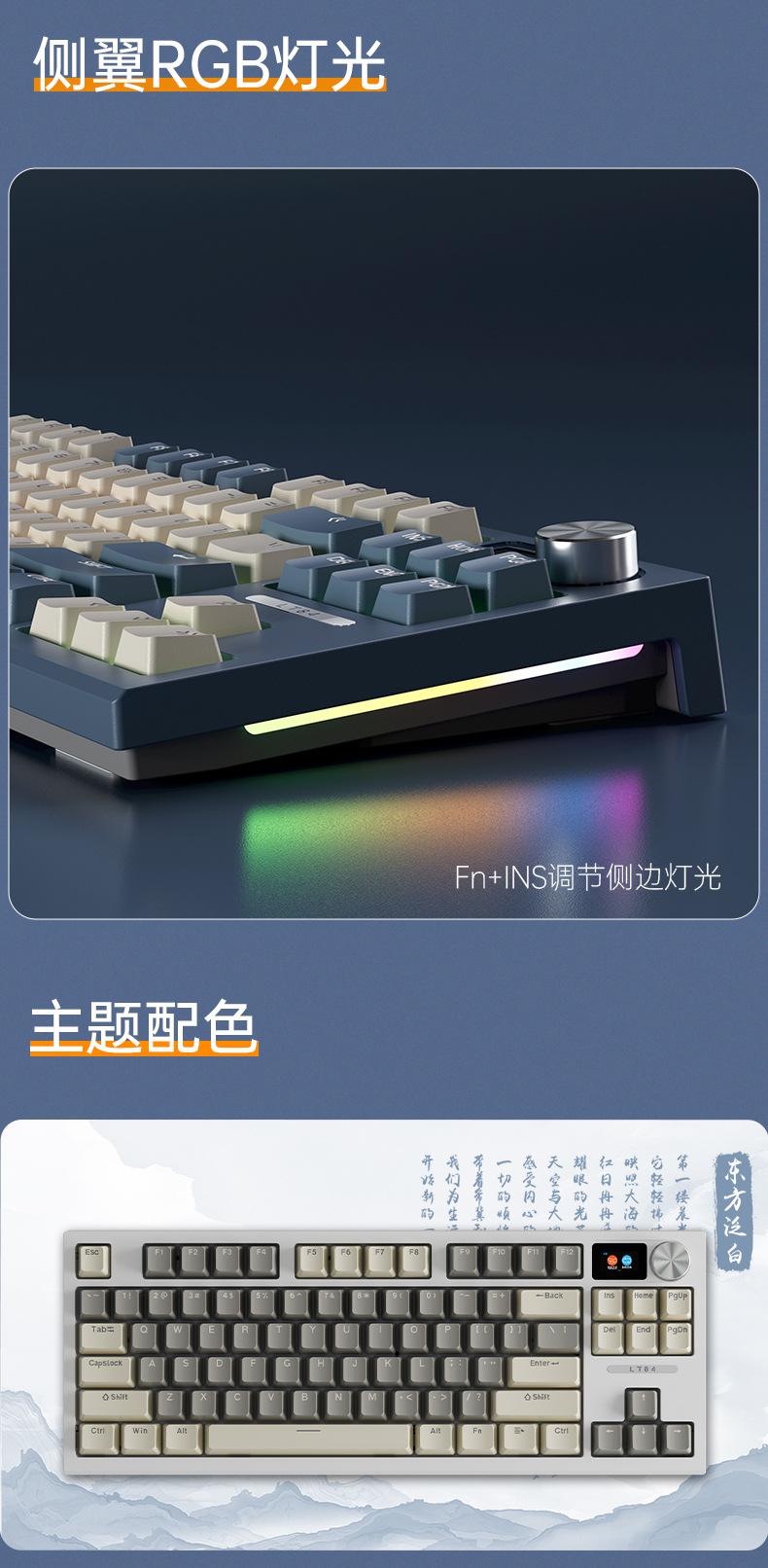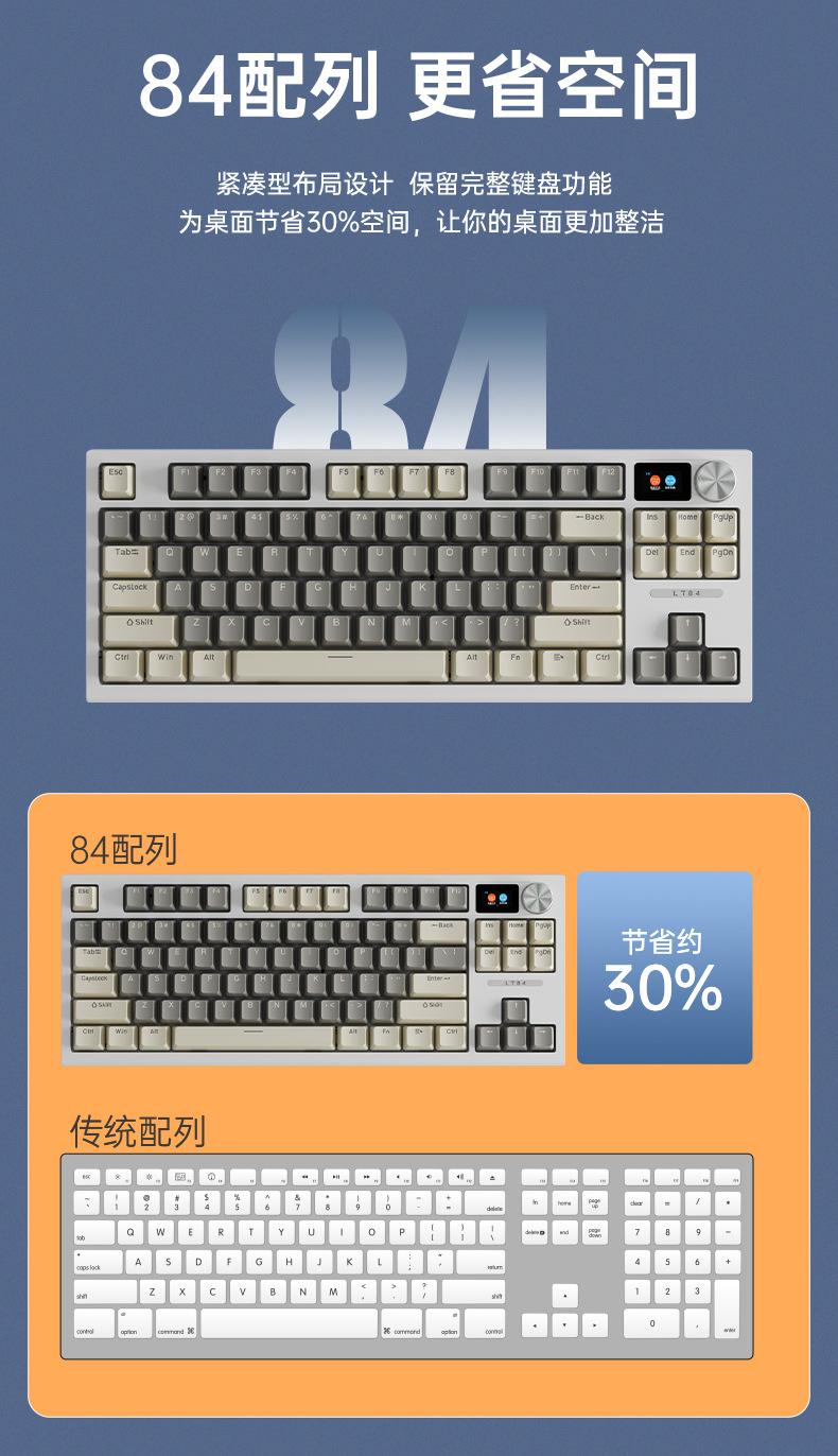 Teclado mecánico inalámbrico Bluetooth de tres modos Langtu LT84, teclado para juegos de eje azul de tres modos personalizado
