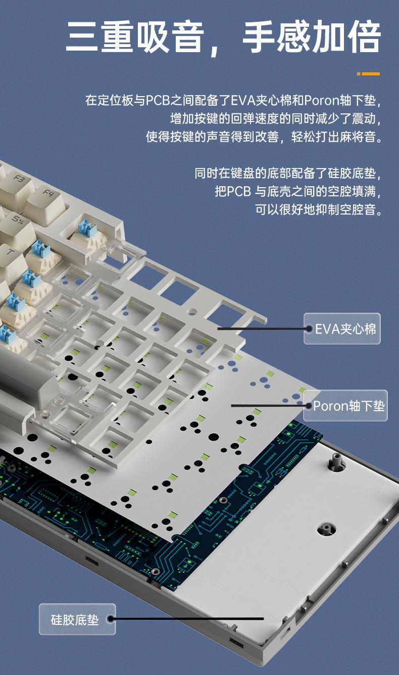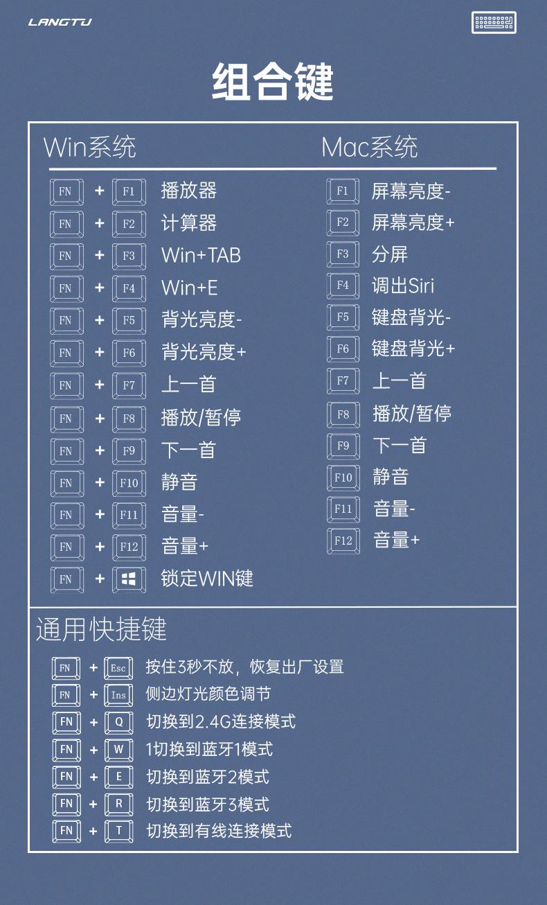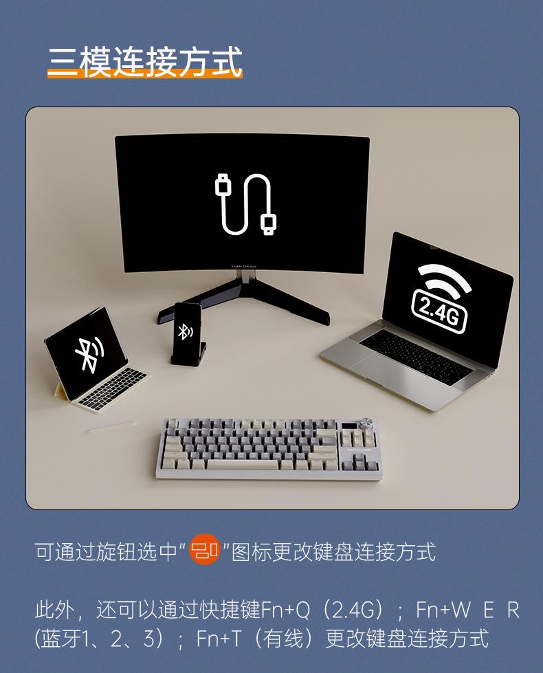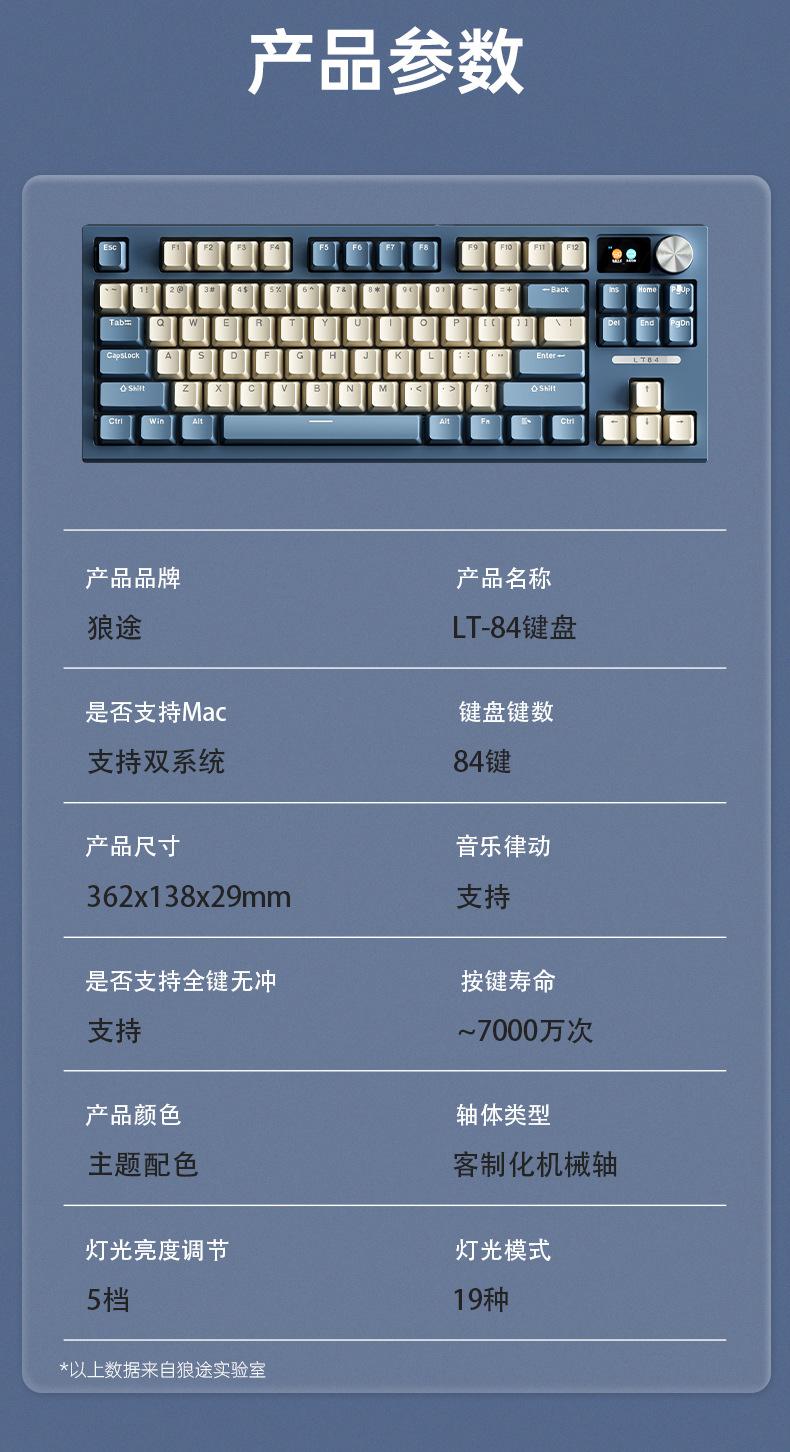 Teclado mecánico inalámbrico Bluetooth de tres modos Langtu LT84, teclado para juegos de eje azul de tres modos personalizado