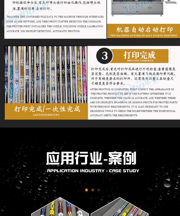 Adaptación multimaterial: Se puede imprimir en la superficie de tacos de diferentes materiales como madera, fibra de carbono, metal, etc., y asegura la adhesión mediante tintas especiales (como tinta UV).