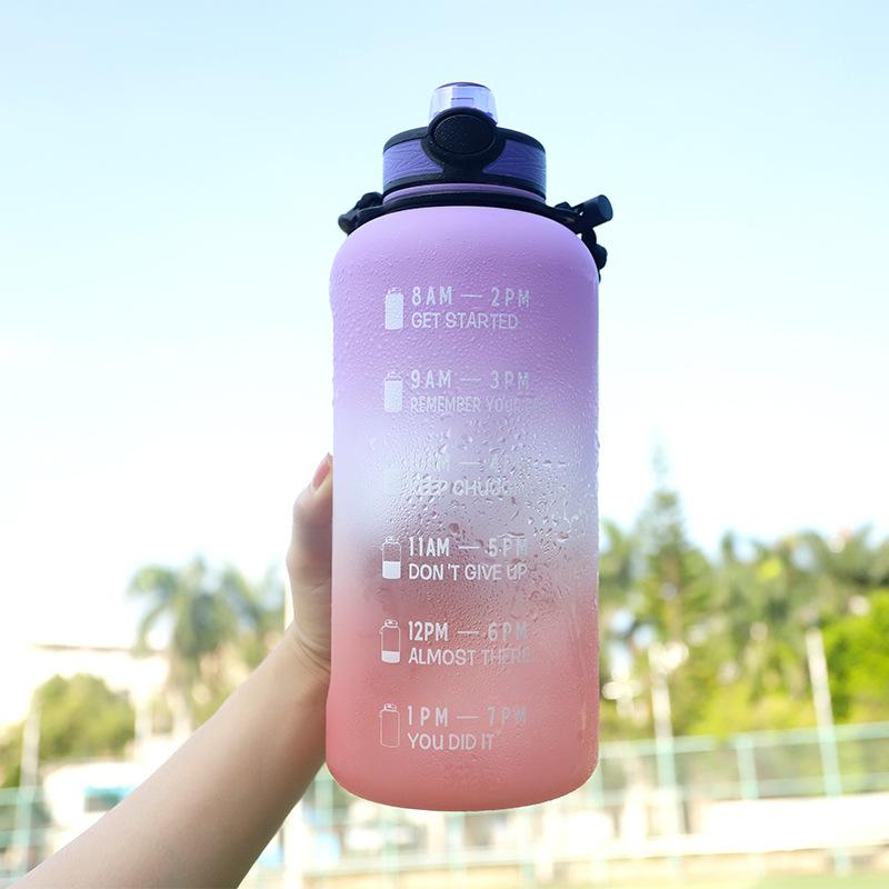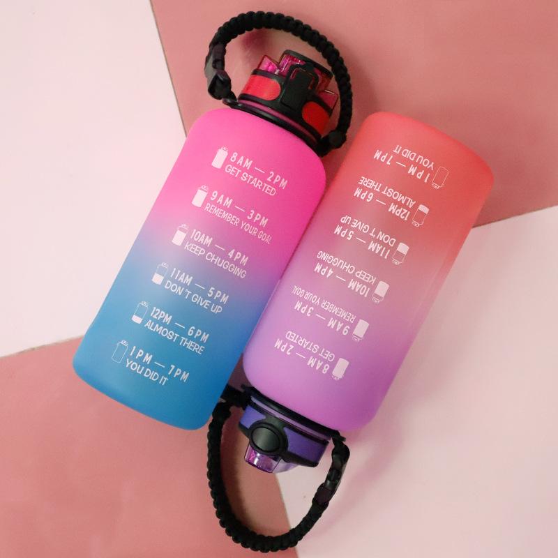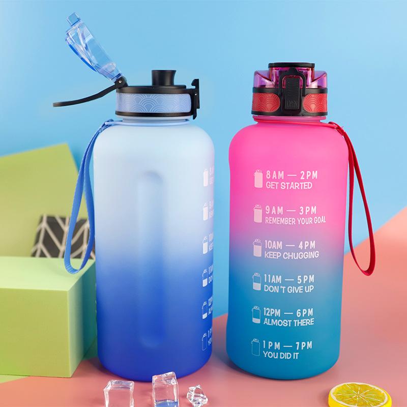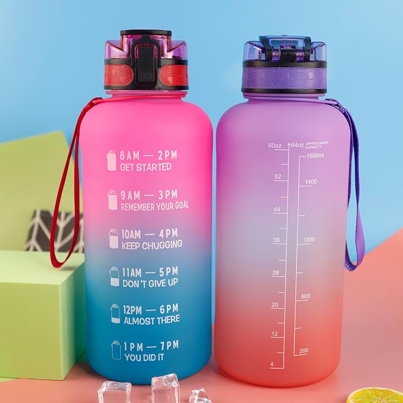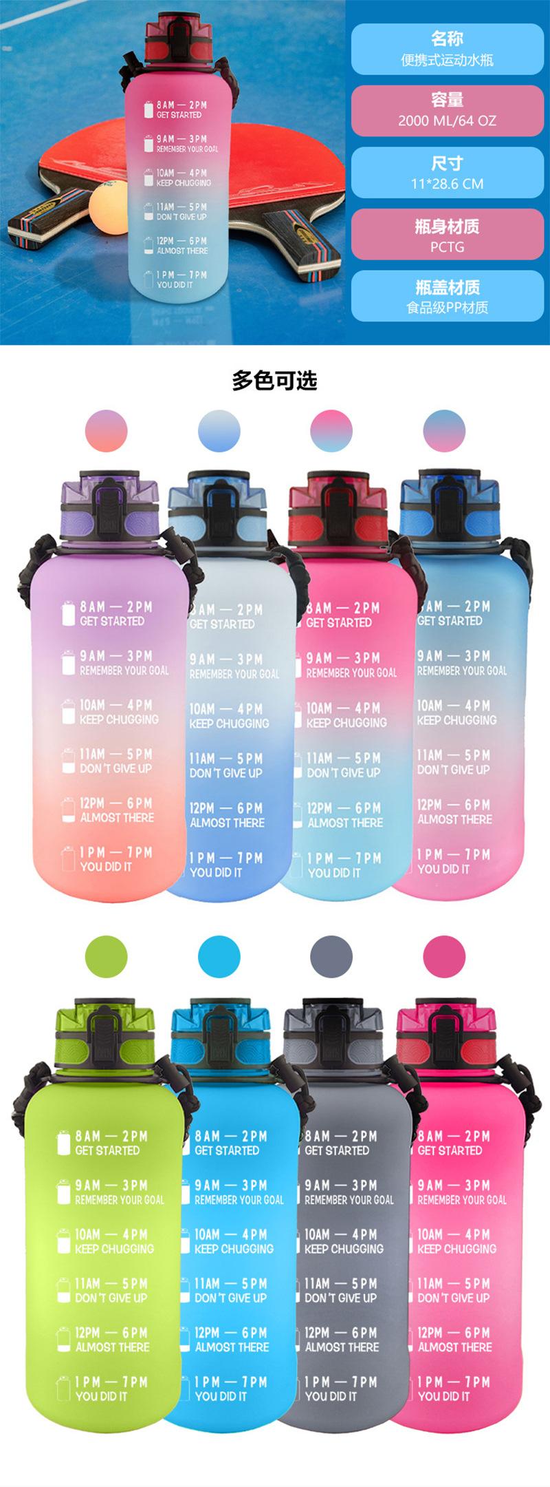 Hervidor Deportivo Gran Capacidad Lanyard Plástico Rebote Esmerilado Degradado Vaso de Agua Escala de Tiempo para Fitness Vaso Espacial Botella de Agua