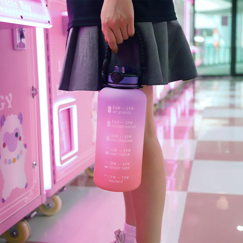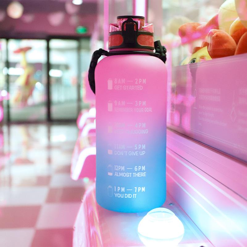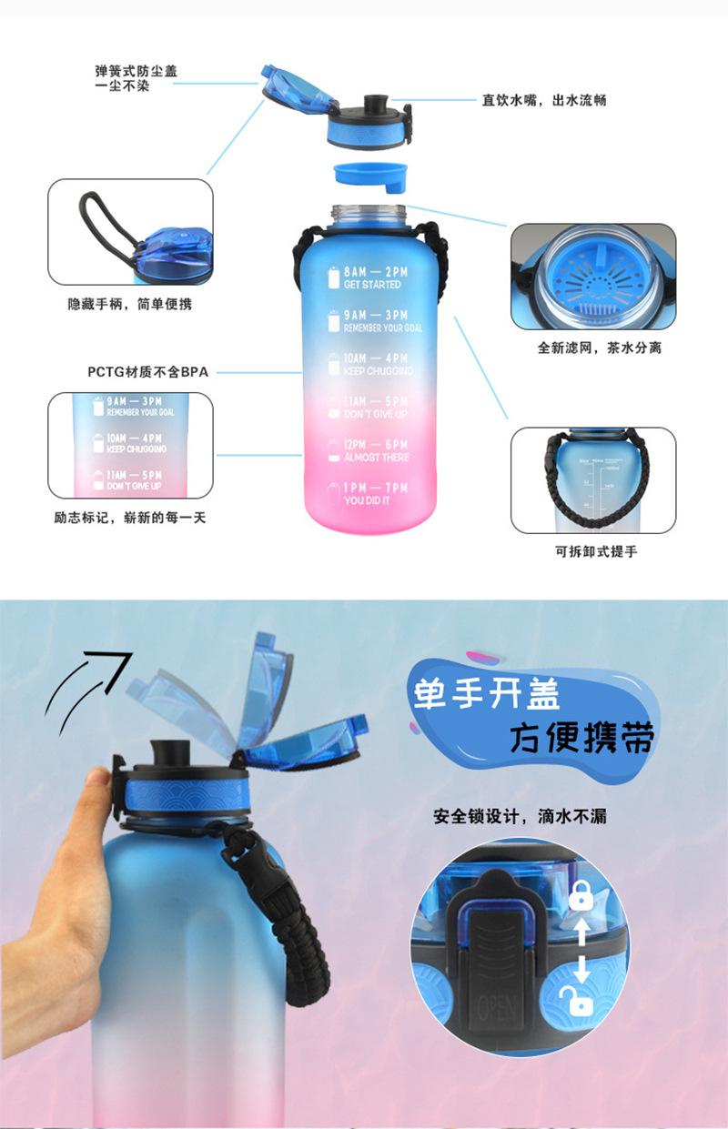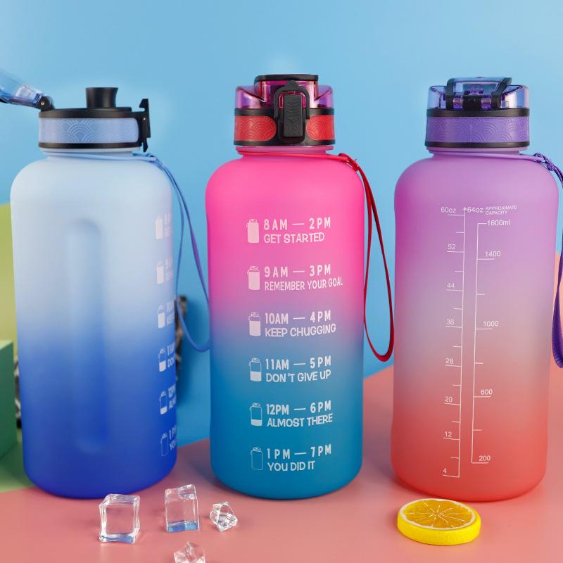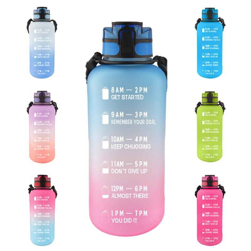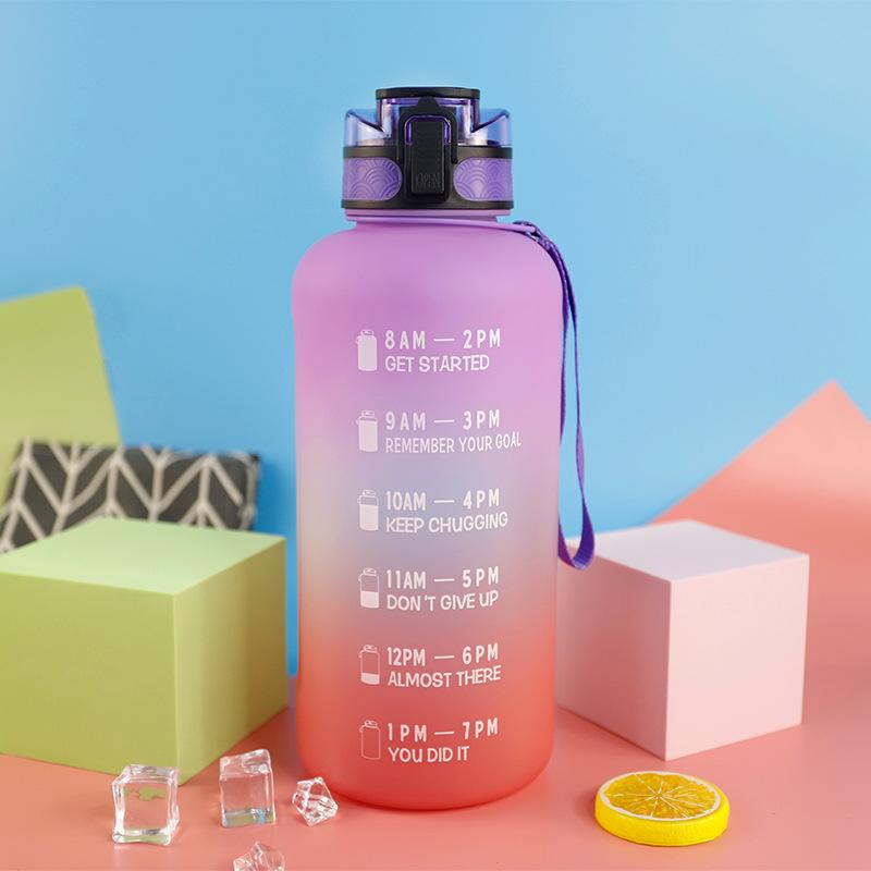 Hervidor Deportivo Gran Capacidad Lanyard Plástico Rebote Esmerilado Degradado Vaso de Agua Escala de Tiempo para Fitness Vaso Espacial Botella de Agua