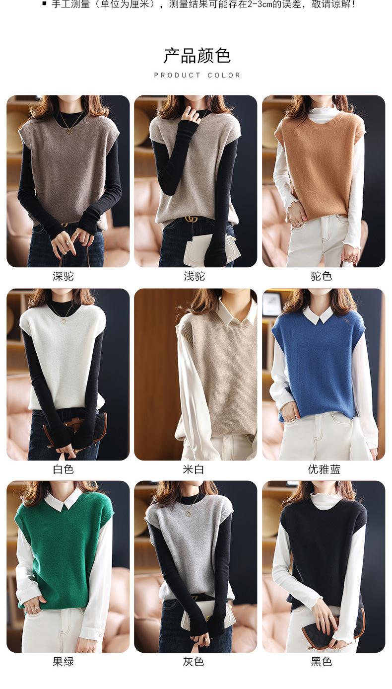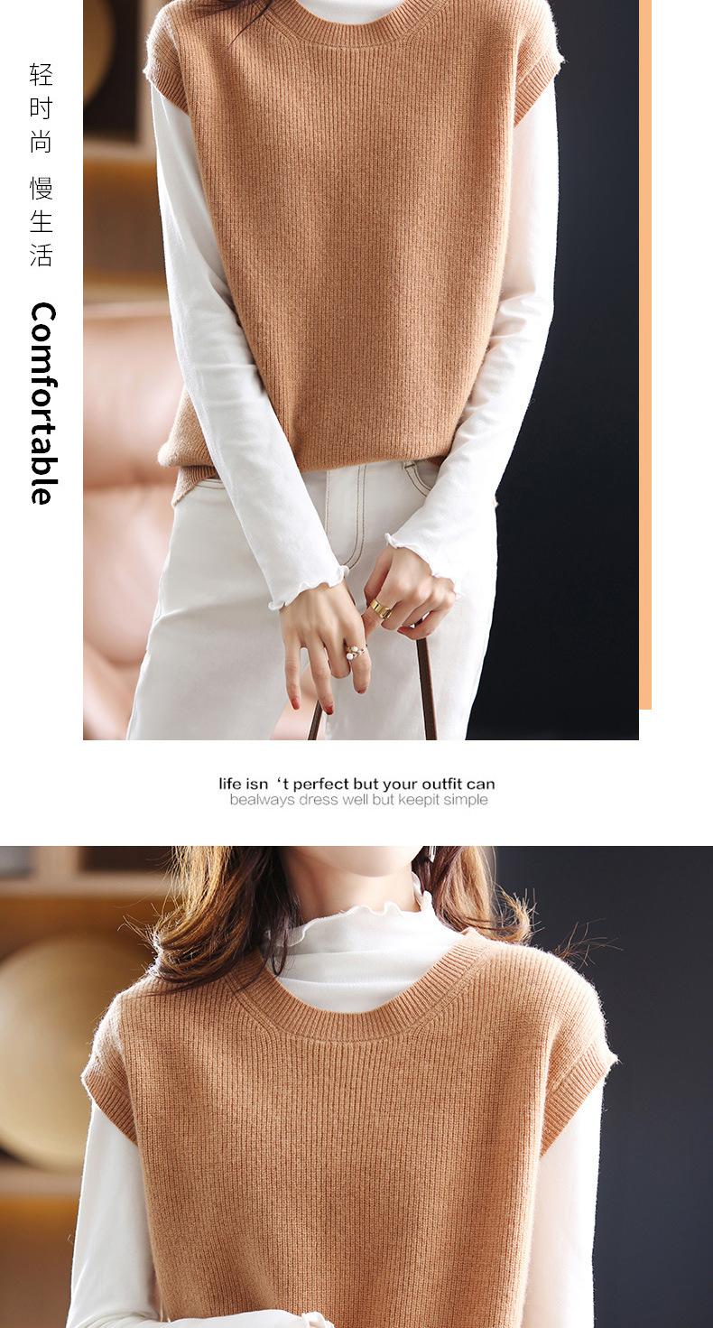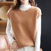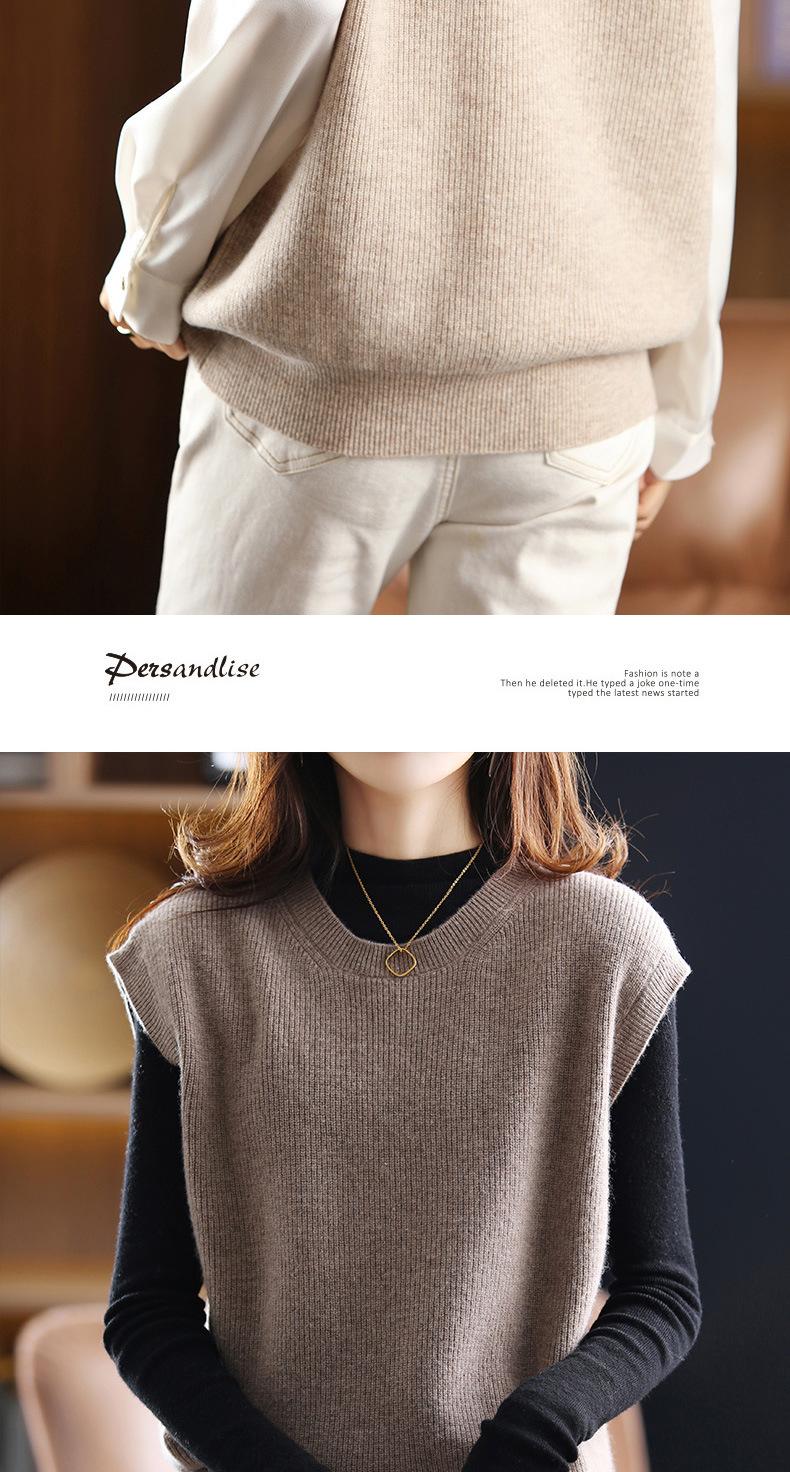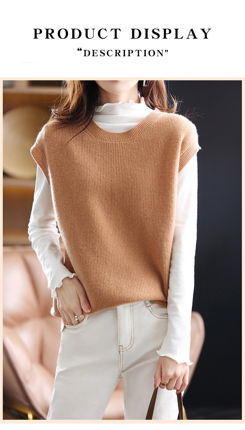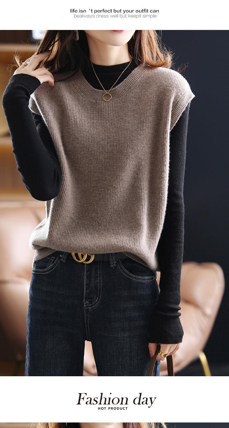 Chaleco de Otoño e Invierno para Mujer Chaleco Tejido de Lana Pura Camiseta Base Suéter sin Mangas Jersey Suelto Cuello Redondo Cachemira Chaleco
