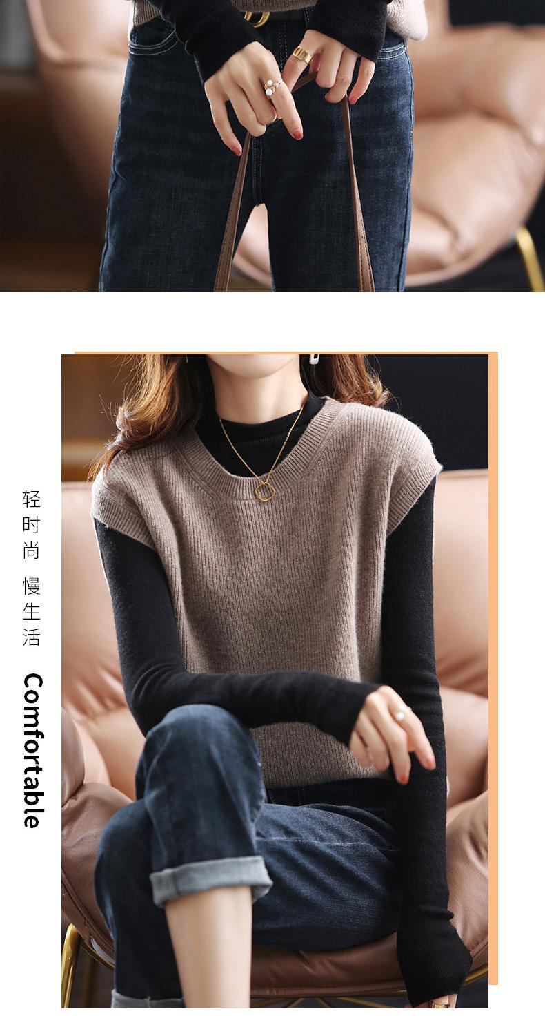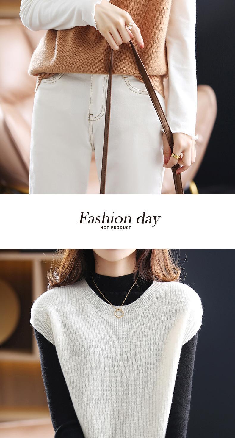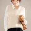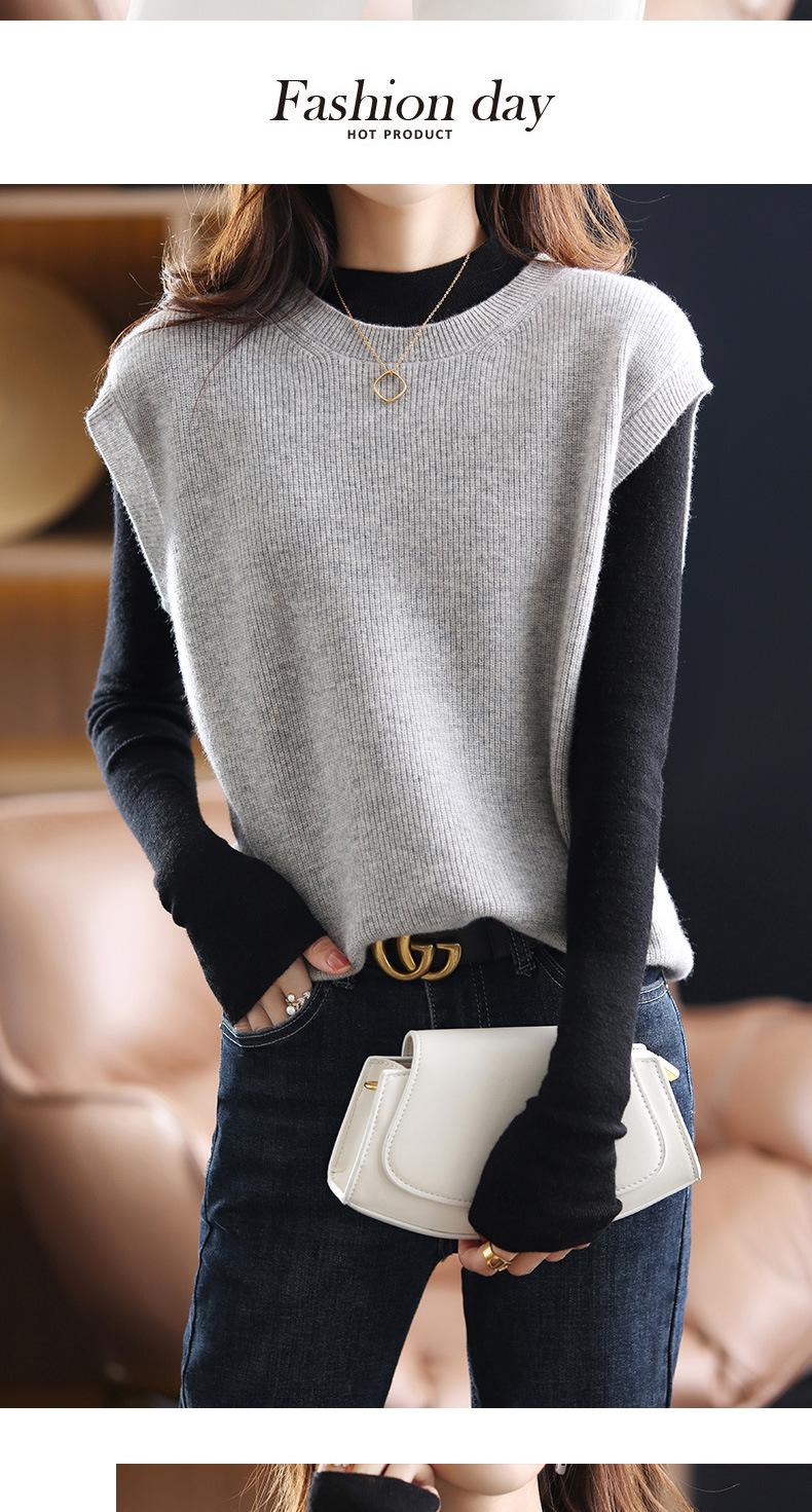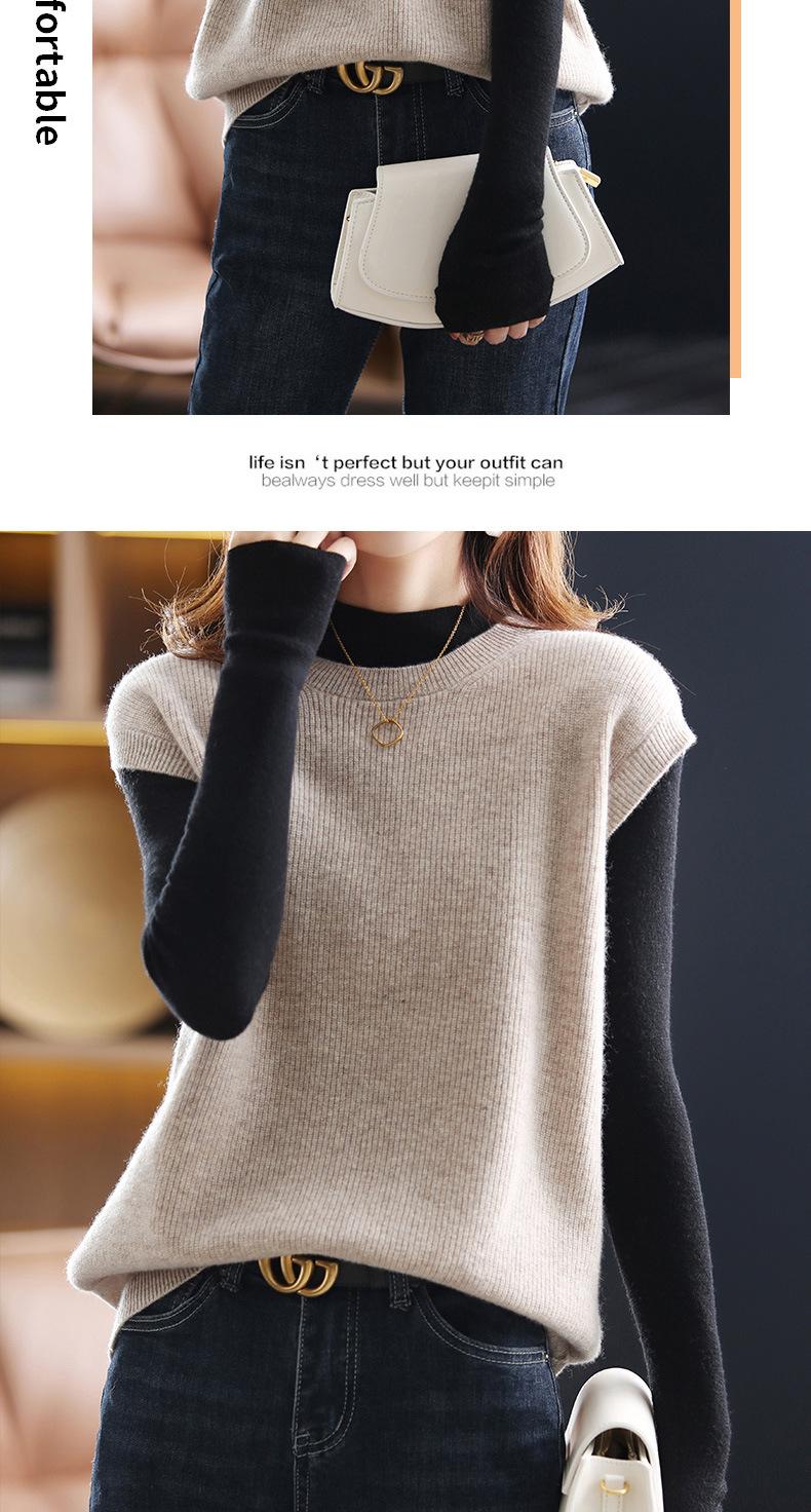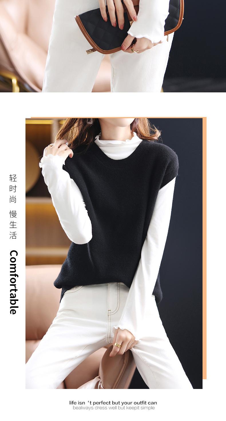 Chaleco de Otoño e Invierno para Mujer Chaleco Tejido de Lana Pura Camiseta Base Suéter sin Mangas Jersey Suelto Cuello Redondo Cachemira Chaleco