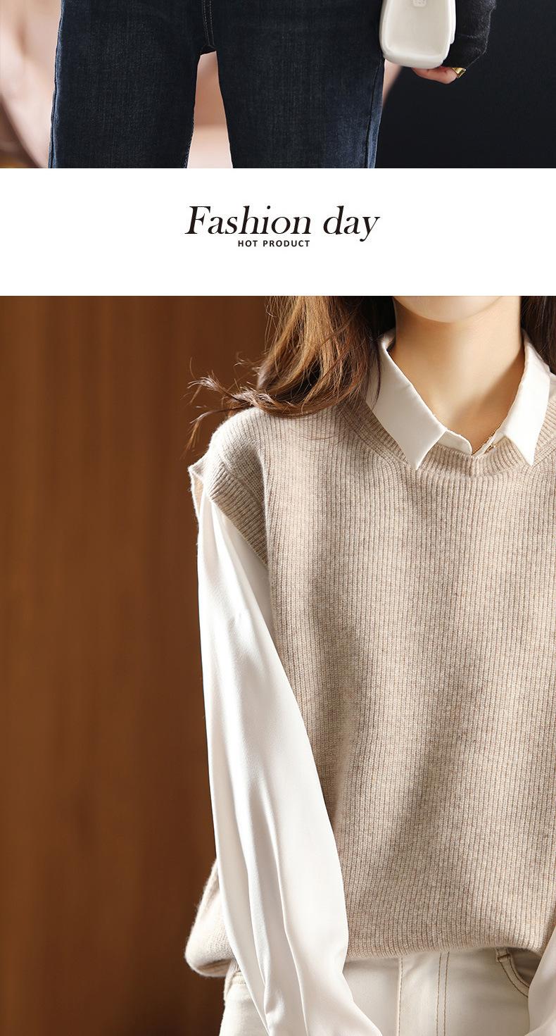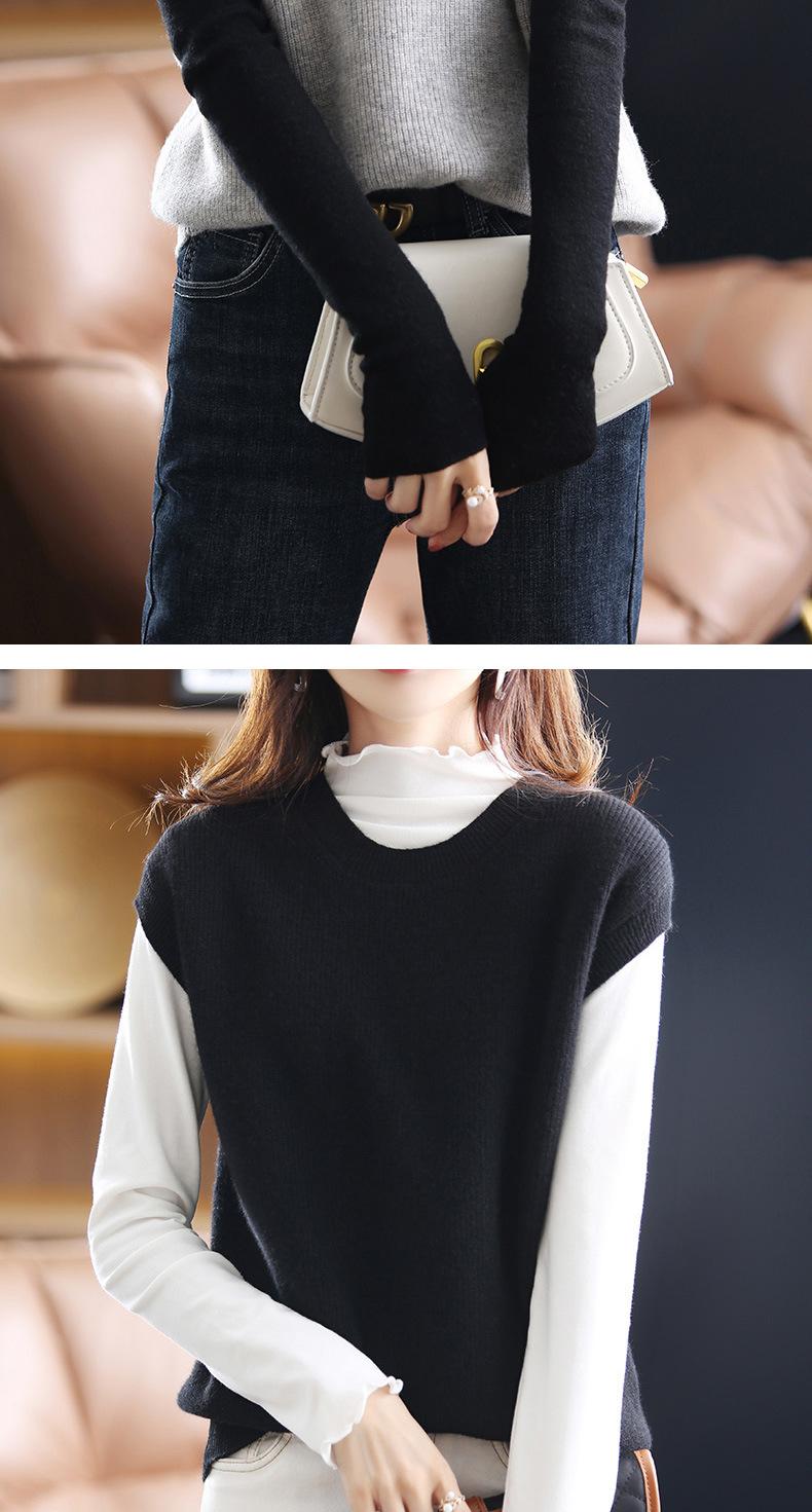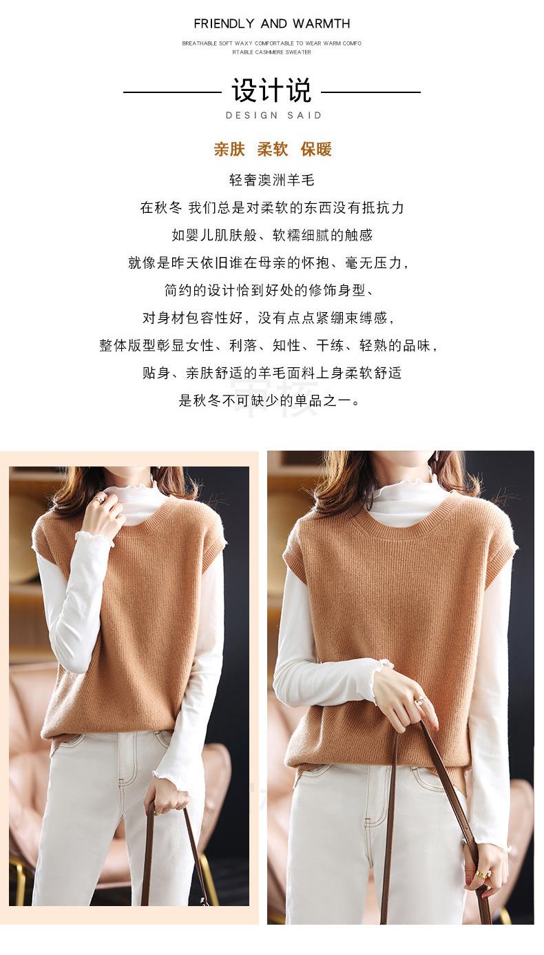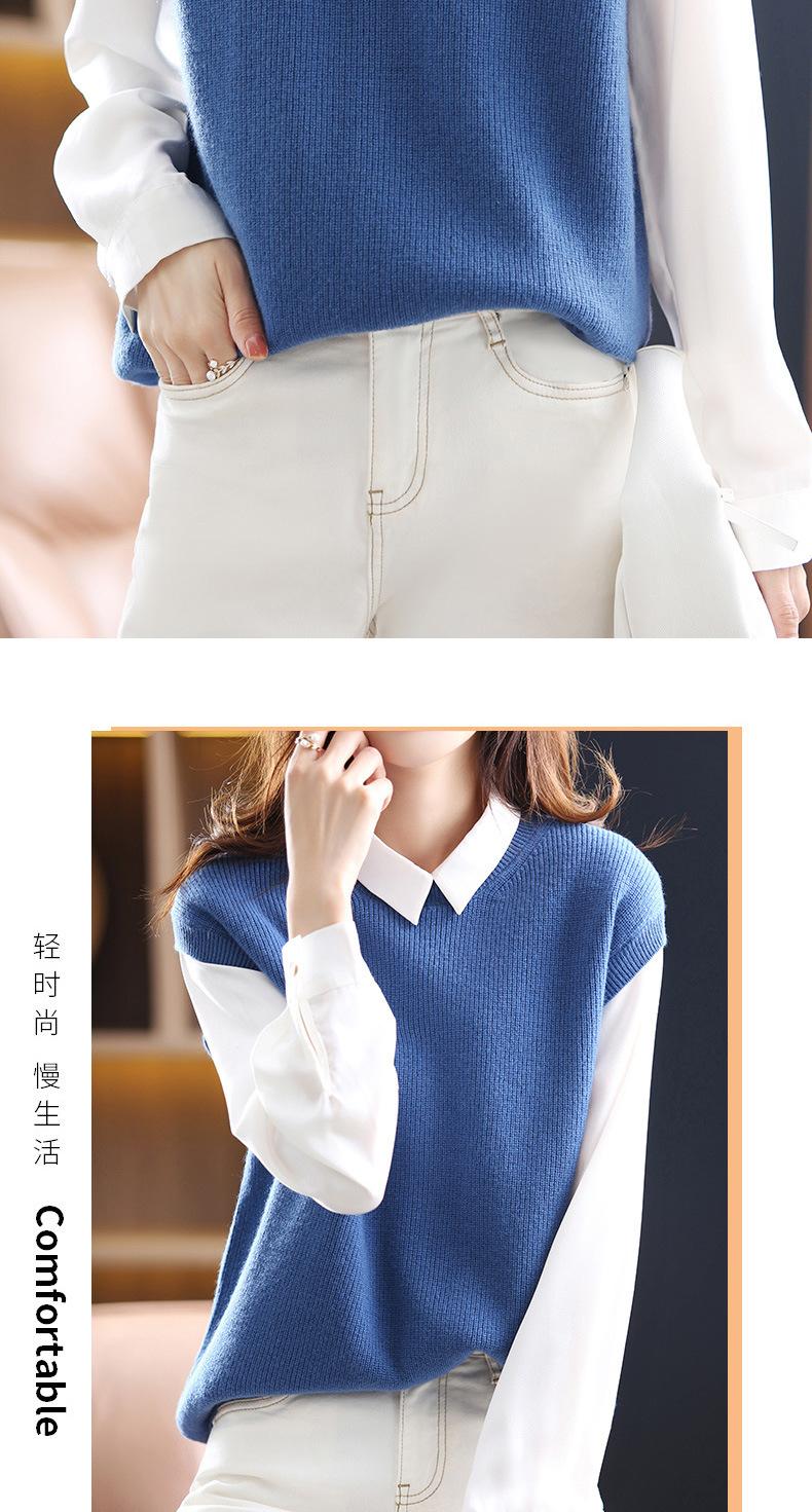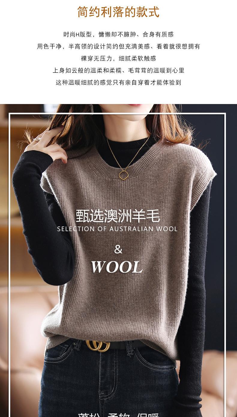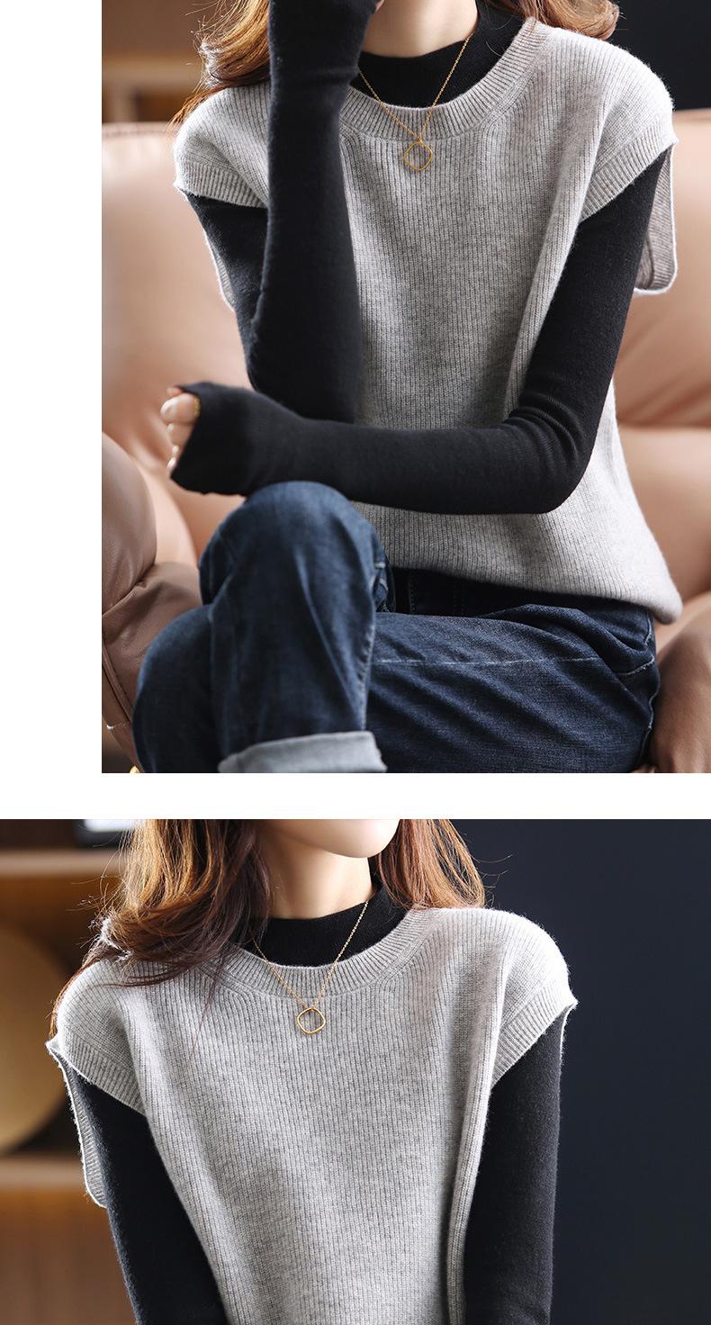 Chaleco de Otoño e Invierno para Mujer Chaleco Tejido de Lana Pura Camiseta Base Suéter sin Mangas Jersey Suelto Cuello Redondo Cachemira Chaleco