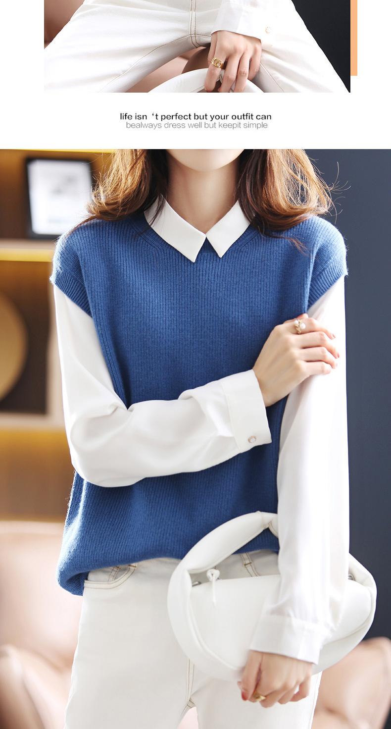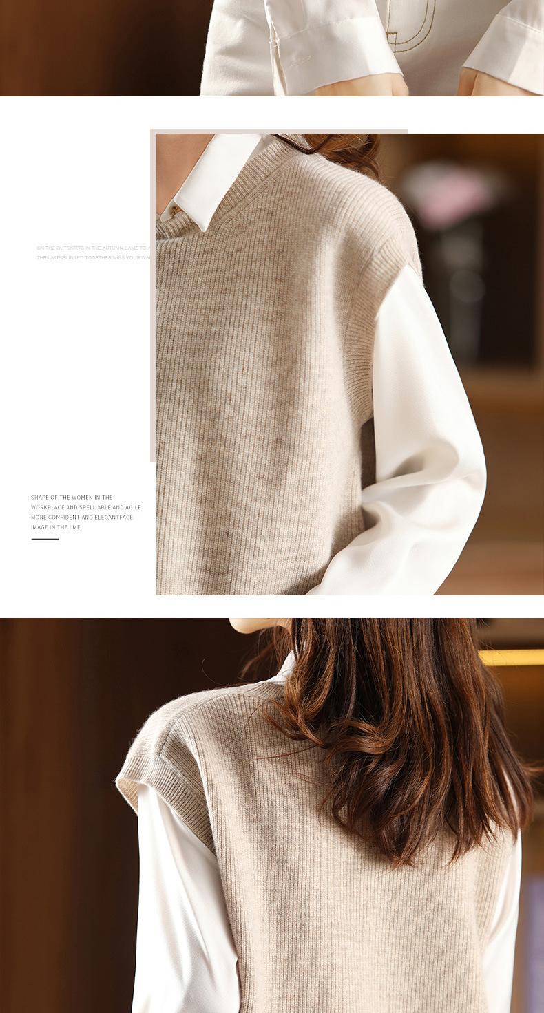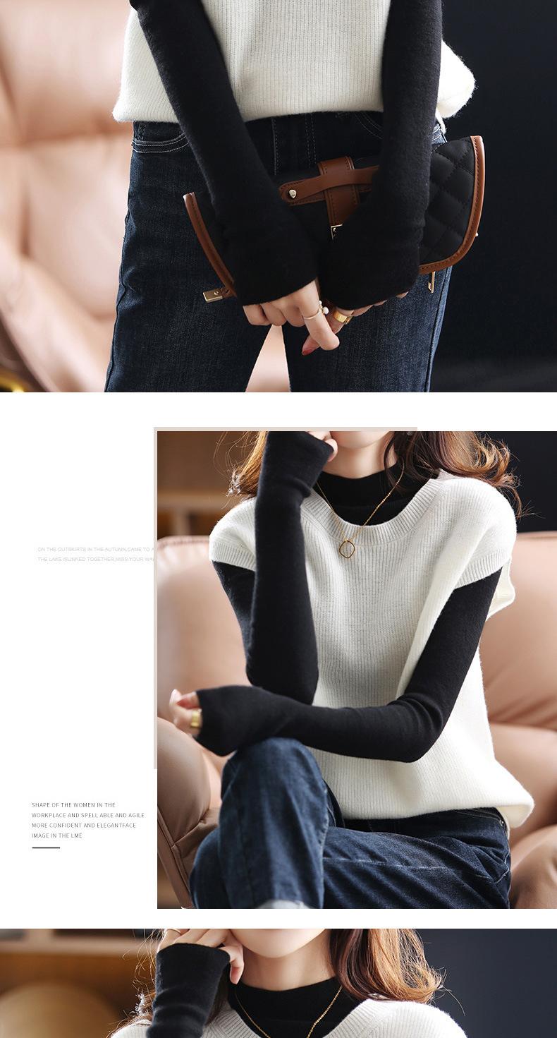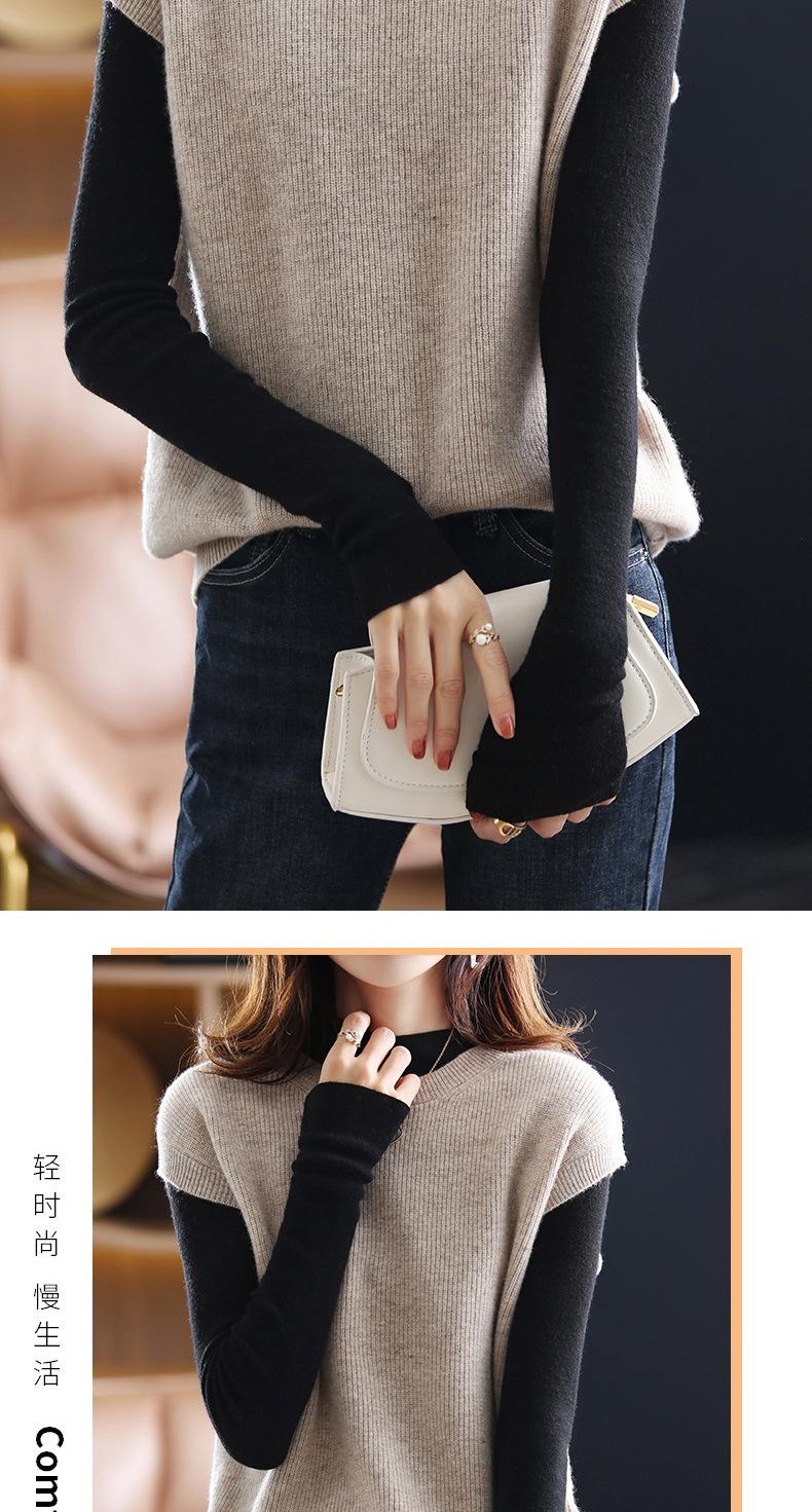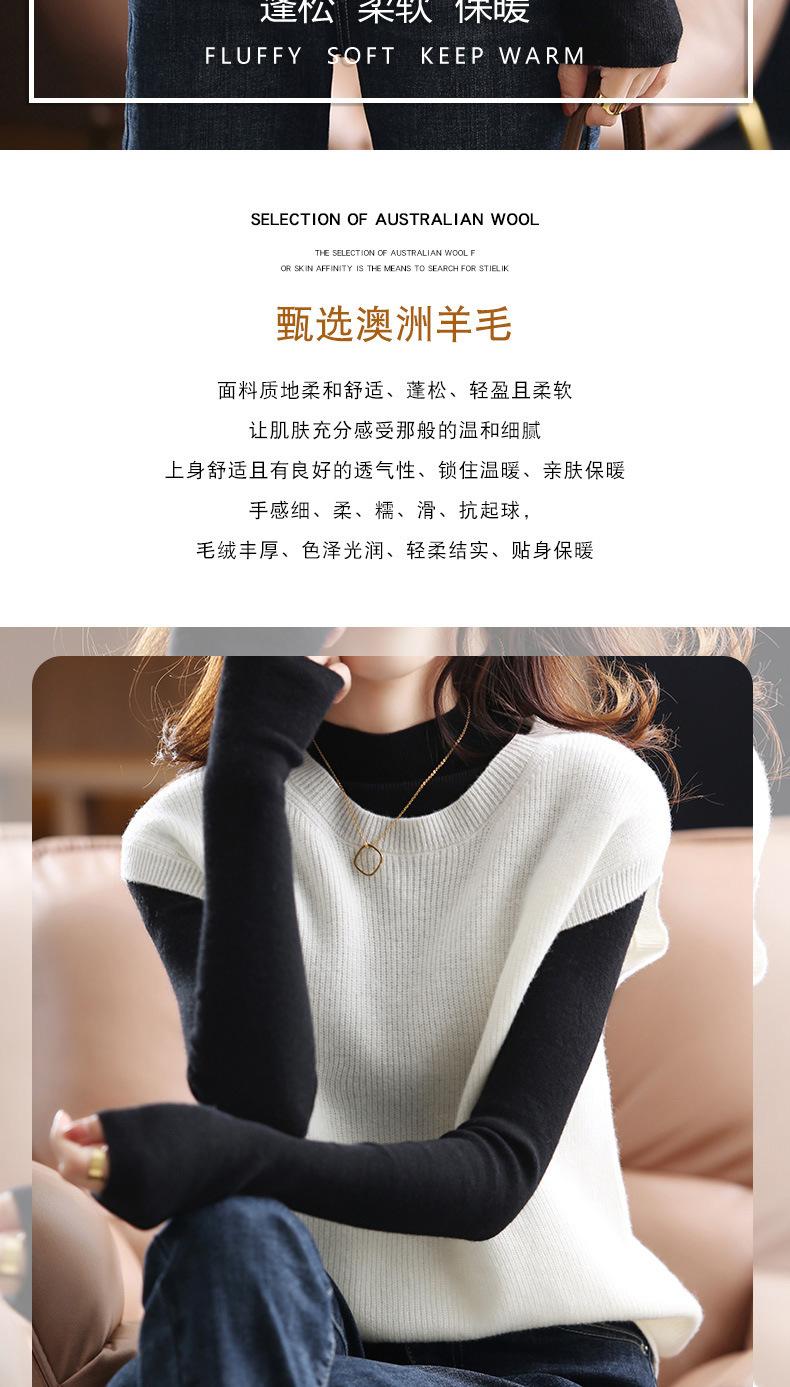 Chaleco de Otoño e Invierno para Mujer Chaleco Tejido de Lana Pura Camiseta Base Suéter sin Mangas Jersey Suelto Cuello Redondo Cachemira Chaleco