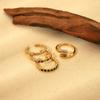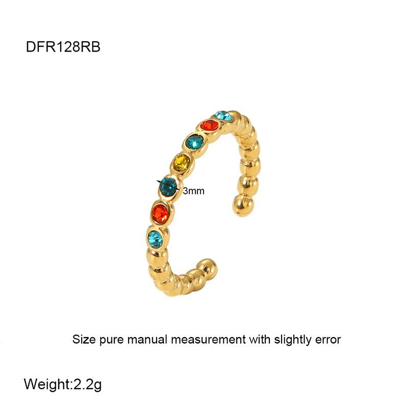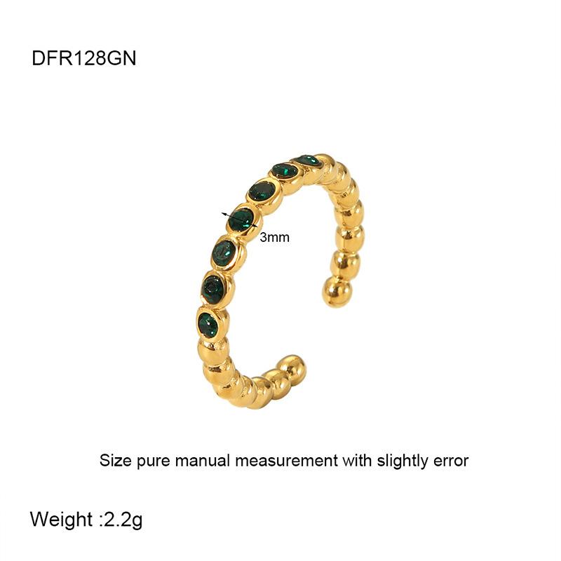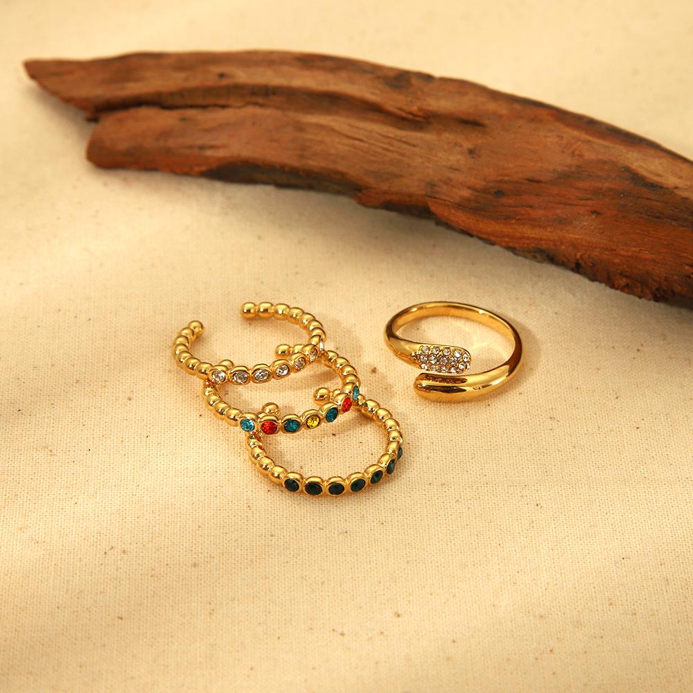 Anillo de Cuentas de Acero Inoxidable Chapado con Diseño Nicho Estilo INS, Combinable, con Zircón Blanco Verde Incrustado, Anillo Abierto Cruzado para Mujer