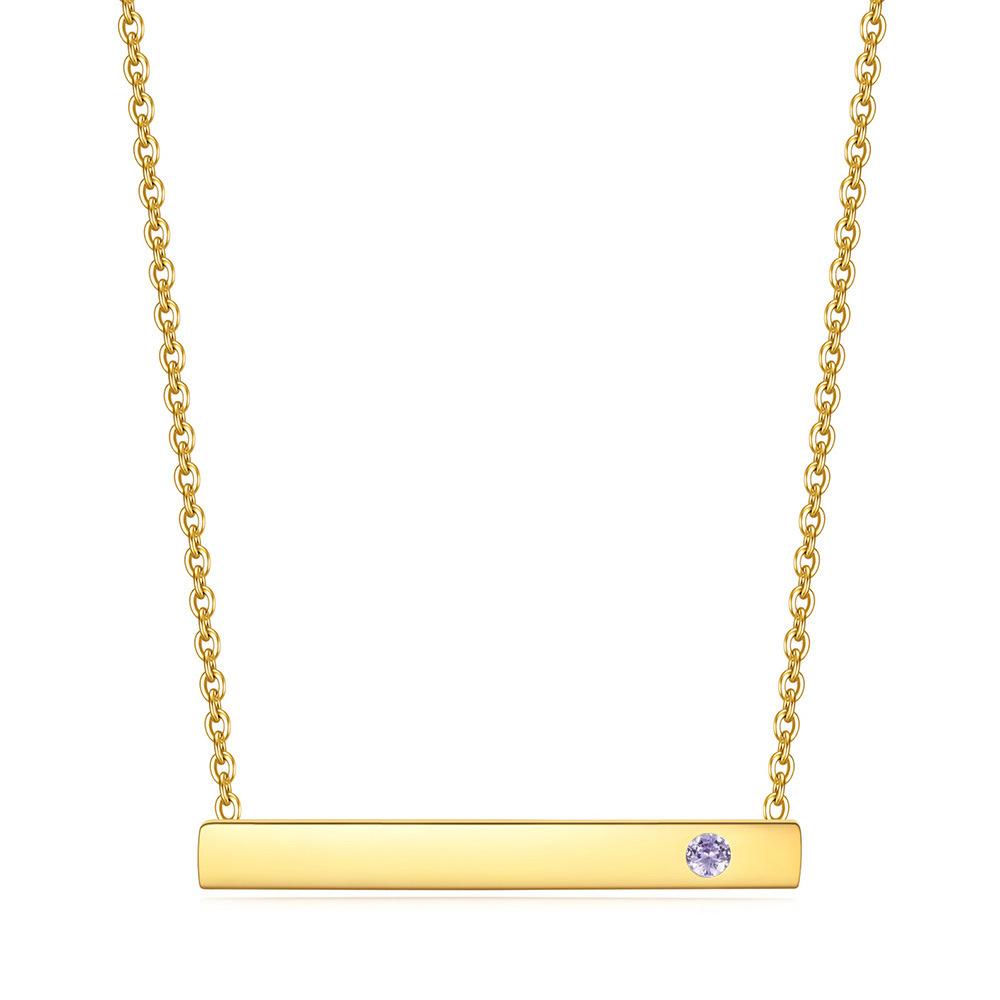 Collar de cadena de clavícula de oro de 18 quilates con diamante rectangular y piedra de cumpleaños de diciembre transfronterizo europeo y americano con logotipo láser
