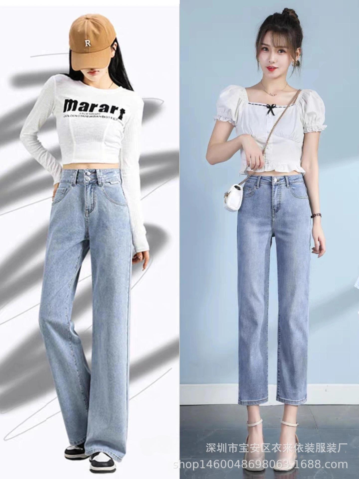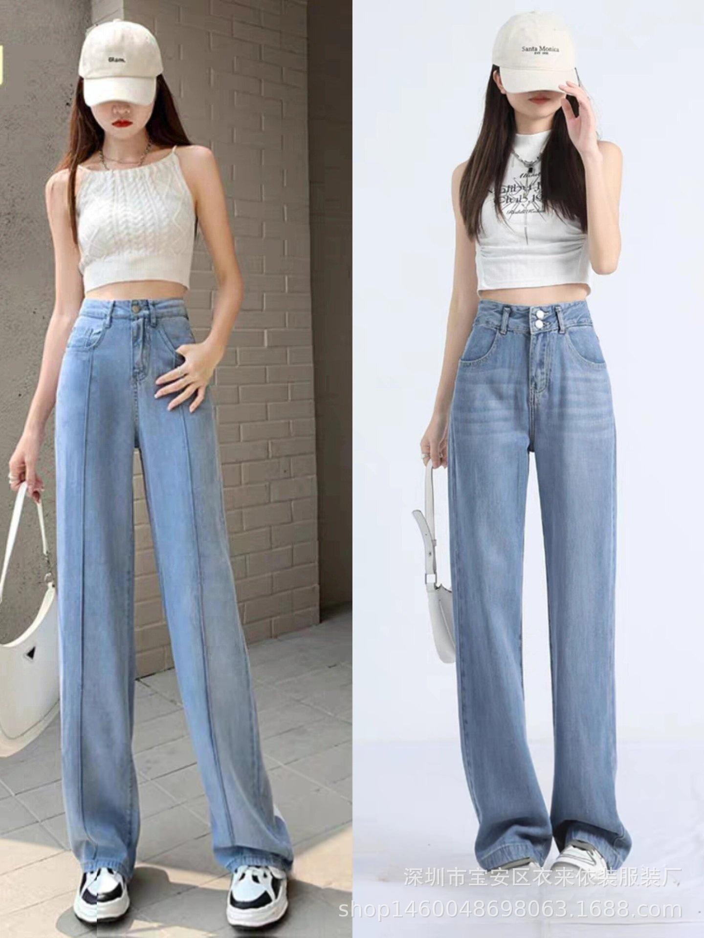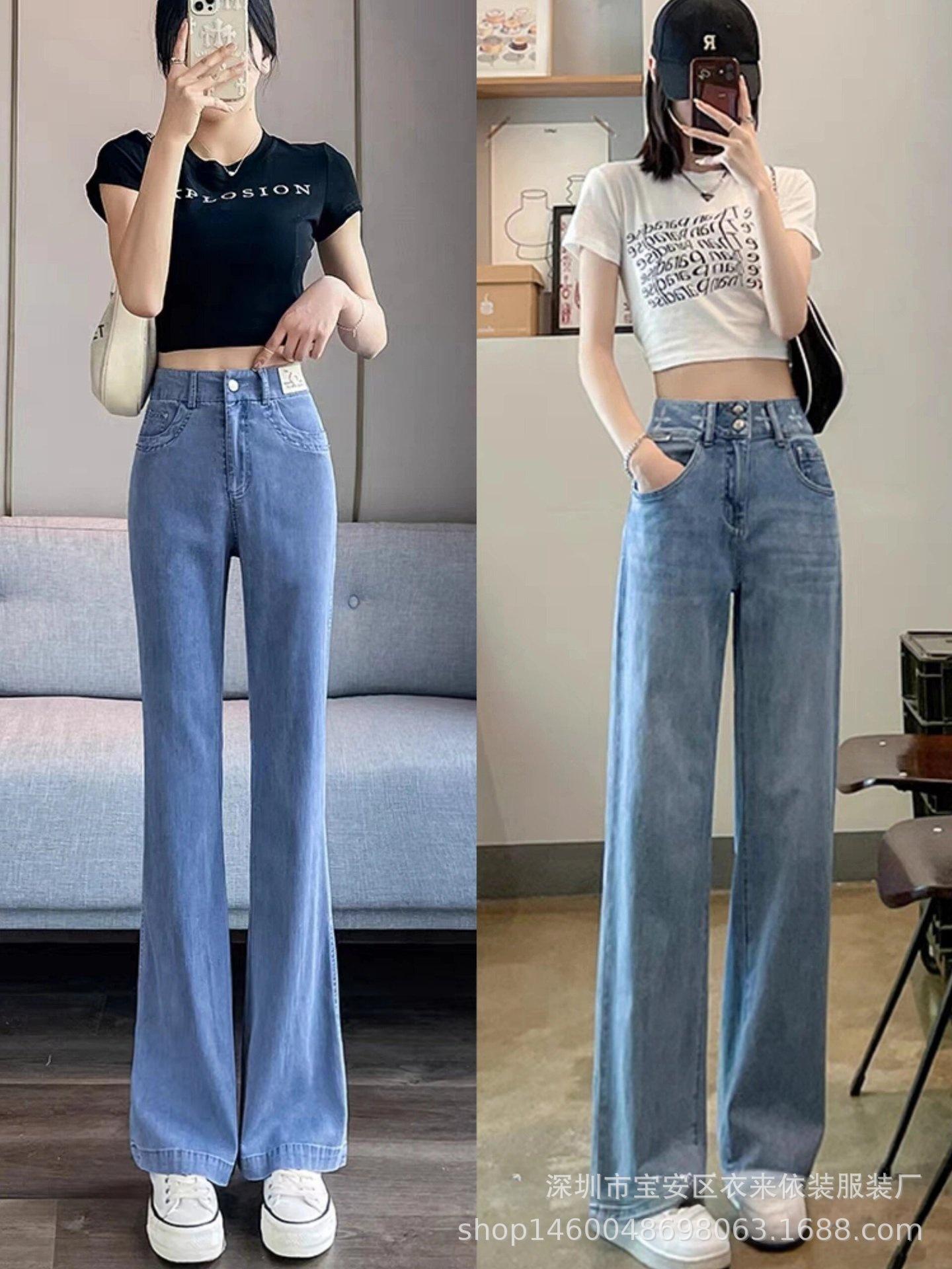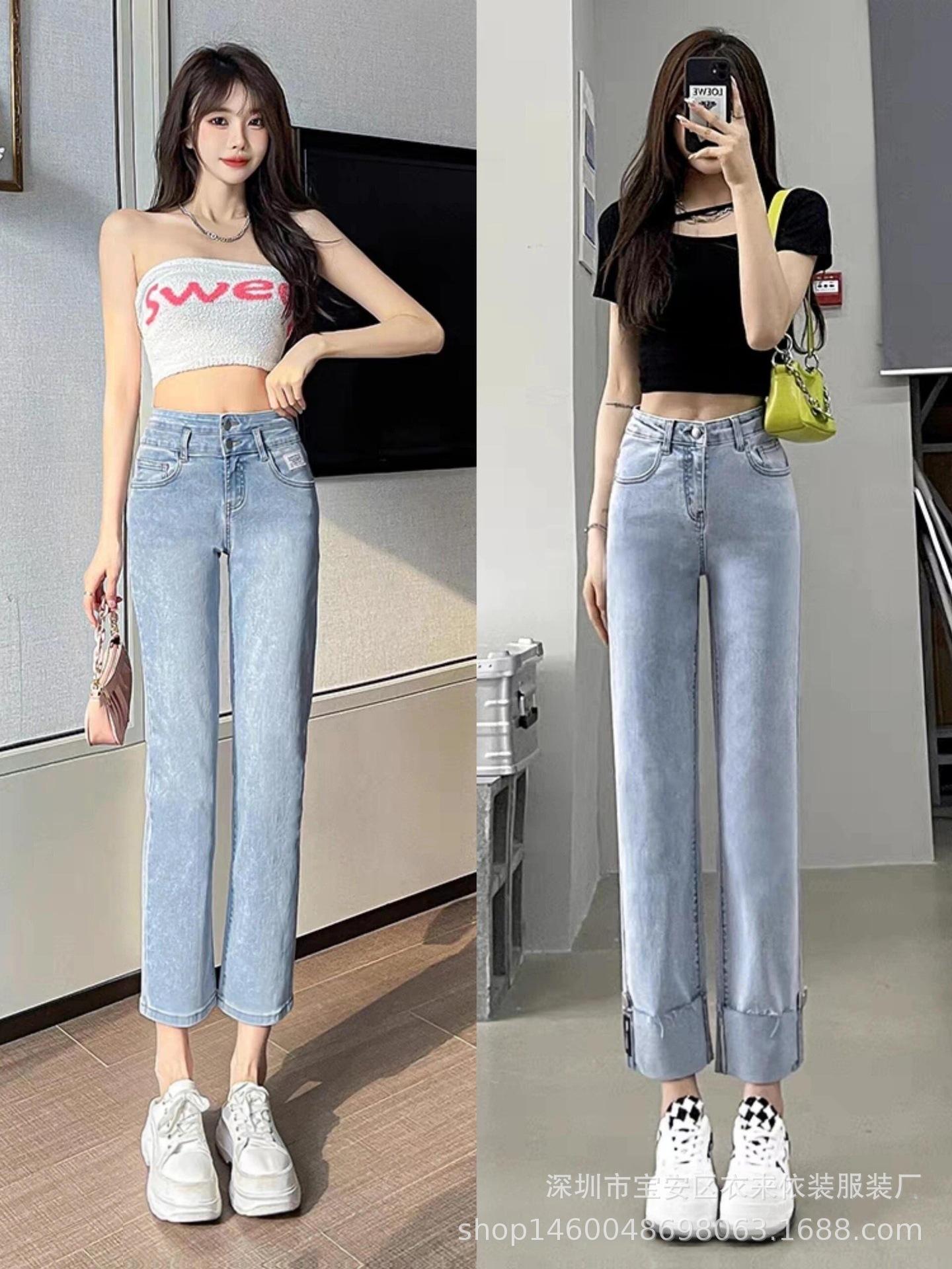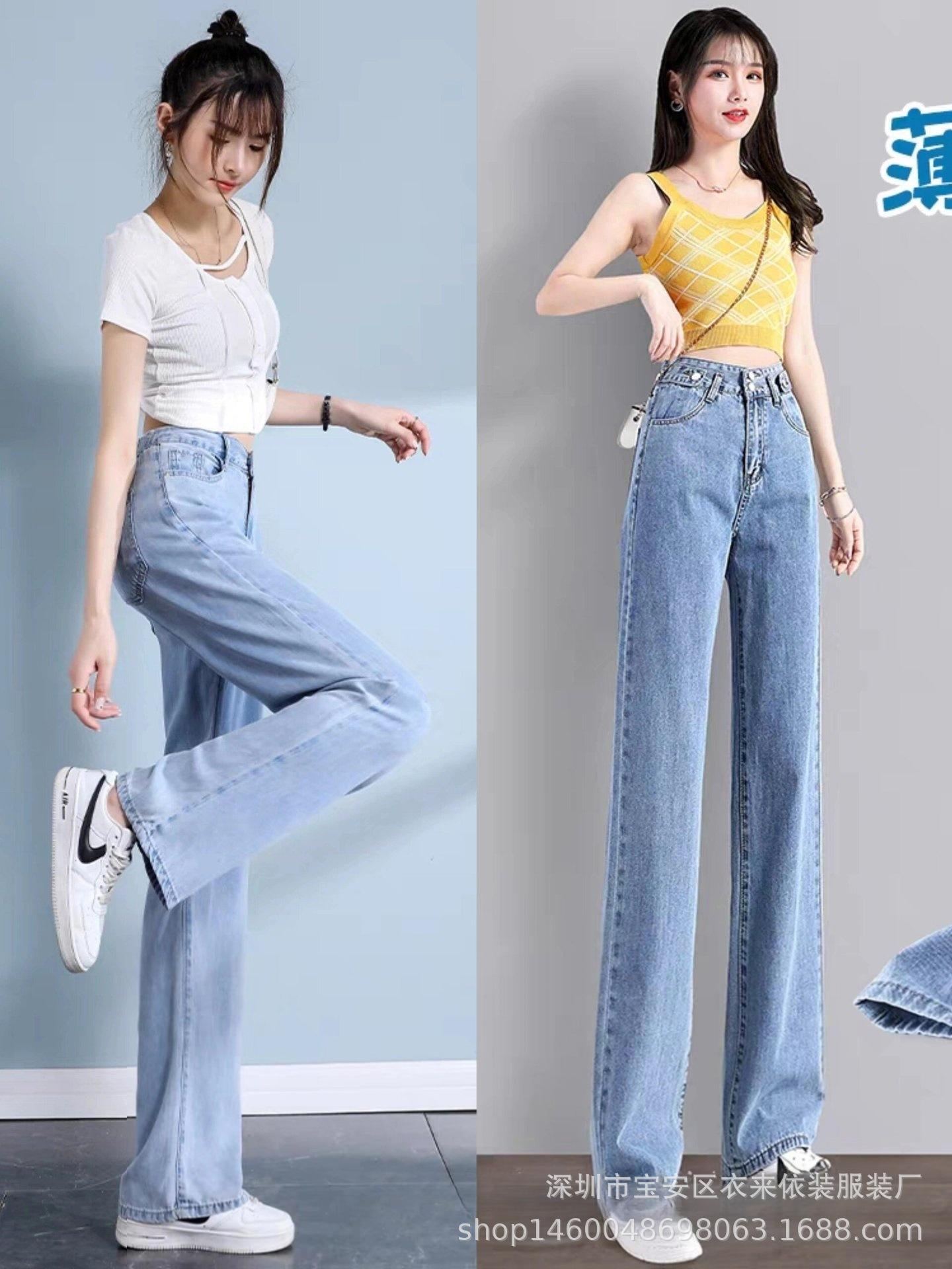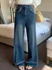 Vaqueros de cintura alta y pierna ancha para mujer, de verano, finos, adelgazantes, rectos, informales, con aberturas.