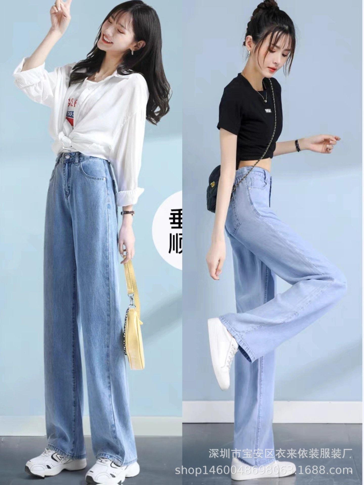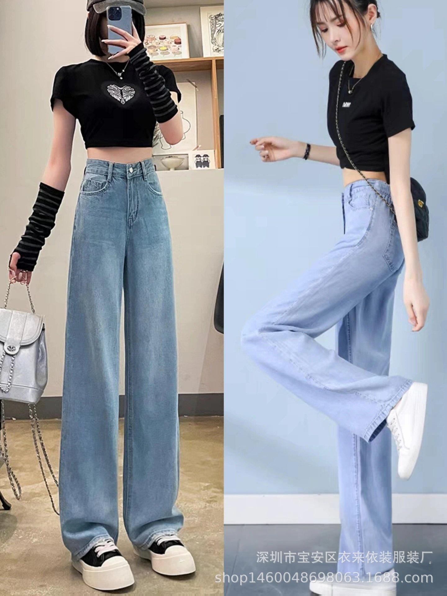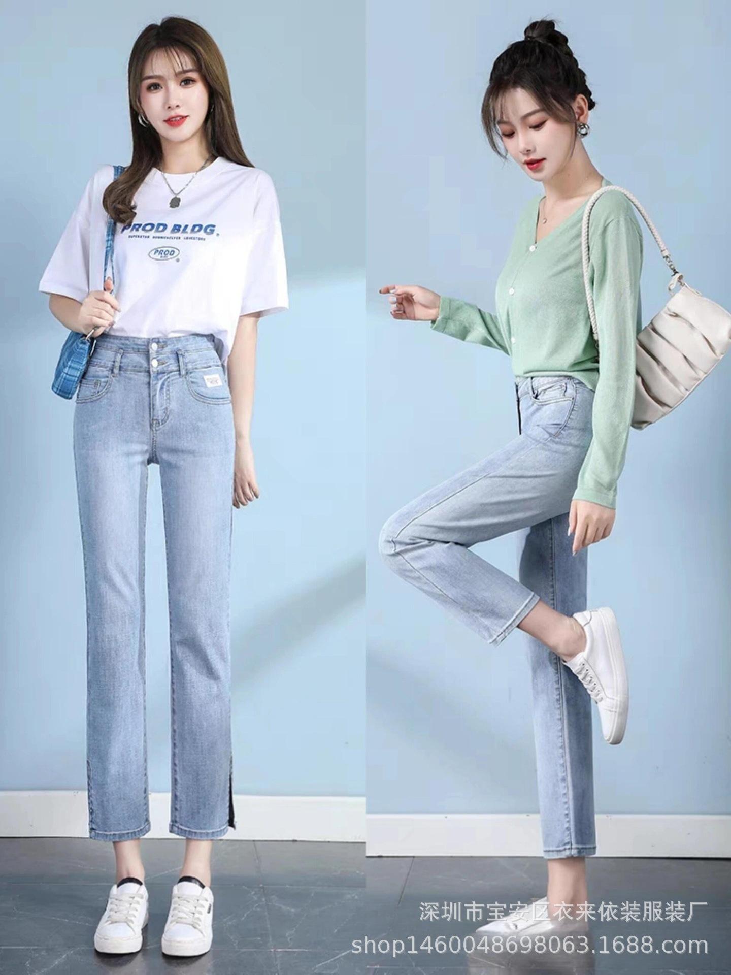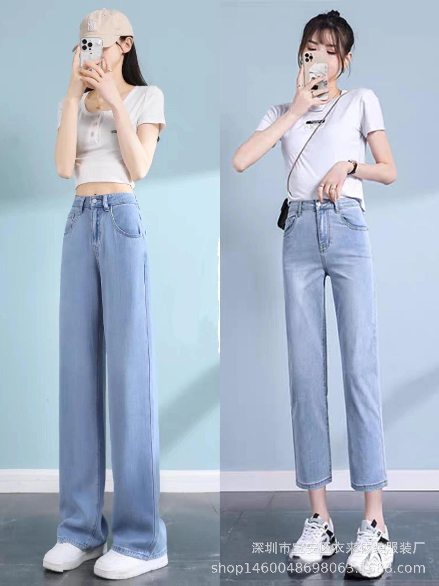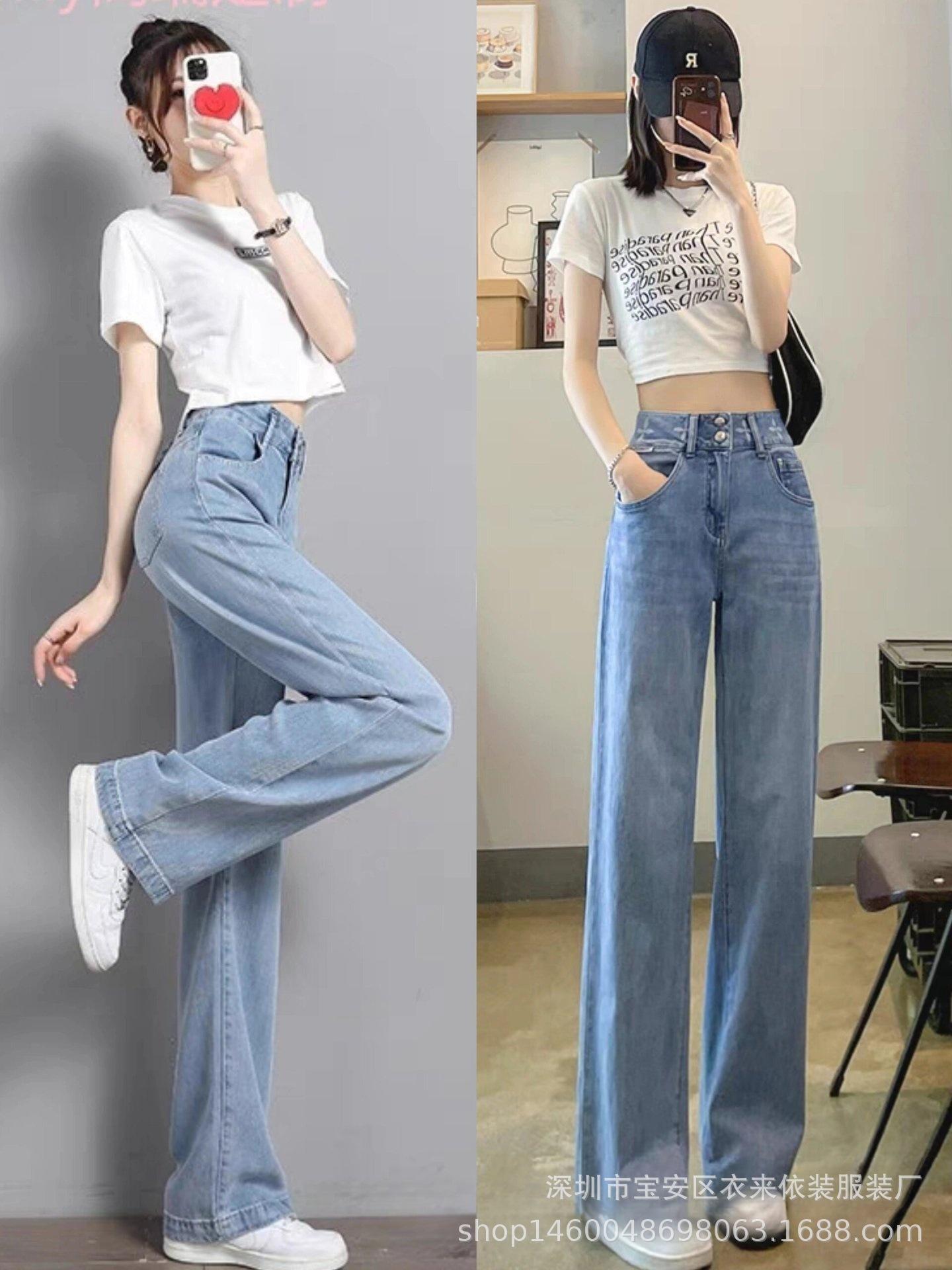 Vaqueros de cintura alta y pierna ancha para mujer, de verano, finos, adelgazantes, rectos, informales, con aberturas.