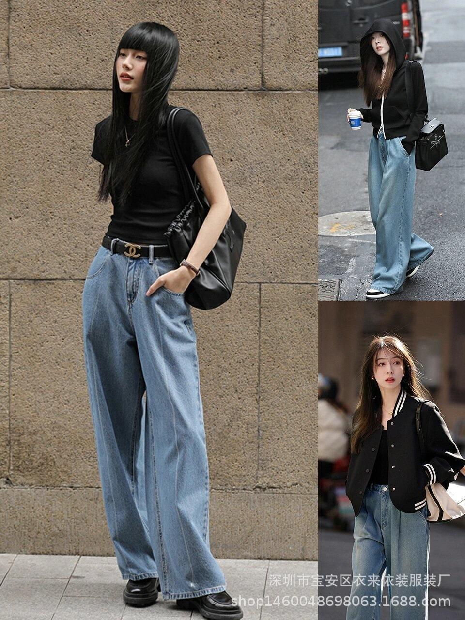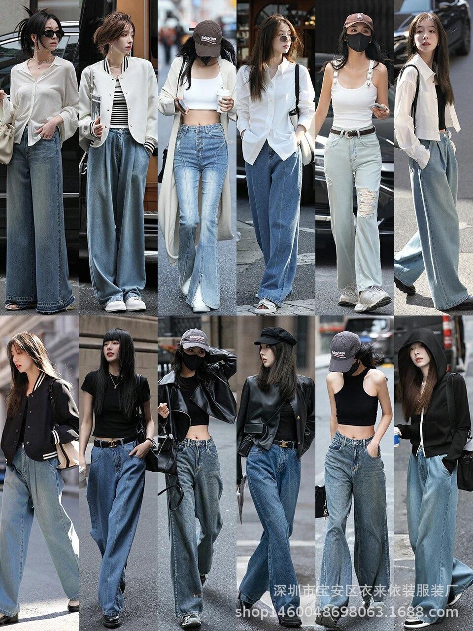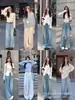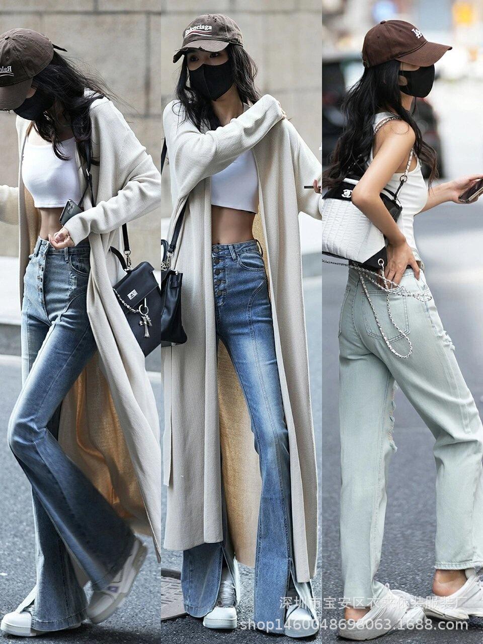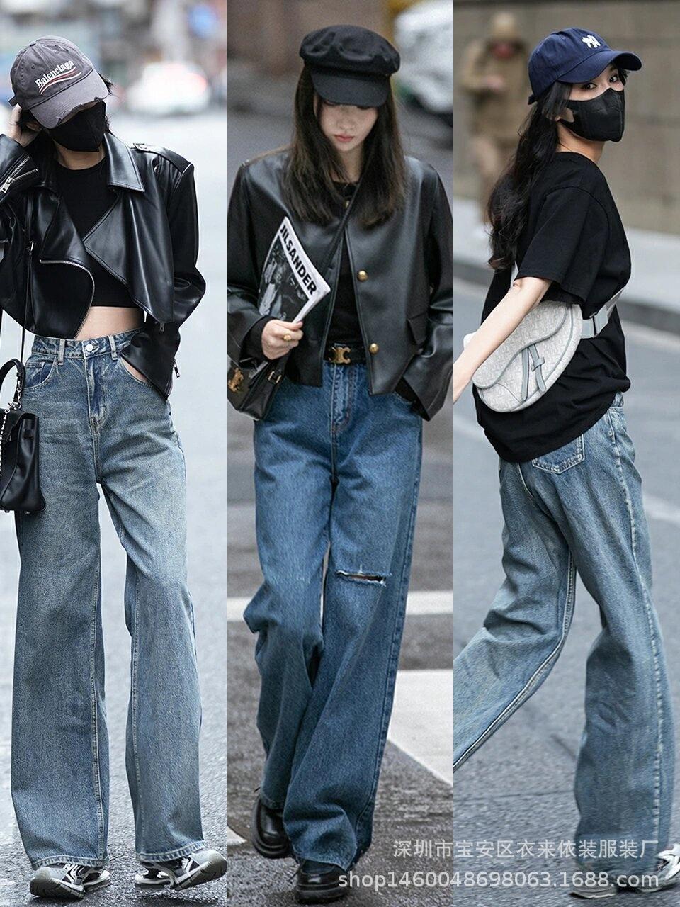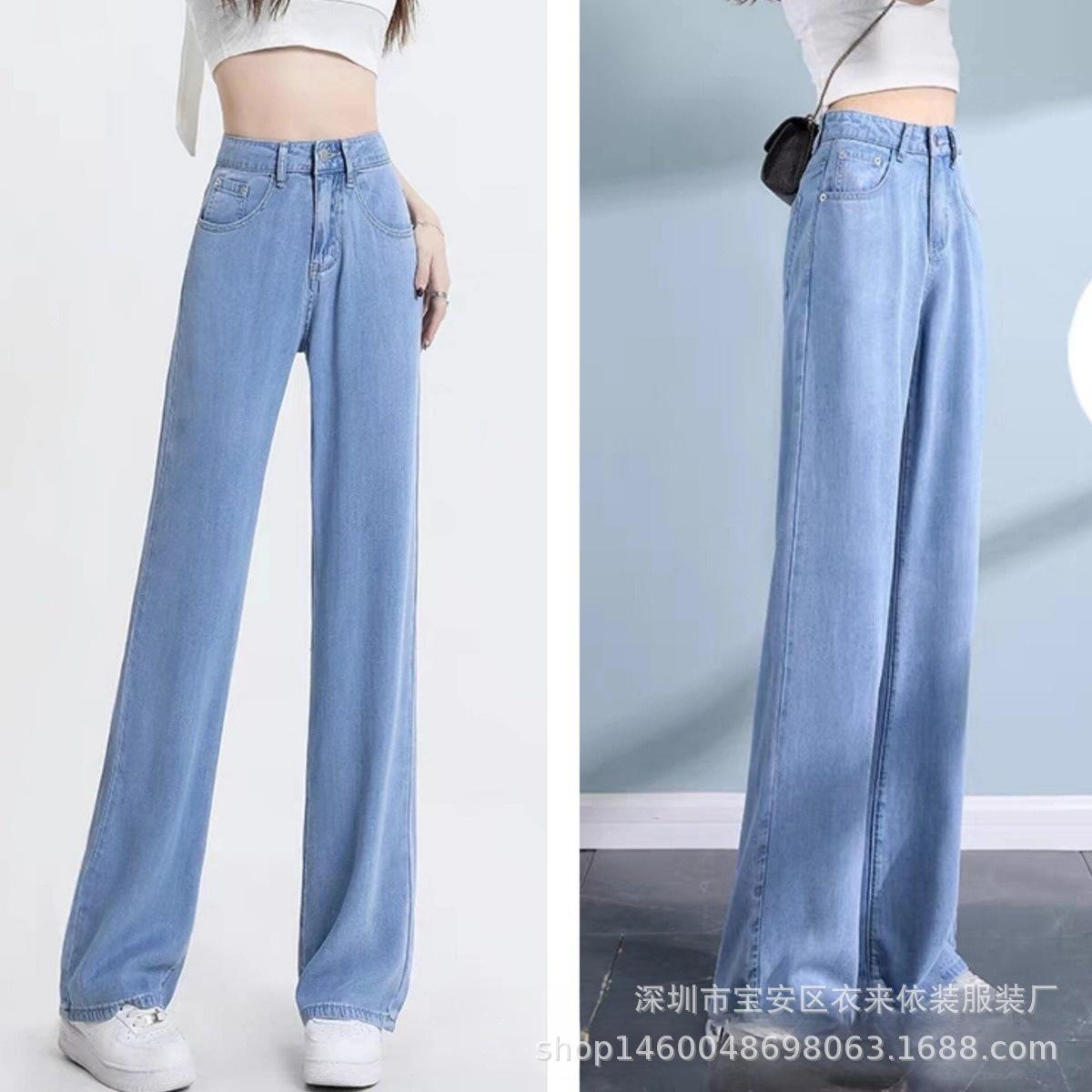 Vaqueros de cintura alta y pierna ancha para mujer, de verano, finos, adelgazantes, rectos, informales, con aberturas.