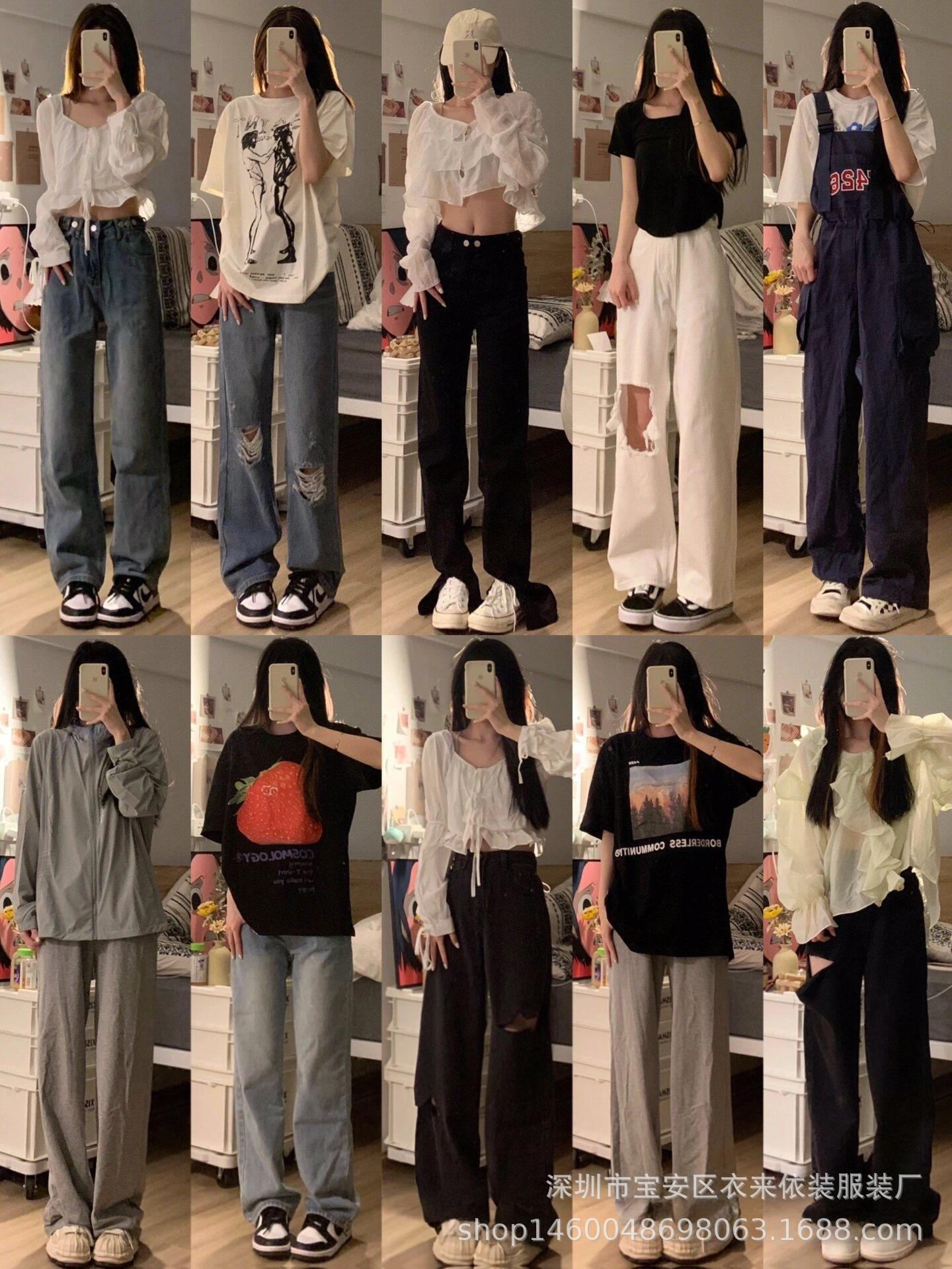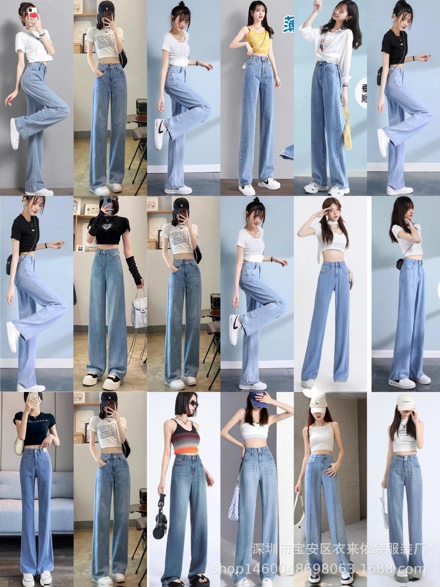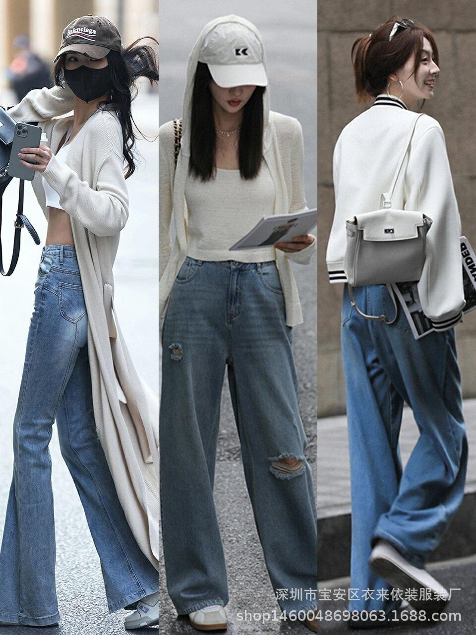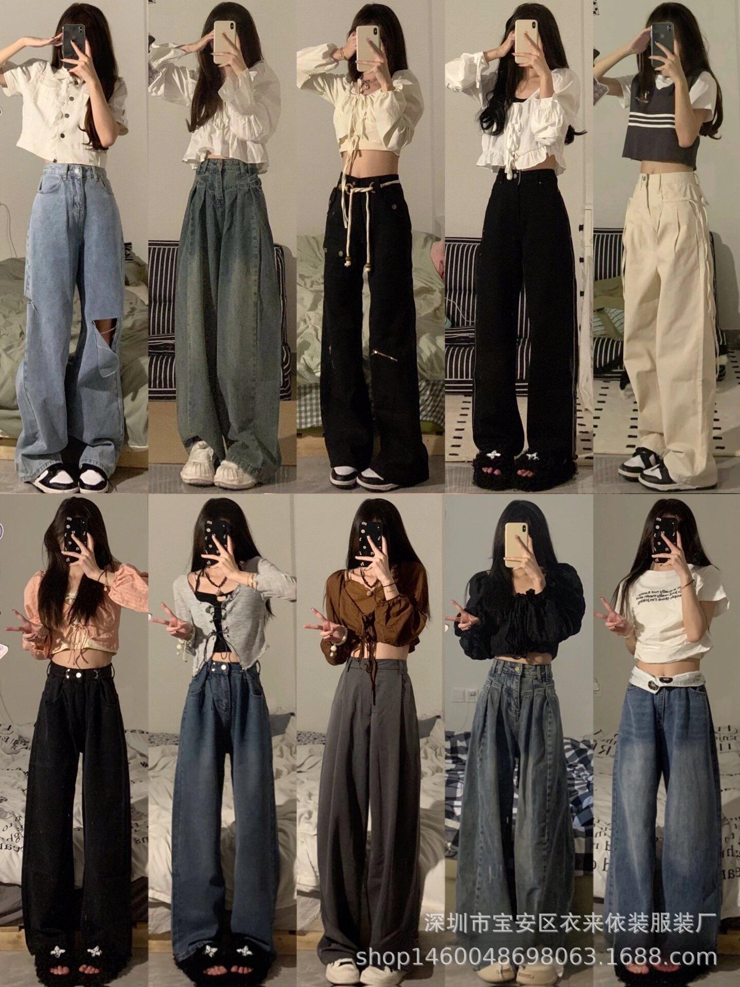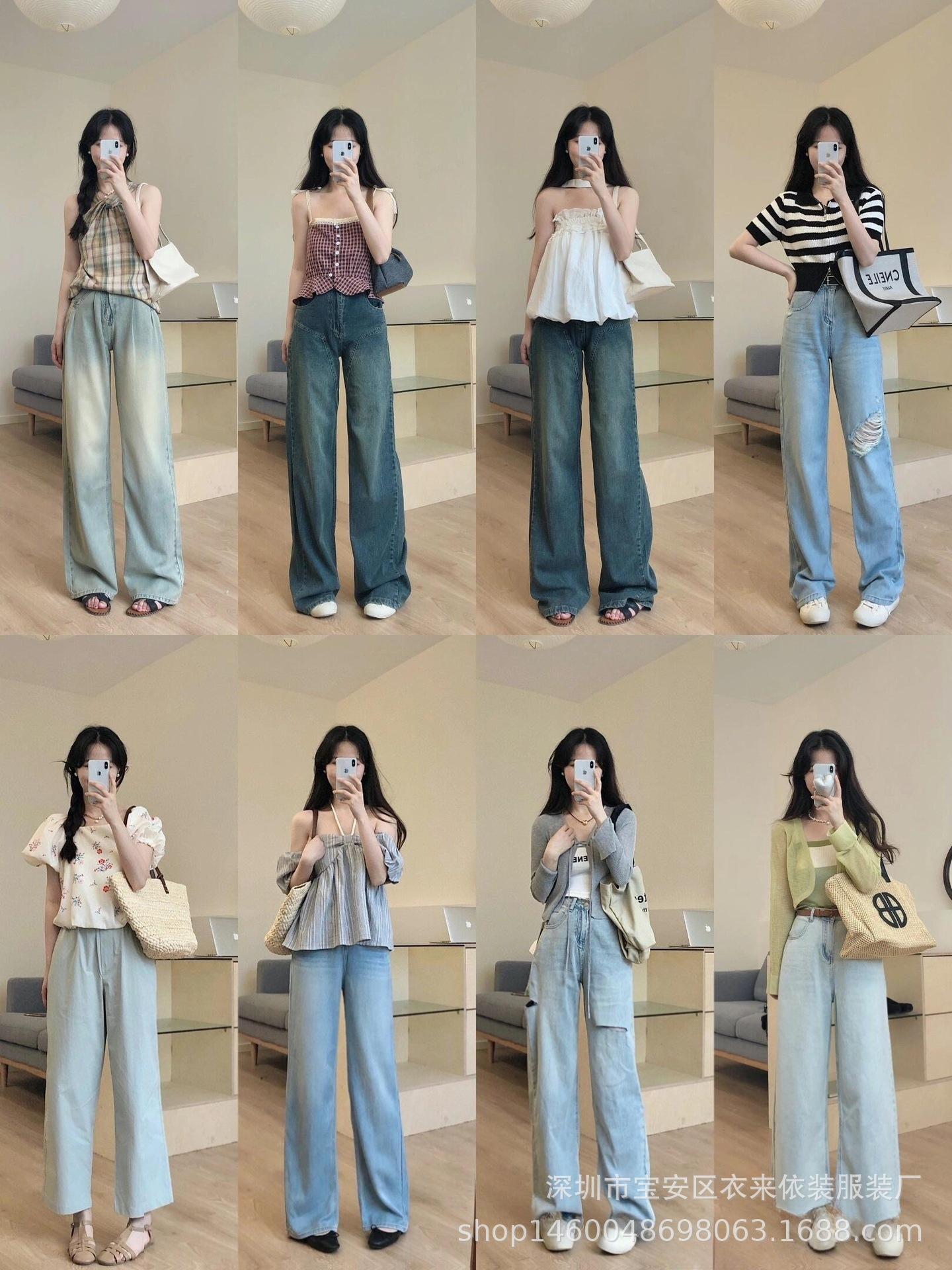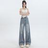 Vaqueros de cintura alta y pierna ancha para mujer, de verano, finos, adelgazantes, rectos, informales, con aberturas.