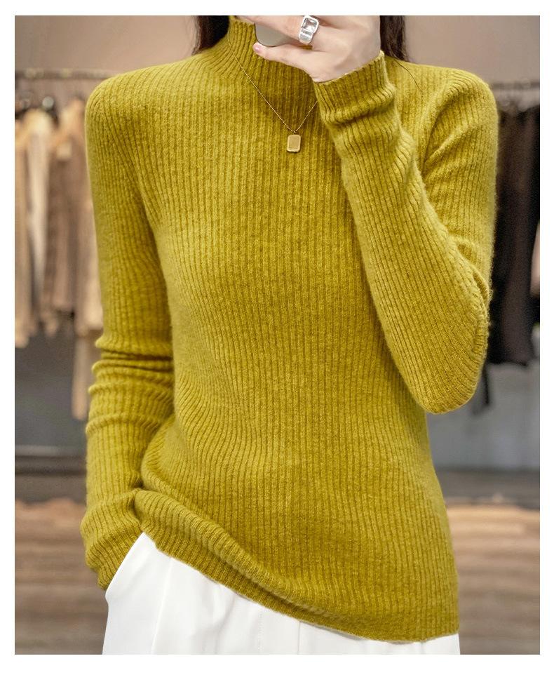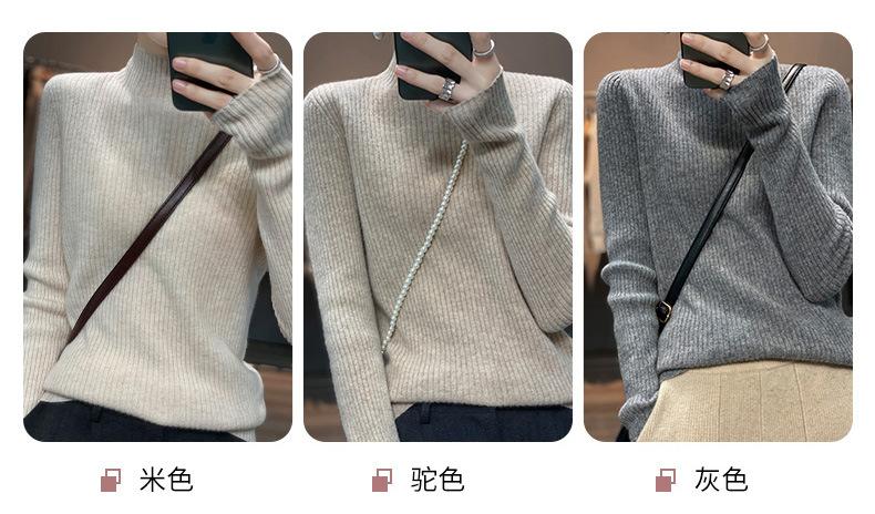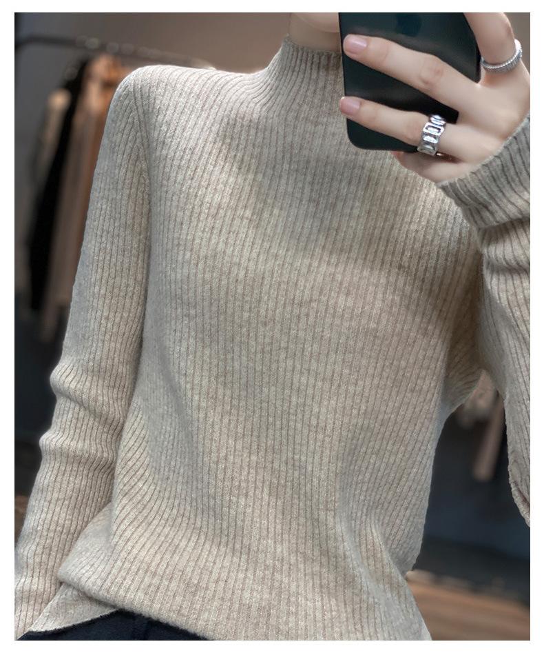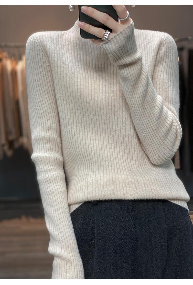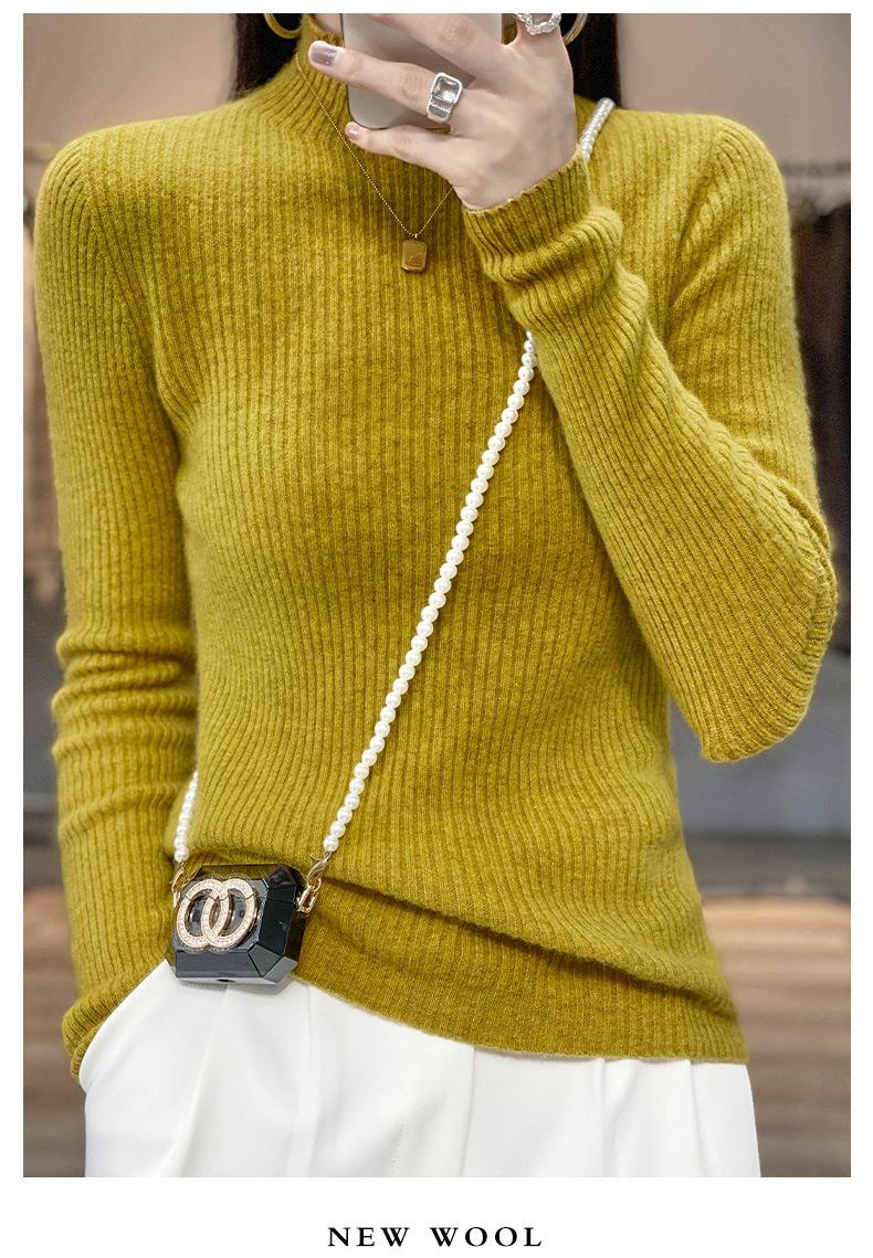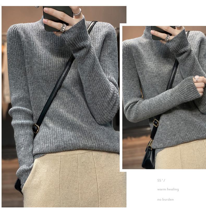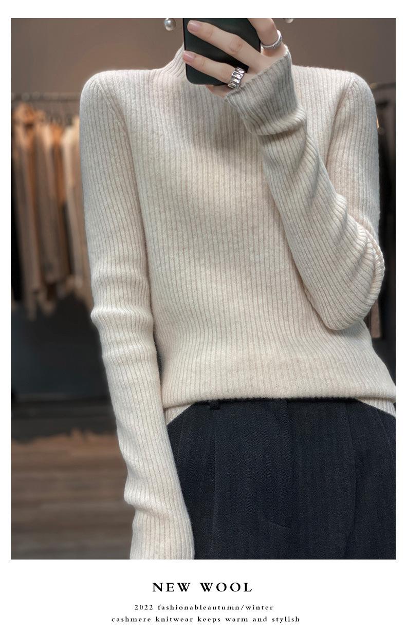 Suéter Runshi 100% Lana Pura para Mujer Primera Línea Hecho a Medida Suéter de Media Altura Tejido de Punto Suéter Otoño e Invierno Ajustado Interior
