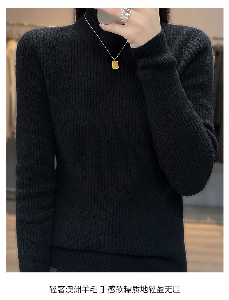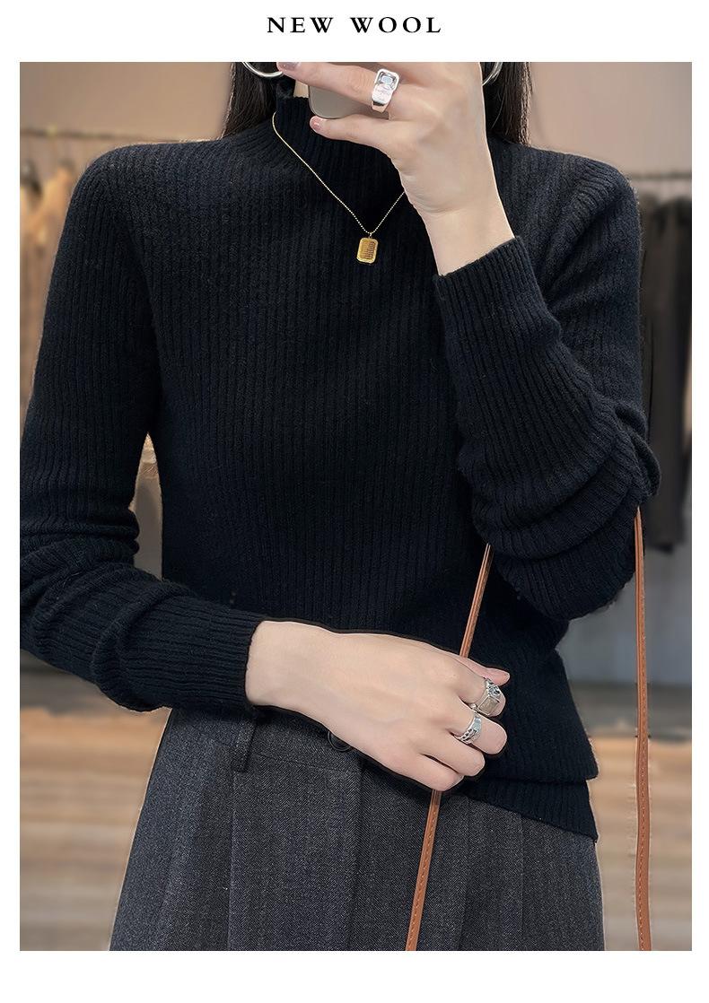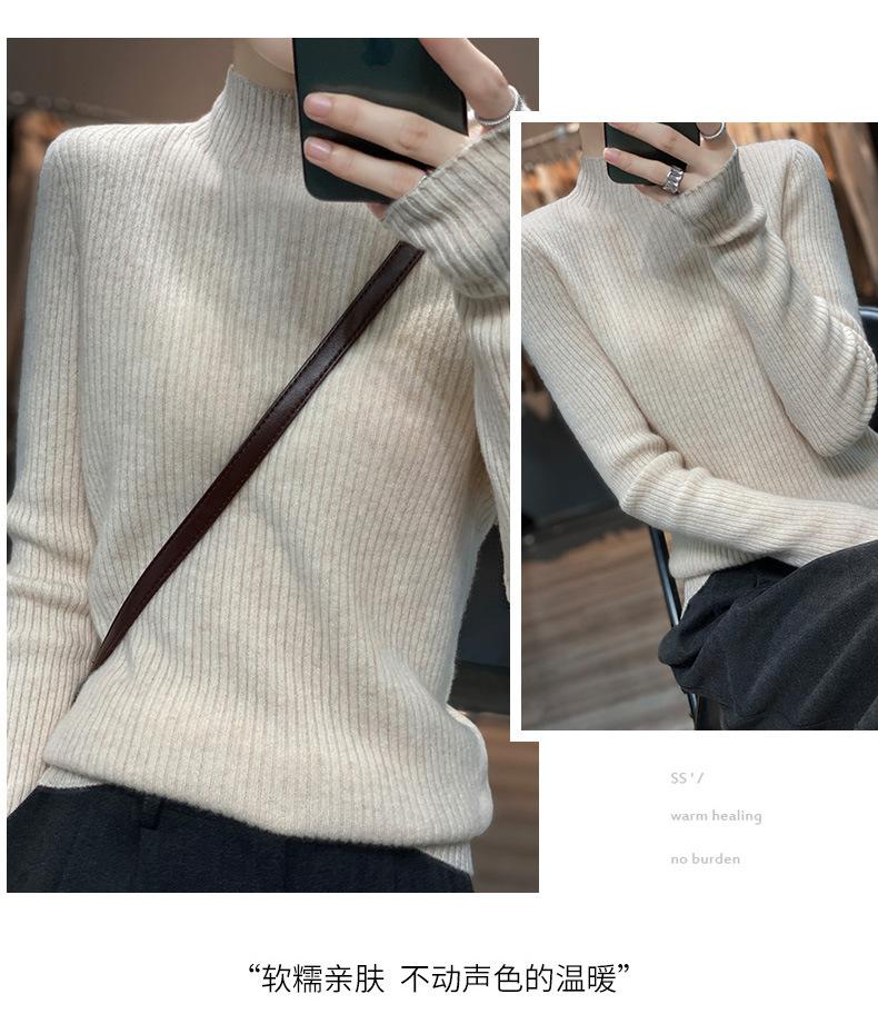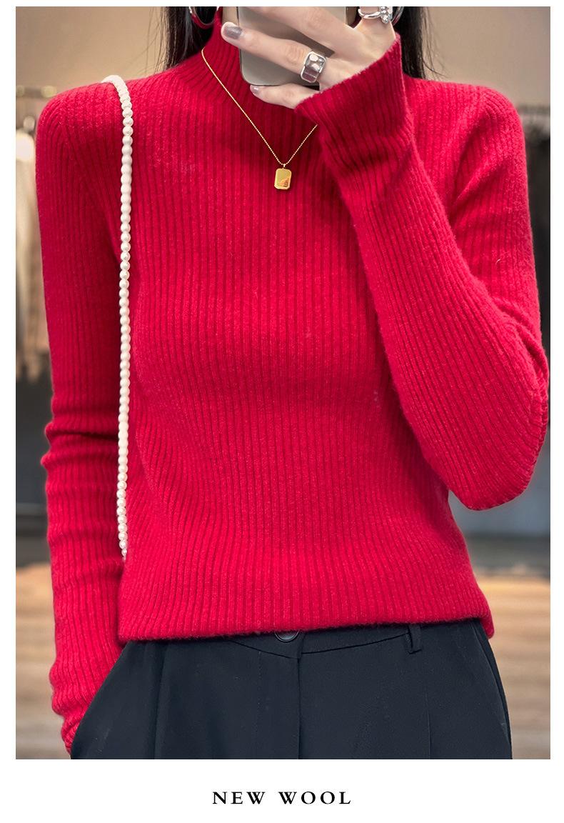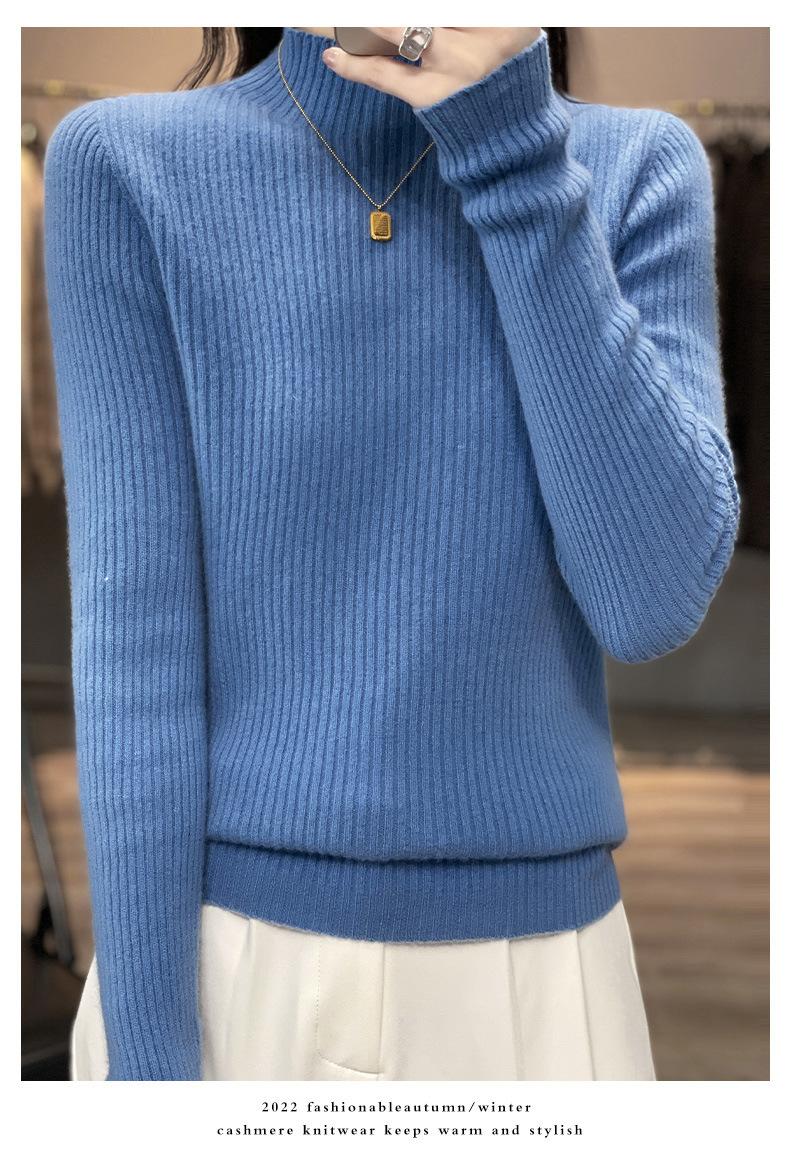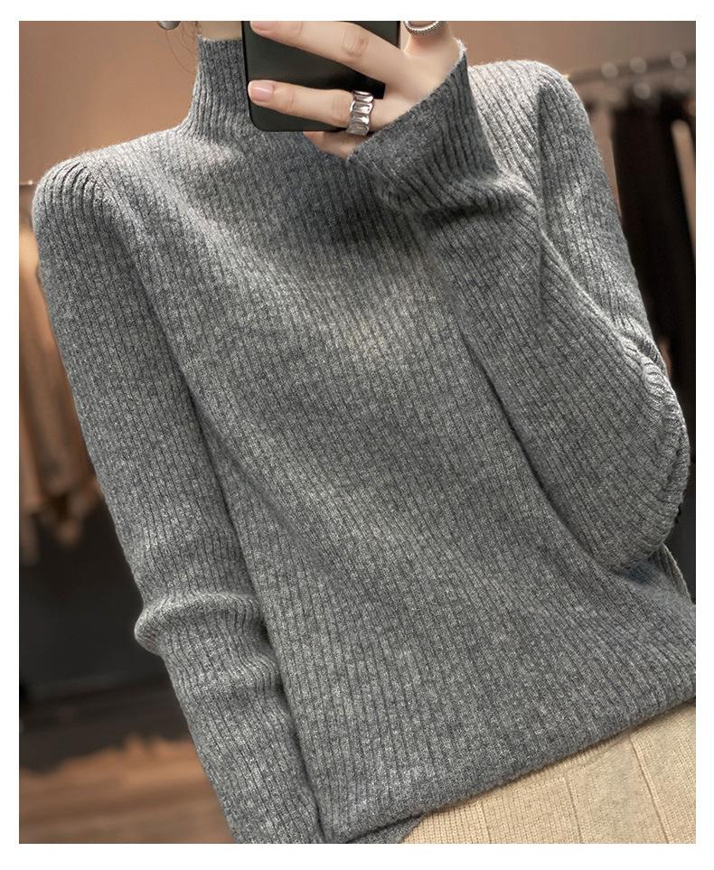 Suéter Runshi 100% Lana Pura para Mujer Primera Línea Hecho a Medida Suéter de Media Altura Tejido de Punto Suéter Otoño e Invierno Ajustado Interior