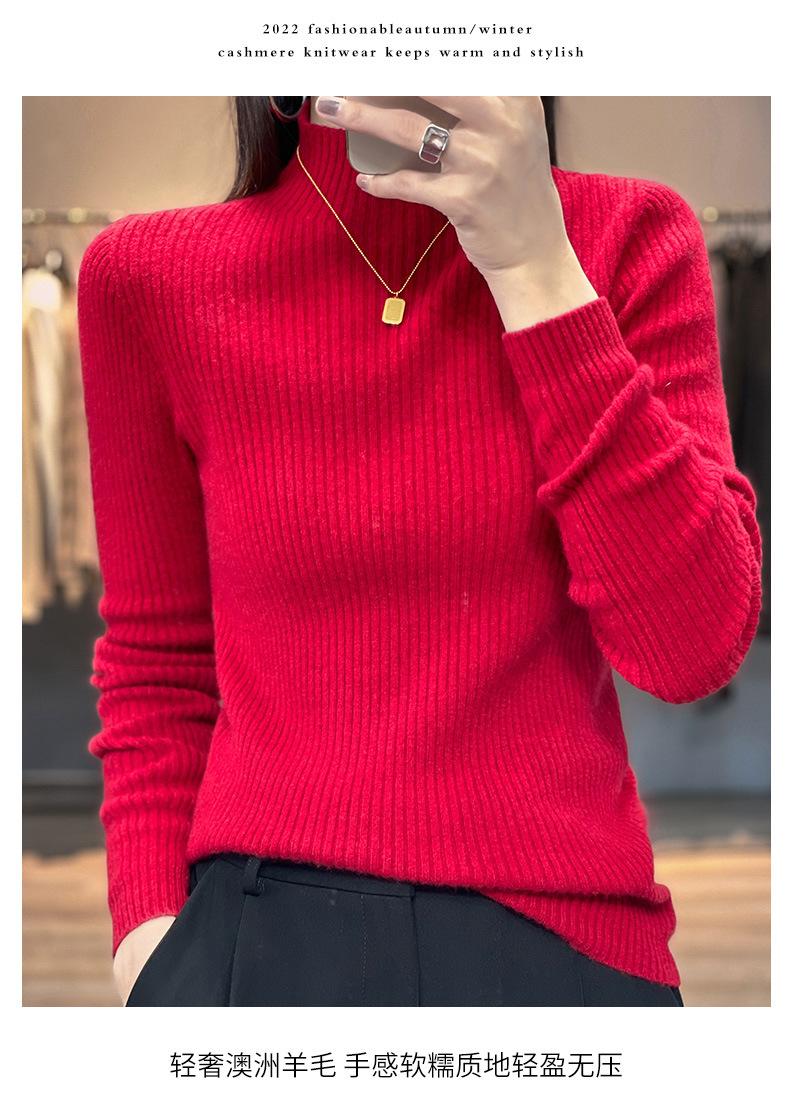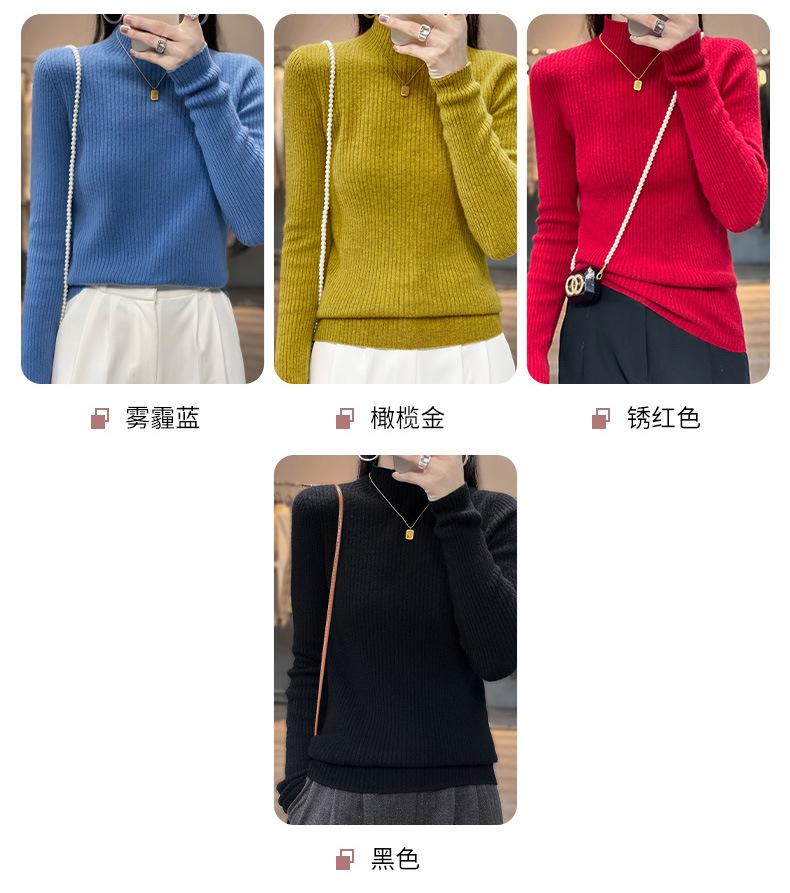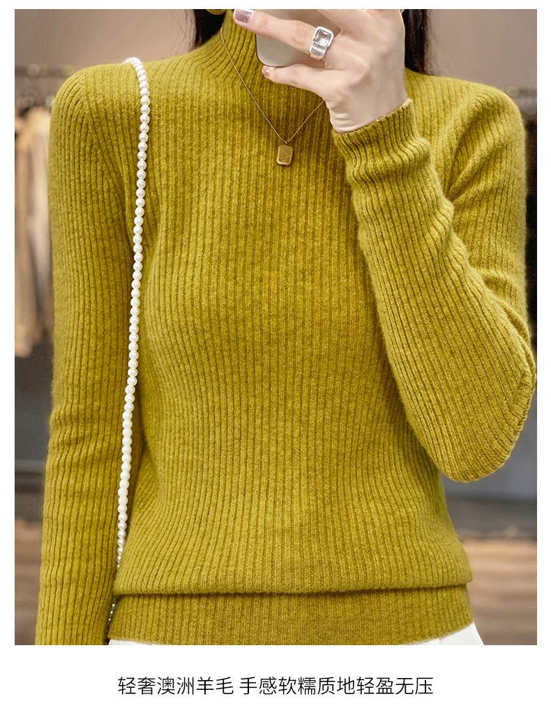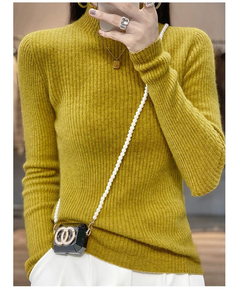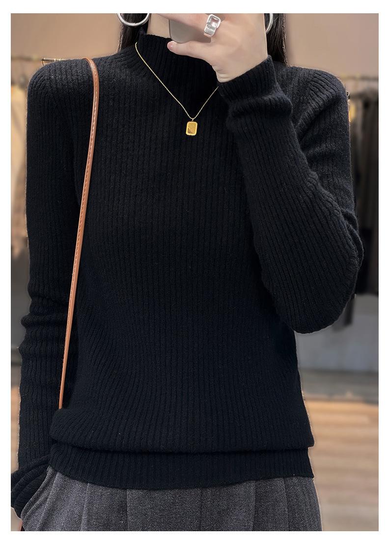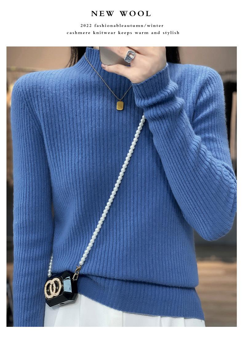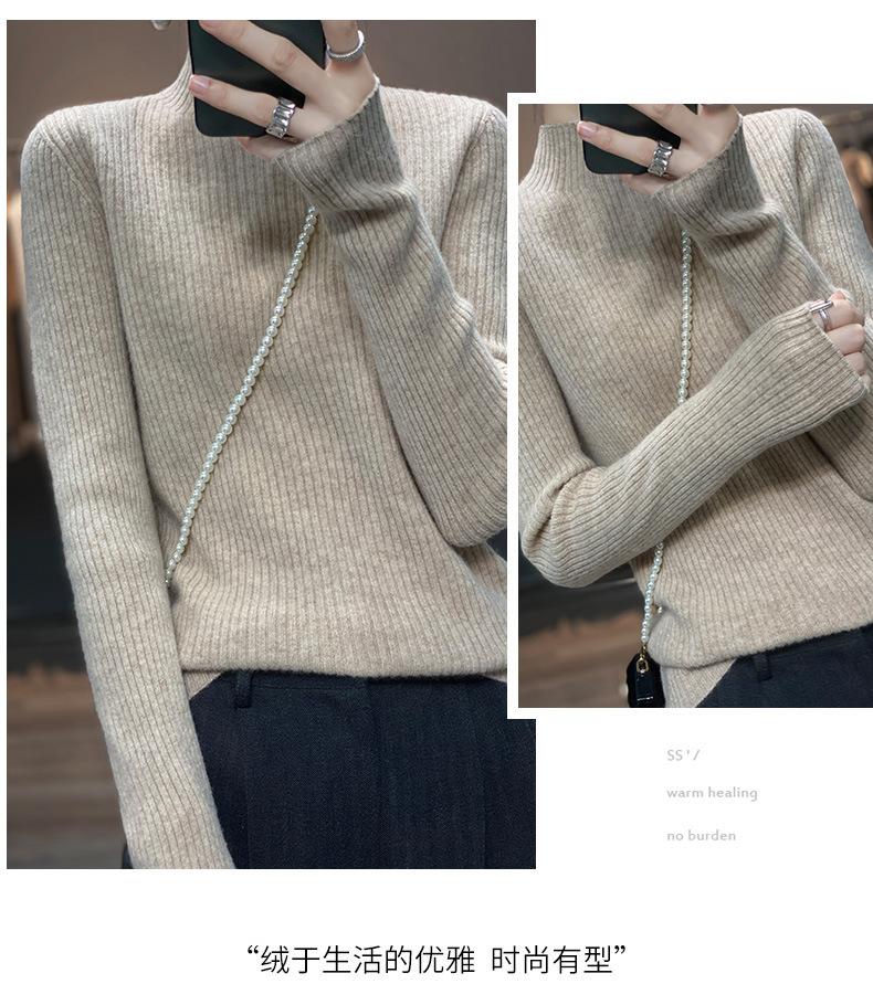 Suéter Runshi 100% Lana Pura para Mujer Primera Línea Hecho a Medida Suéter de Media Altura Tejido de Punto Suéter Otoño e Invierno Ajustado Interior