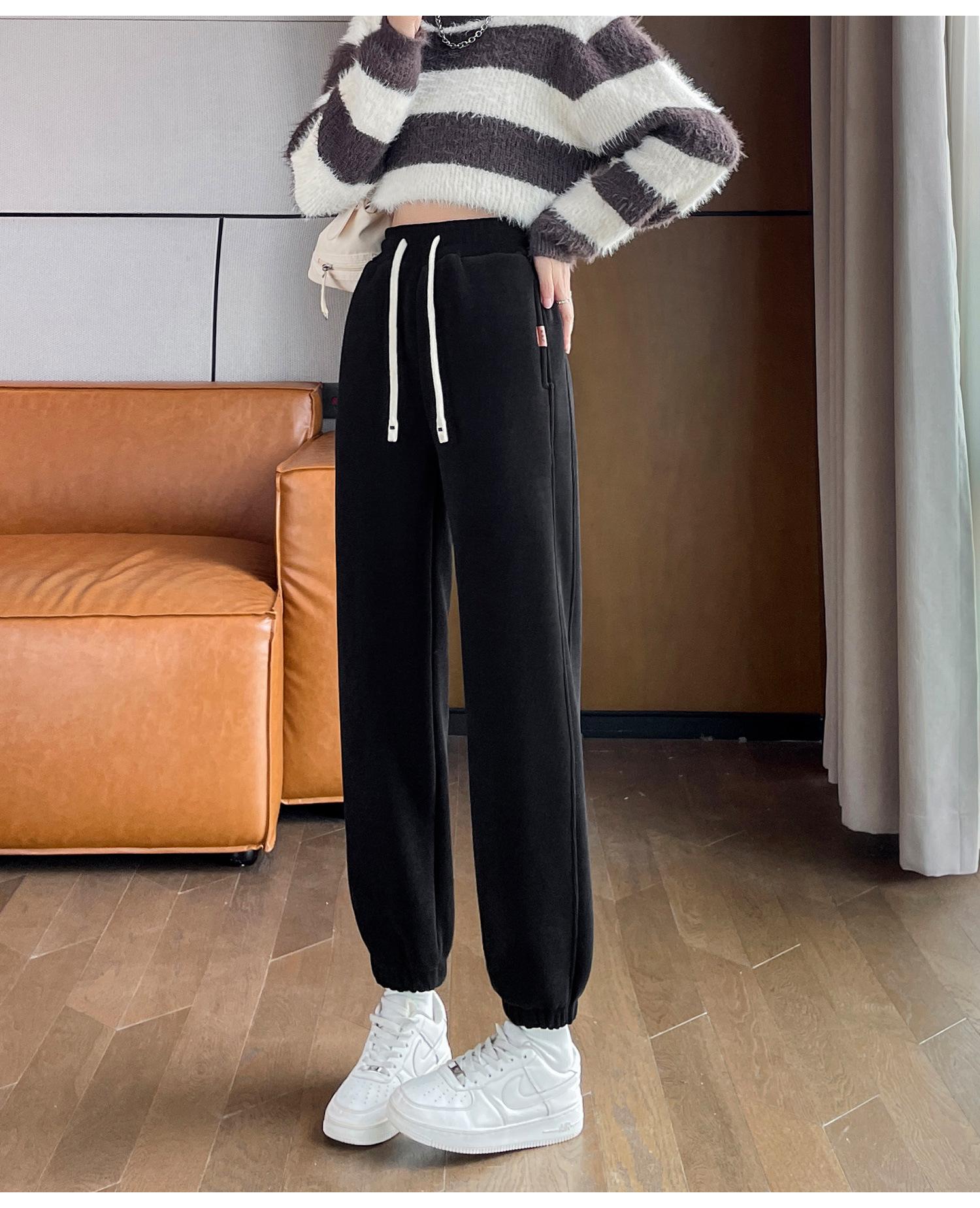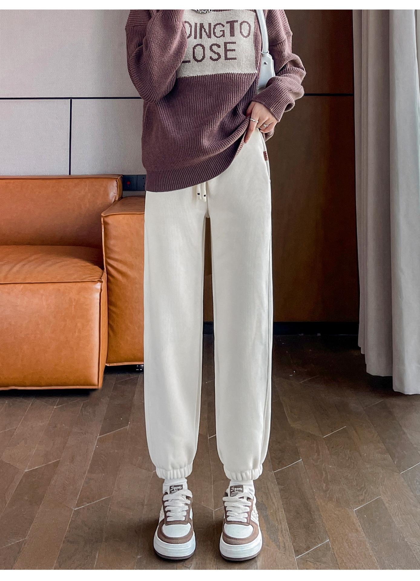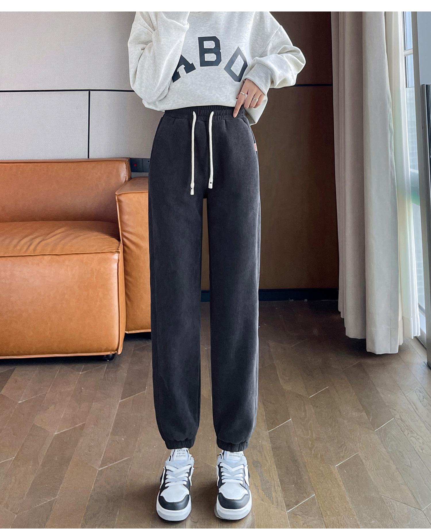 Pantalones deportivos de chenilla para mujer 2023 otoño e invierno con forro de terciopelo, pantalones casuales de pana para mujer extra gruesos de algodón borreguito