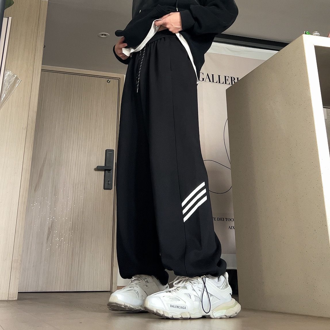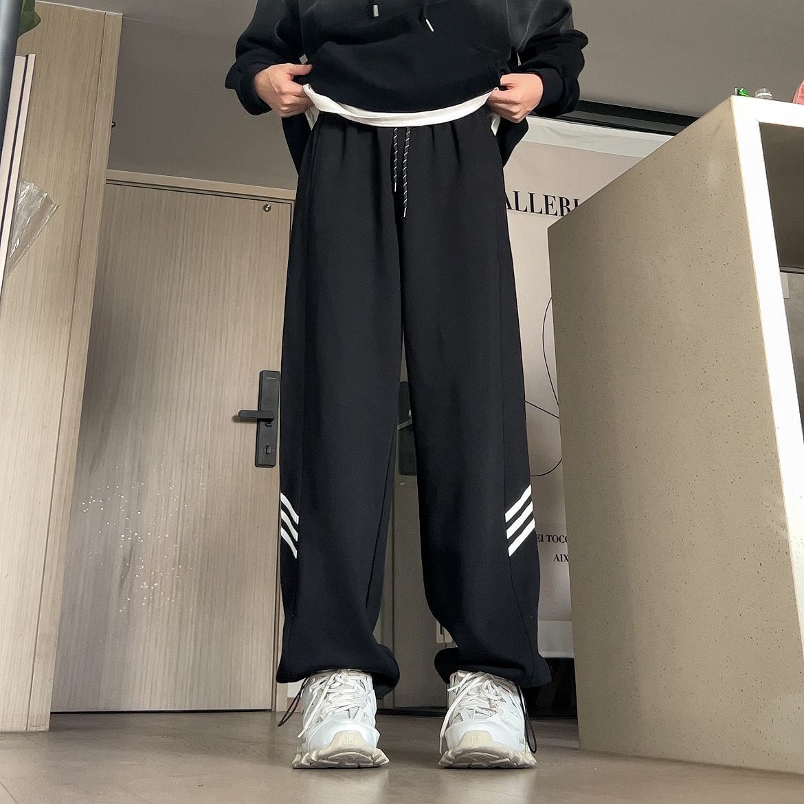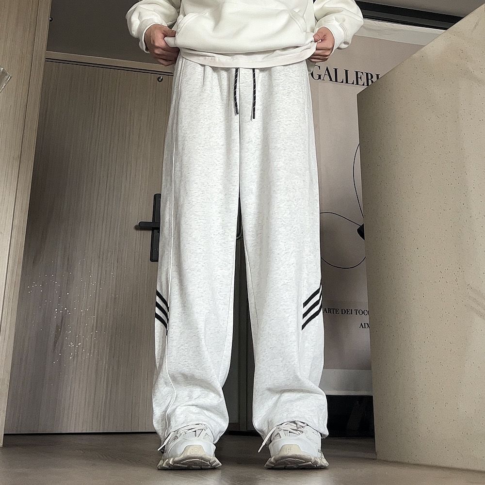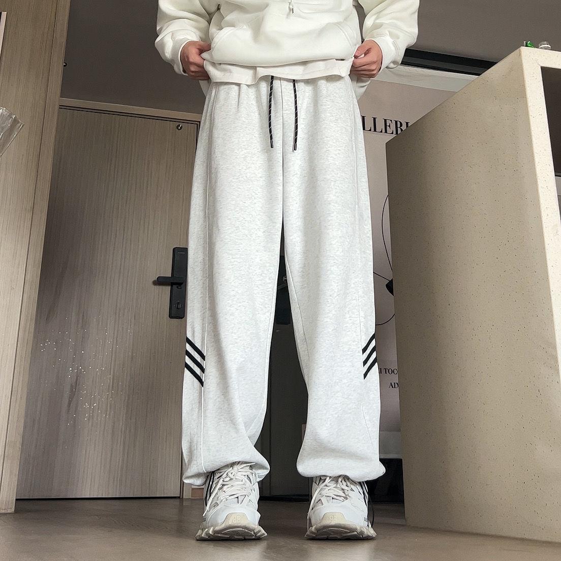 Pantalones deportivos grises rectos, holgados y combinables de moda para primavera y otoño, pantalones deportivos casuales a rayas con cordón en el tobillo para hombre
