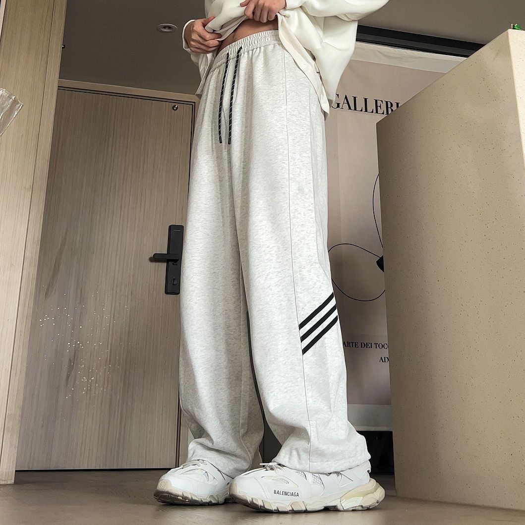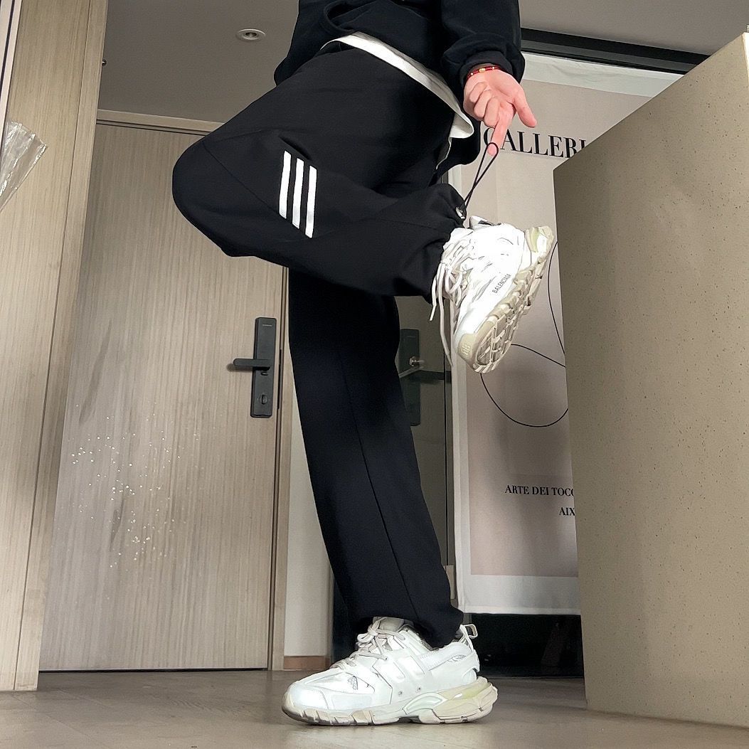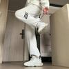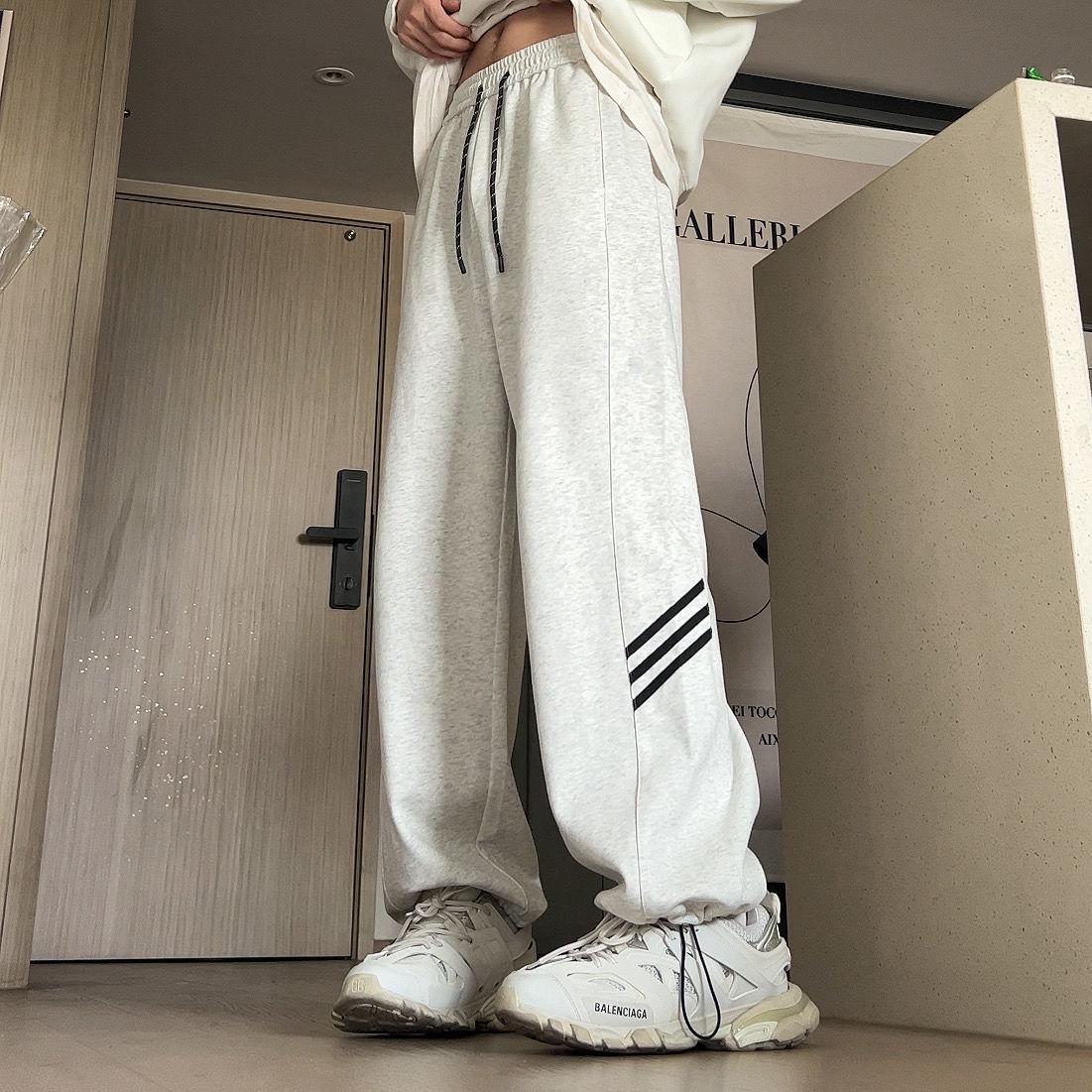 Pantalones deportivos grises rectos, holgados y combinables de moda para primavera y otoño, pantalones deportivos casuales a rayas con cordón en el tobillo para hombre