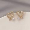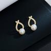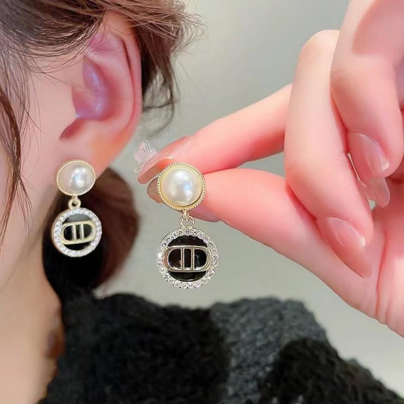 Pendientes de plata S925 con forma de aguja, con forma de círculo de diamantes y perlas, estilo retro, de alta gama, con letras elegantes y personalidad moderna para mujer.