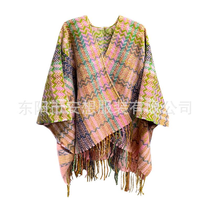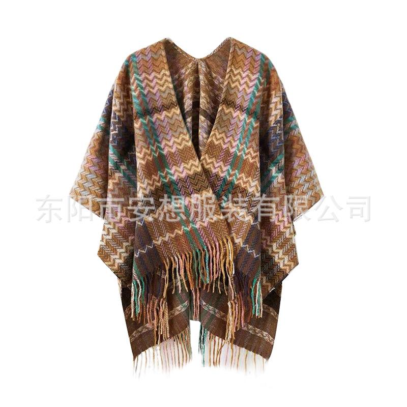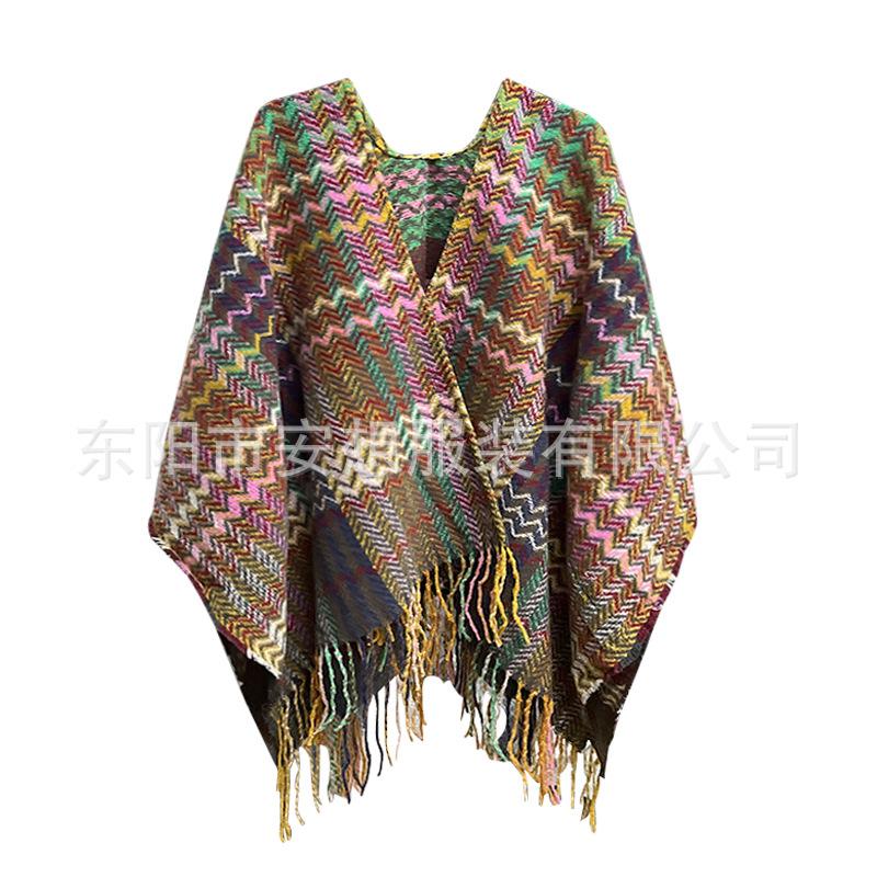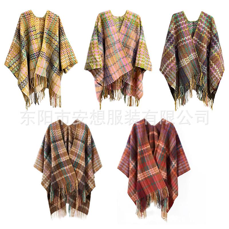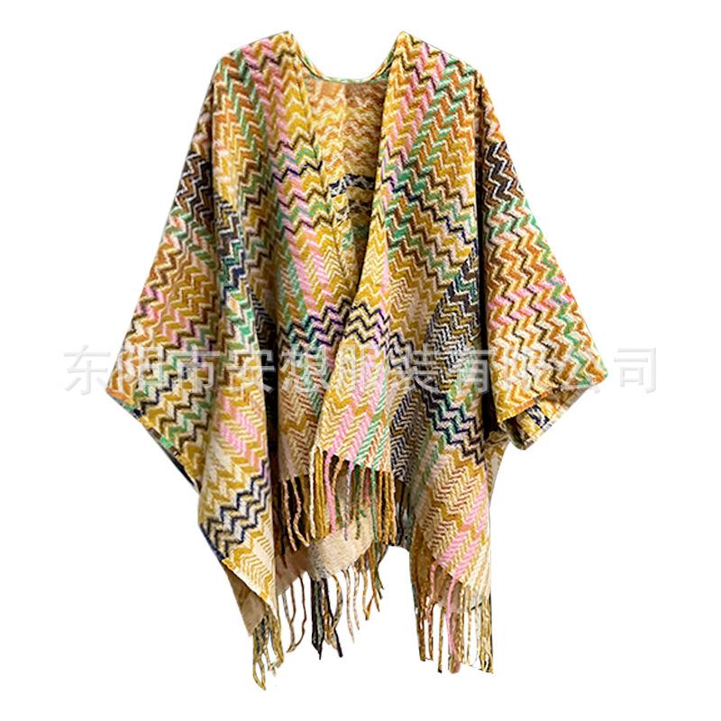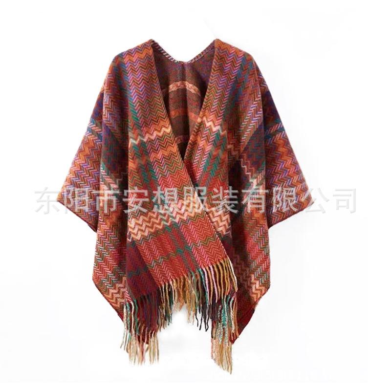 Capa de mujer chal de viaje grueso y cálido con borlas divididas de estilo étnico de comercio exterior de 2023