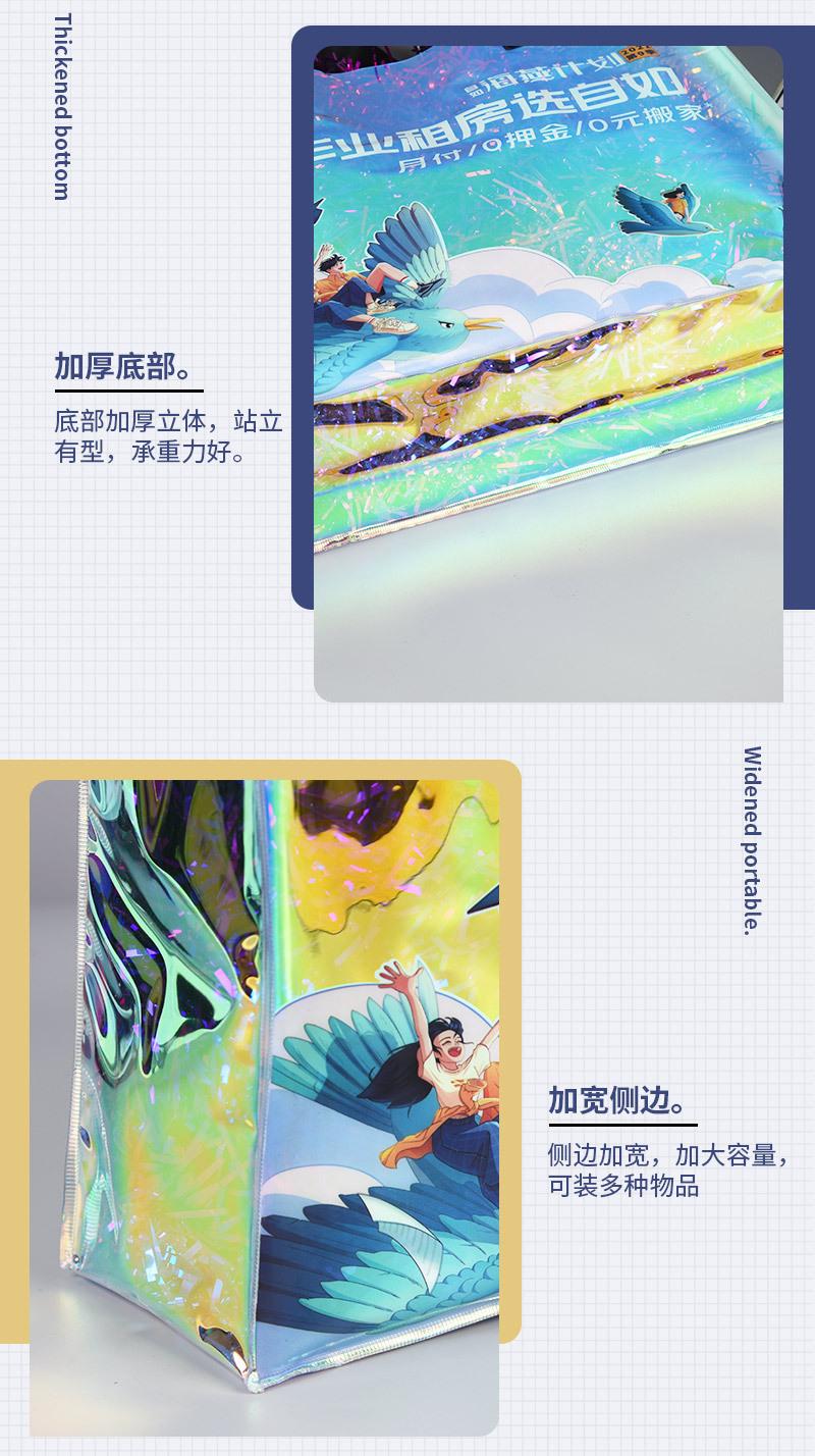 Los fabricantes suministran bolsas de regalo pequeñas, nuevas y de material impreso con dibujos animados en azul, esmerilado e imprimible.
