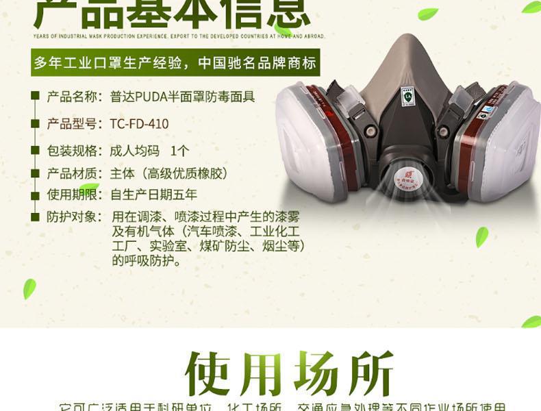 Máscara de gas Puda 410 con filtro autocebante y máscara de gas y polvo con caja de filtro doble